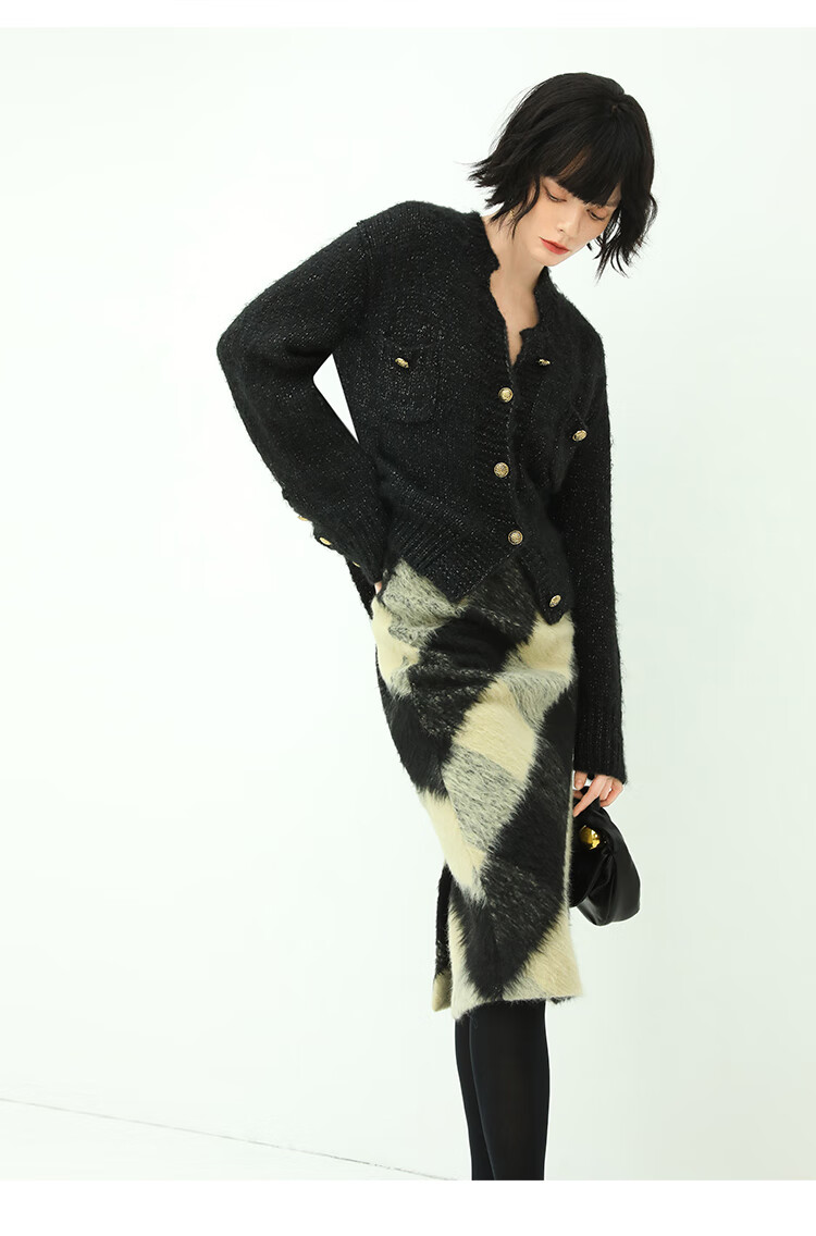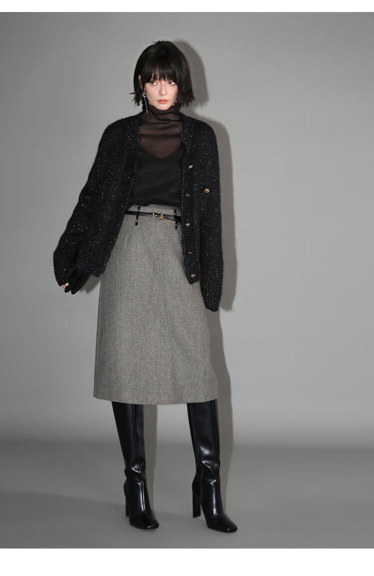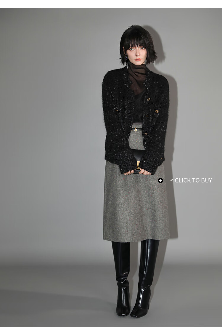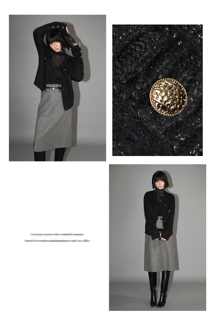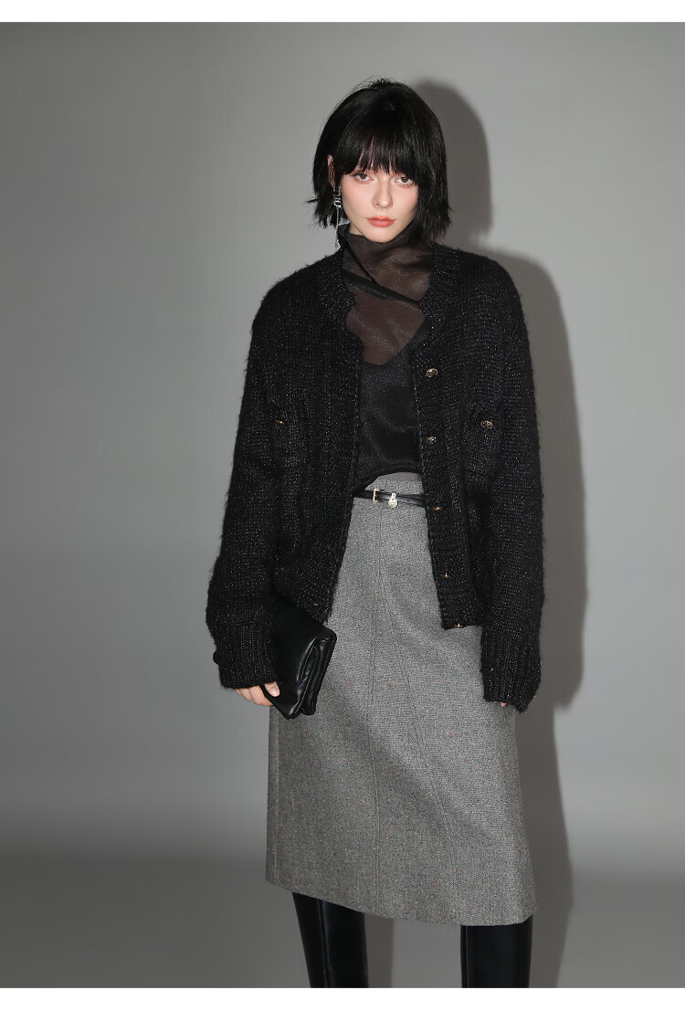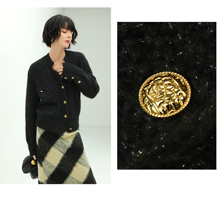 COCOBELLA小香风亮丝花纱毛衣女金属扣千金风针织外套MZ148