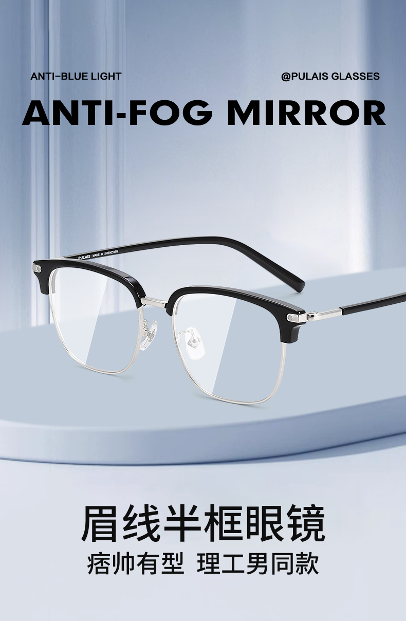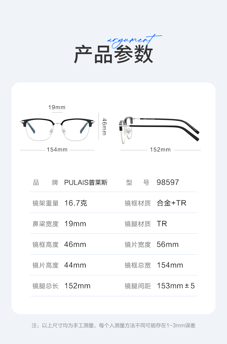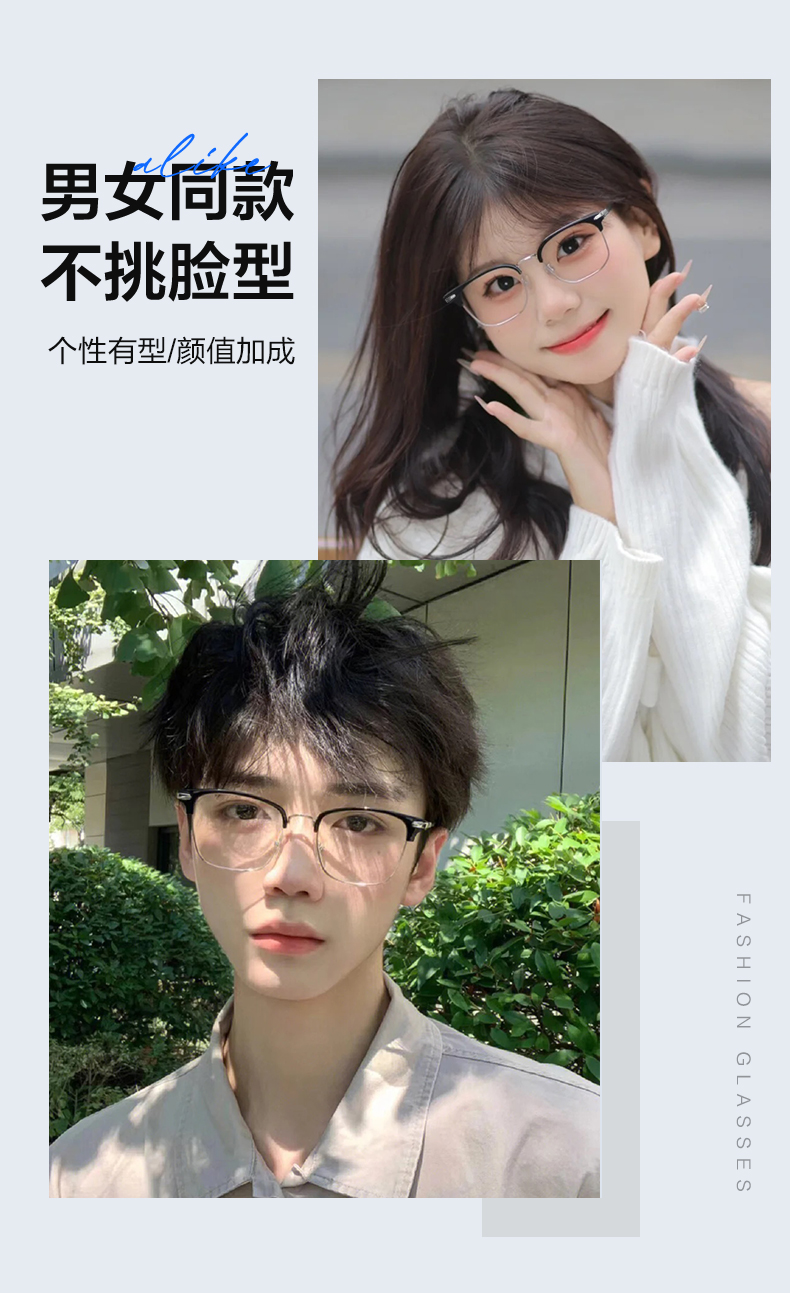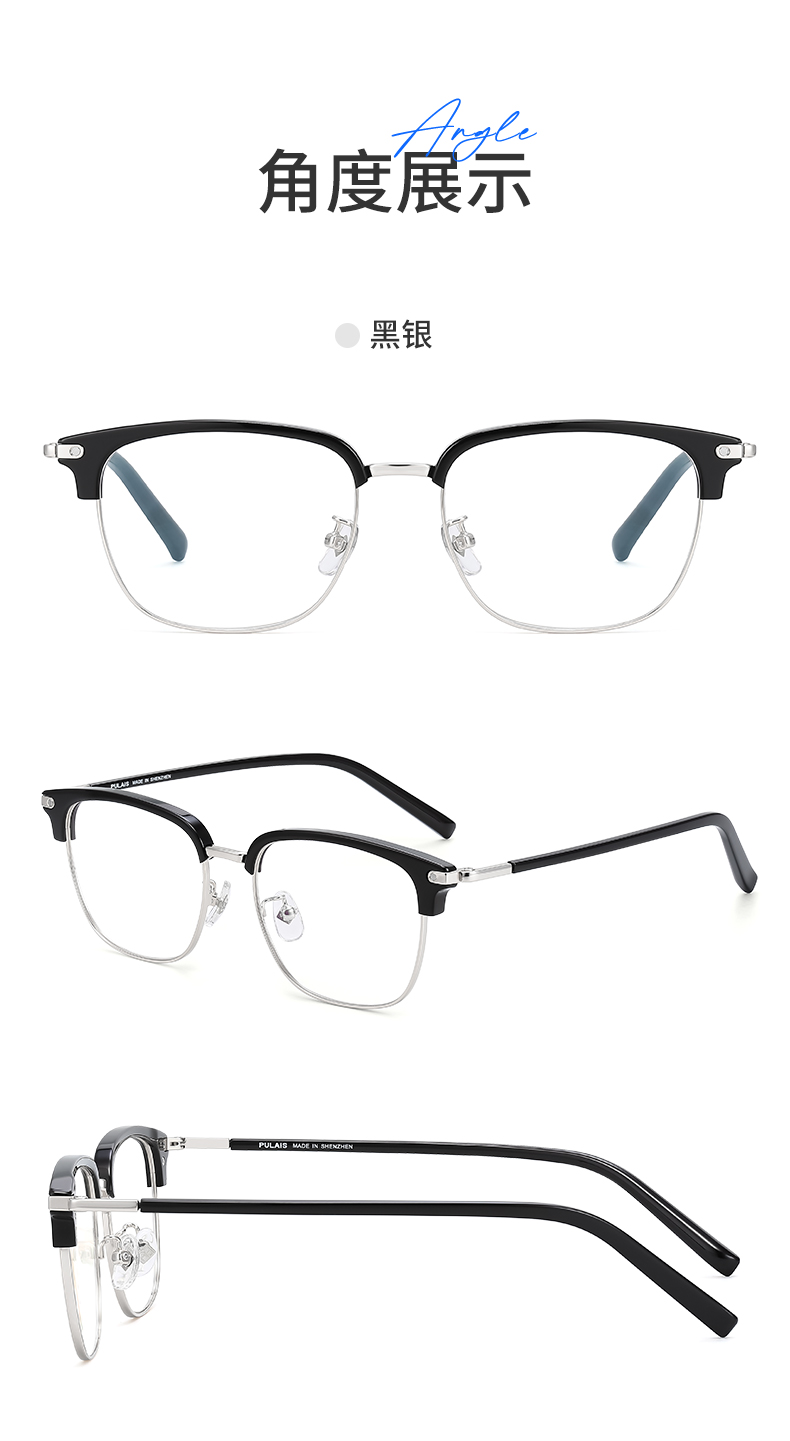 普莱斯光学镜框98597 斯文气质眉线框 合金+TR90材质 男女同款不挑脸型 三色可选