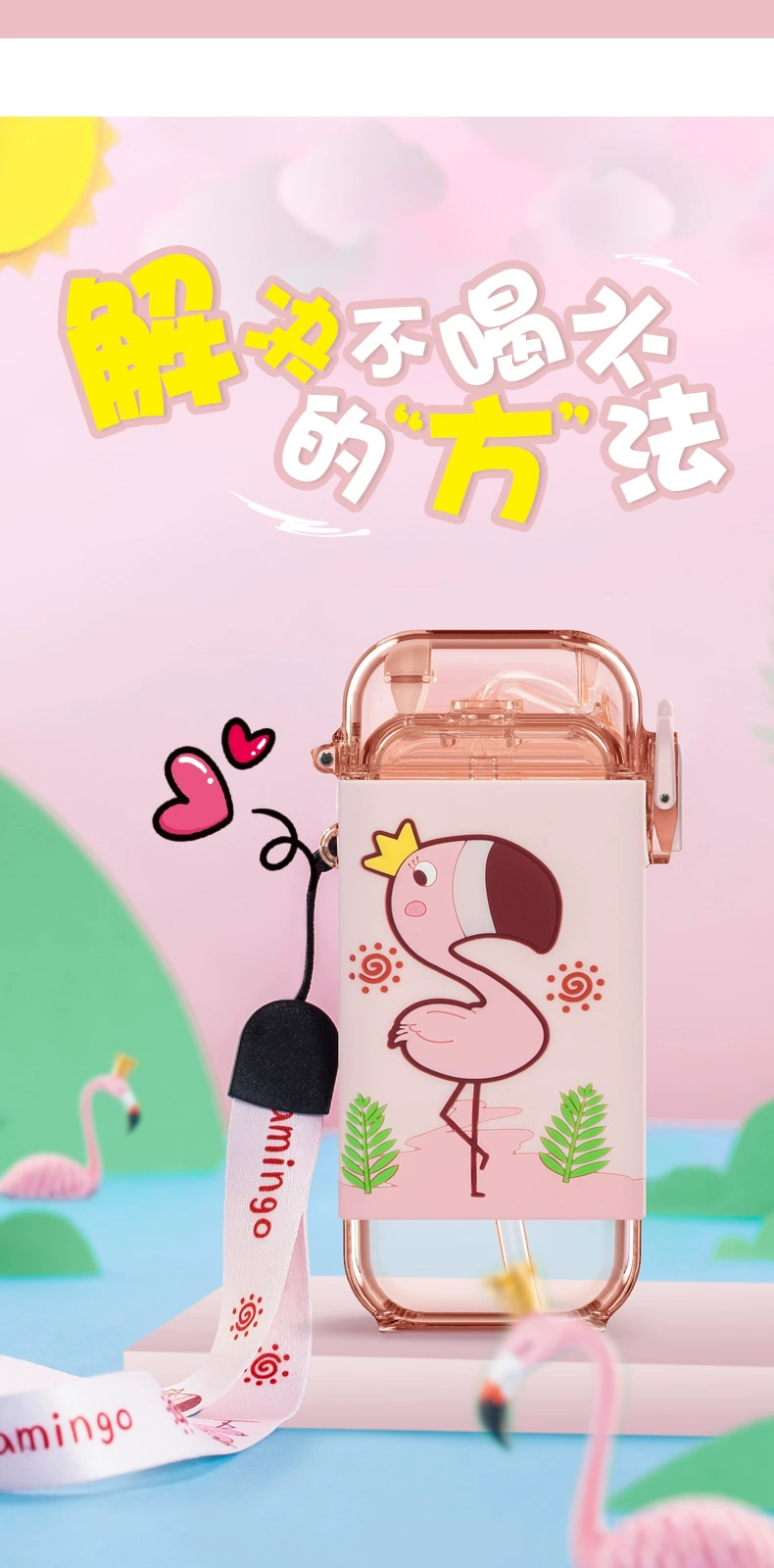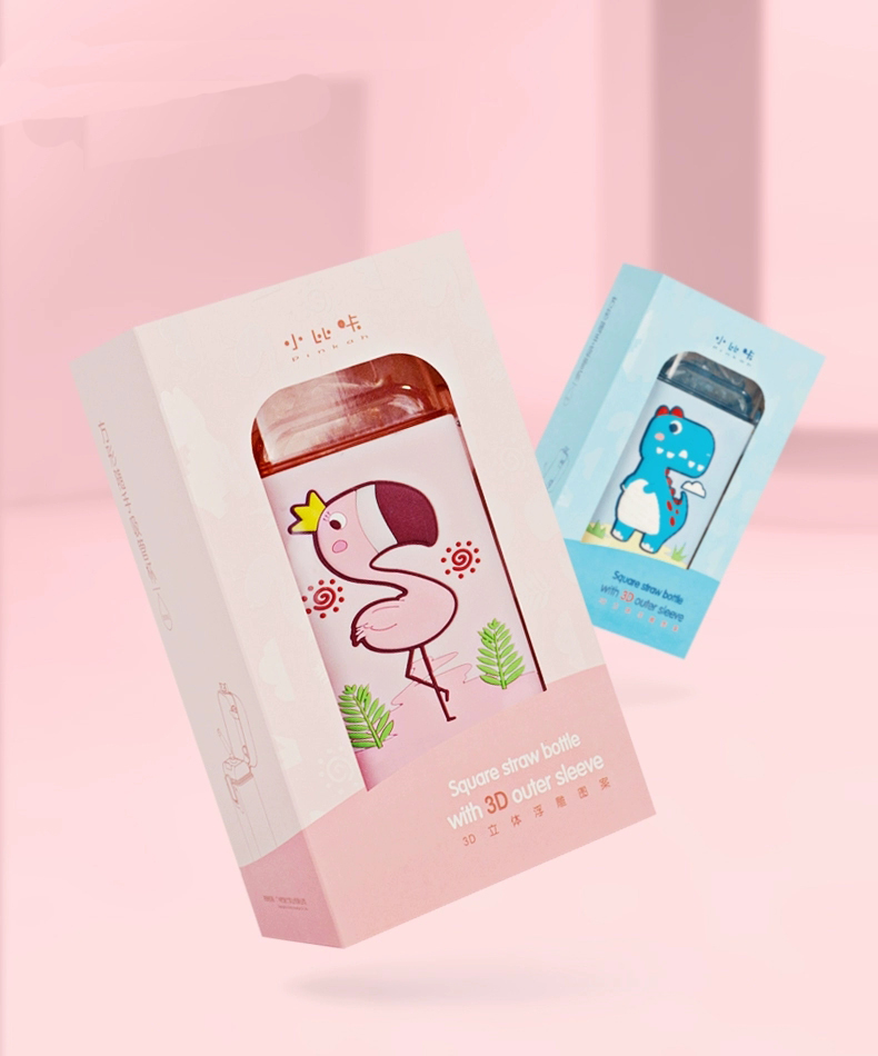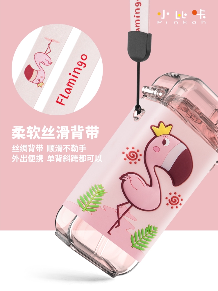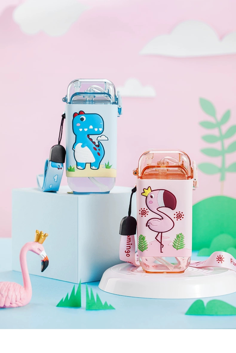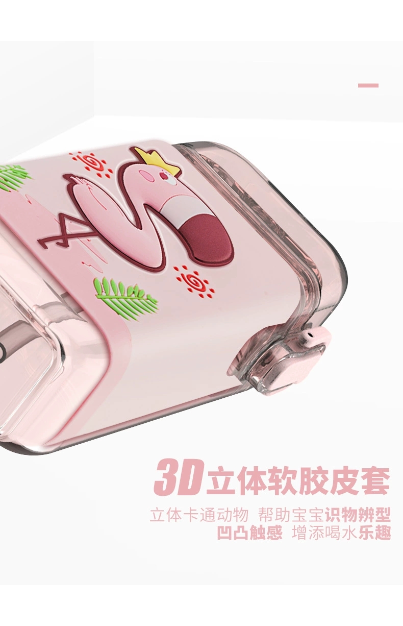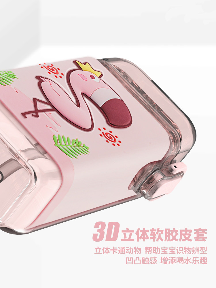 【杯子】儿童方形水杯扁平水壶夏天带吸管杯子可爱卡通幼儿园背带水杯【TMY4443/MON84443】
