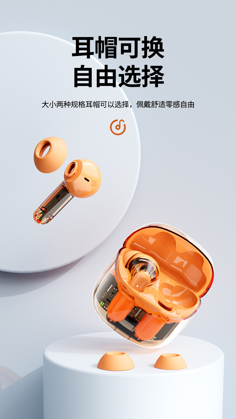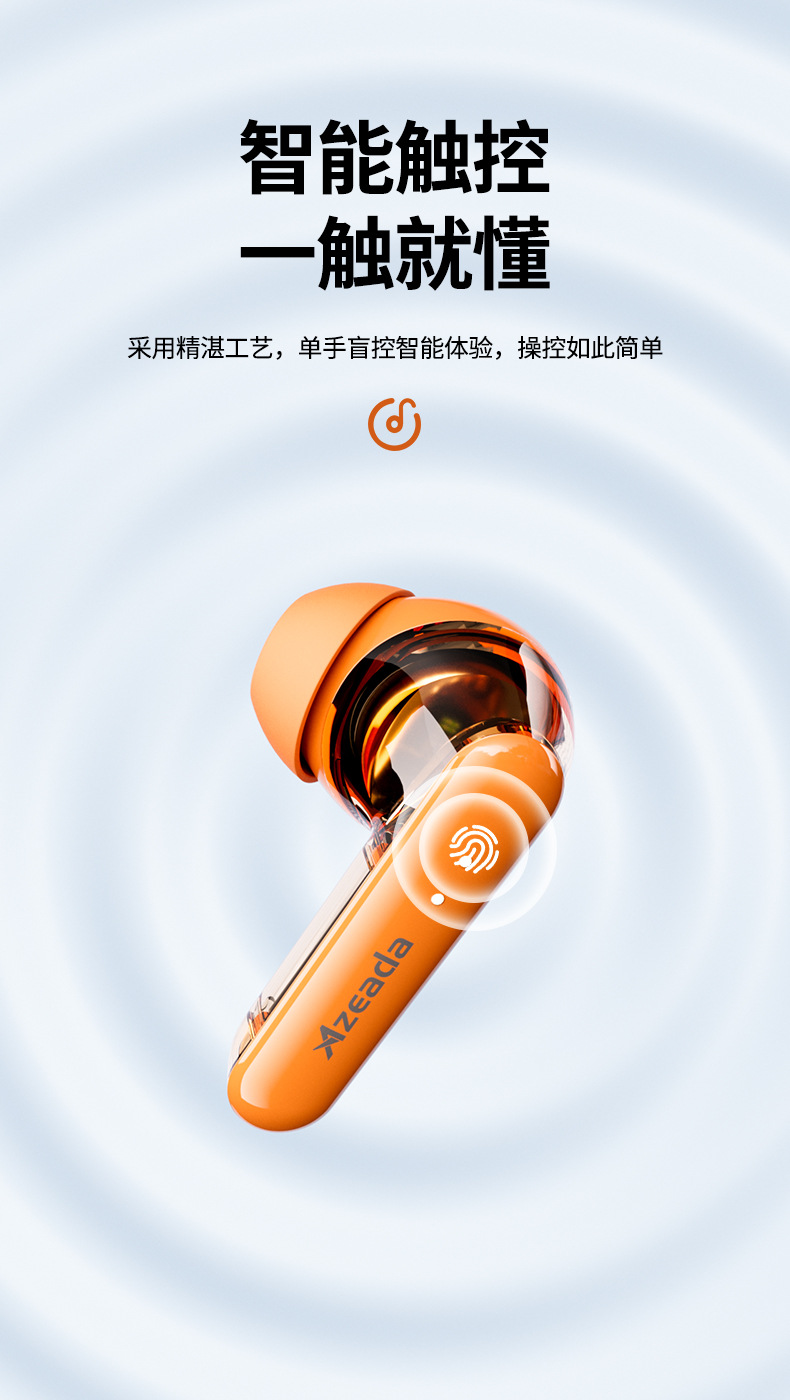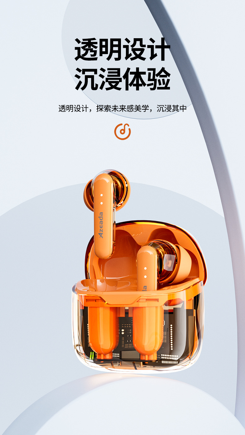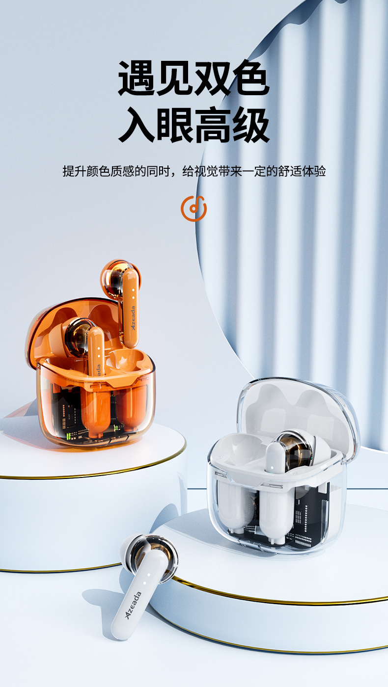 「透明设计!沉浸体验」Azeada 无线蓝牙耳机TWS长续航运动降噪男女通用透明耳机 数码配件