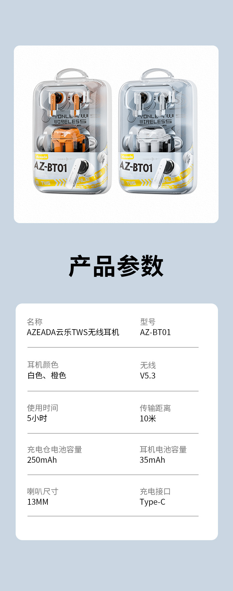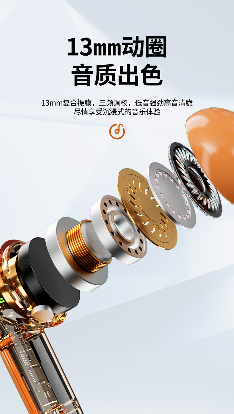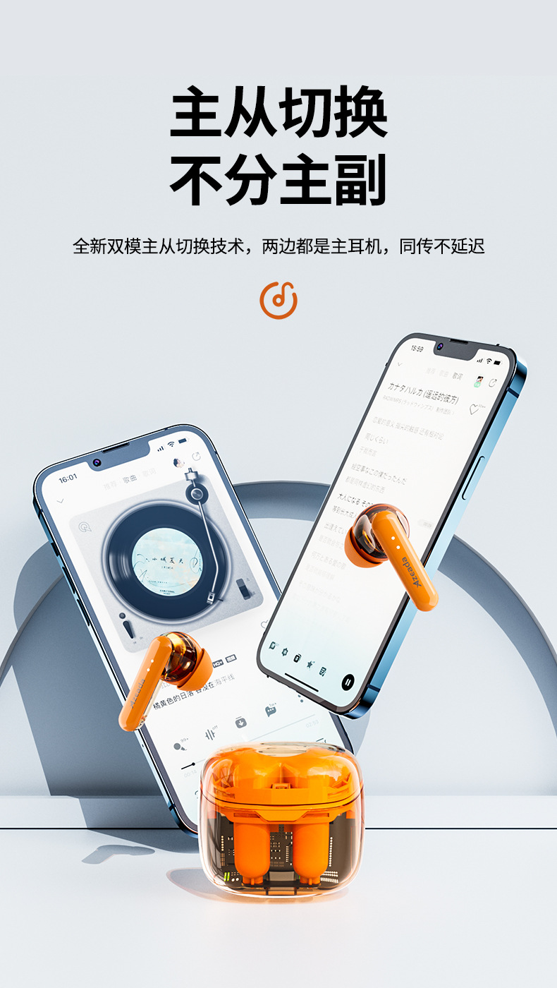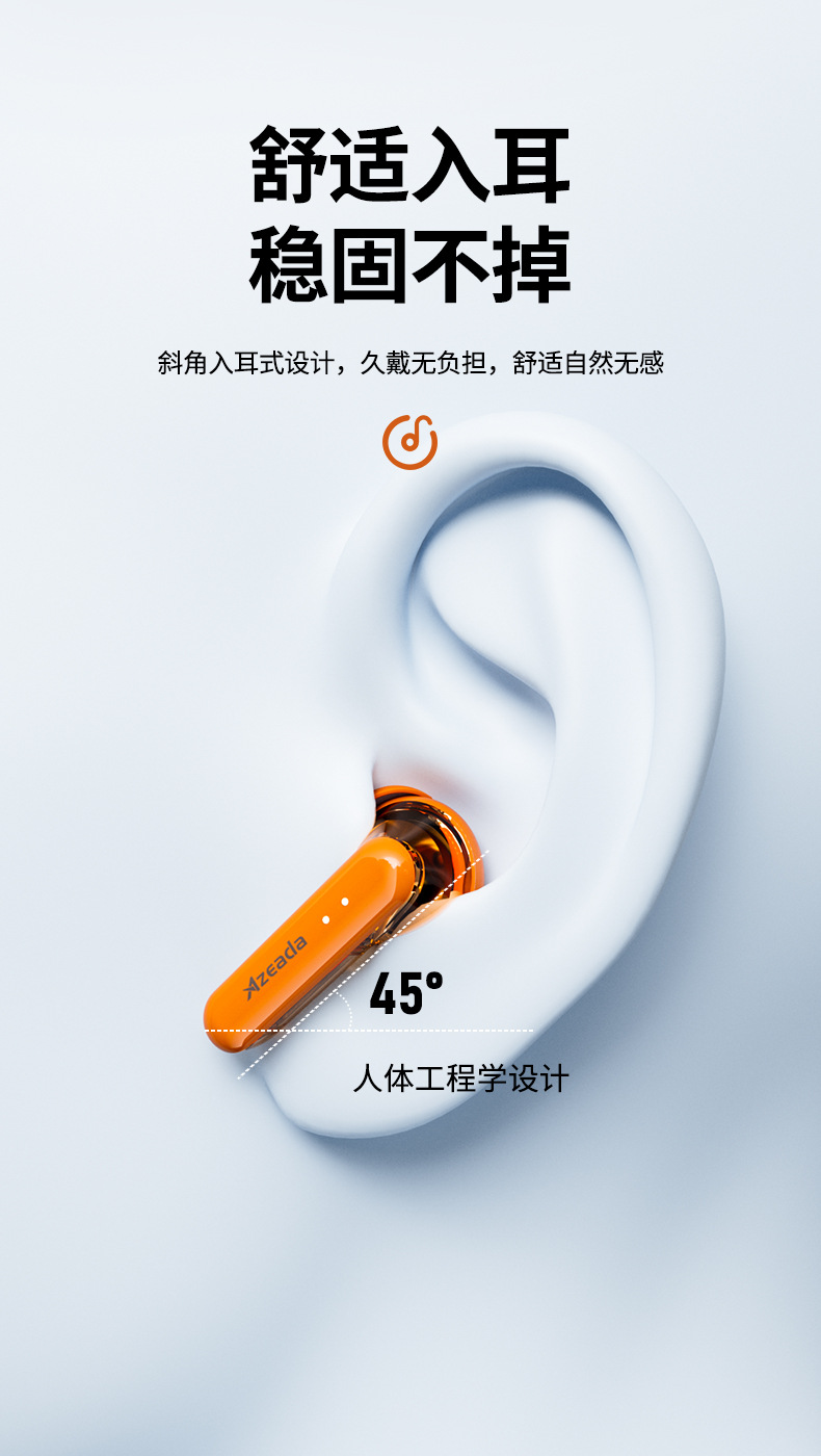 「透明设计!沉浸体验」Azeada 无线蓝牙耳机TWS长续航运动降噪男女通用透明耳机 数码配件