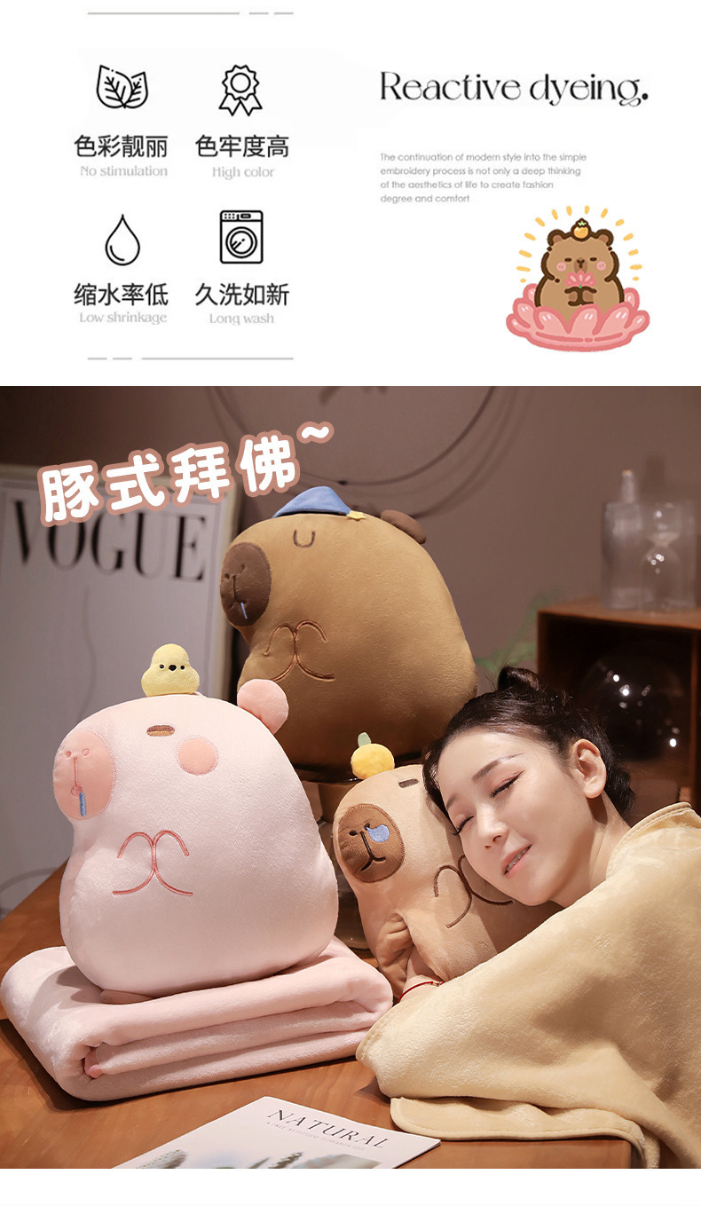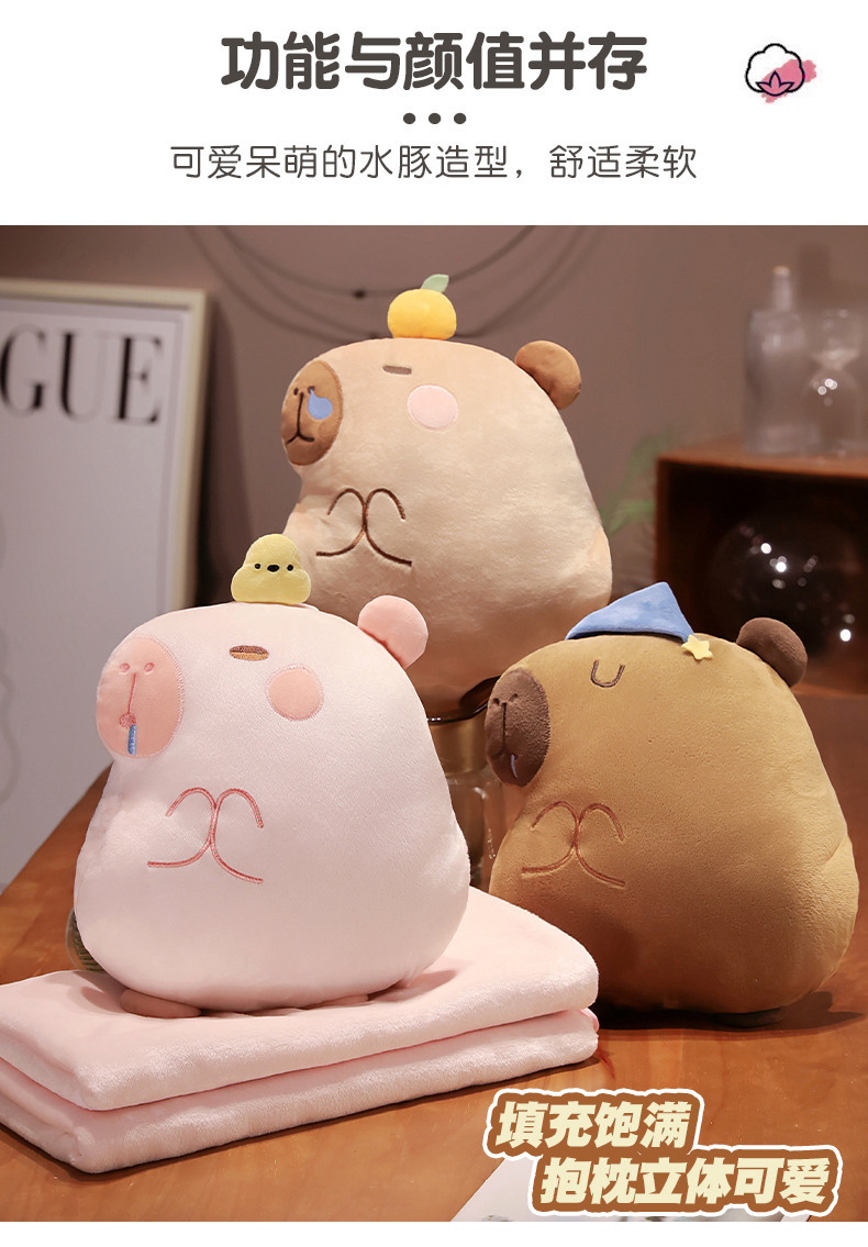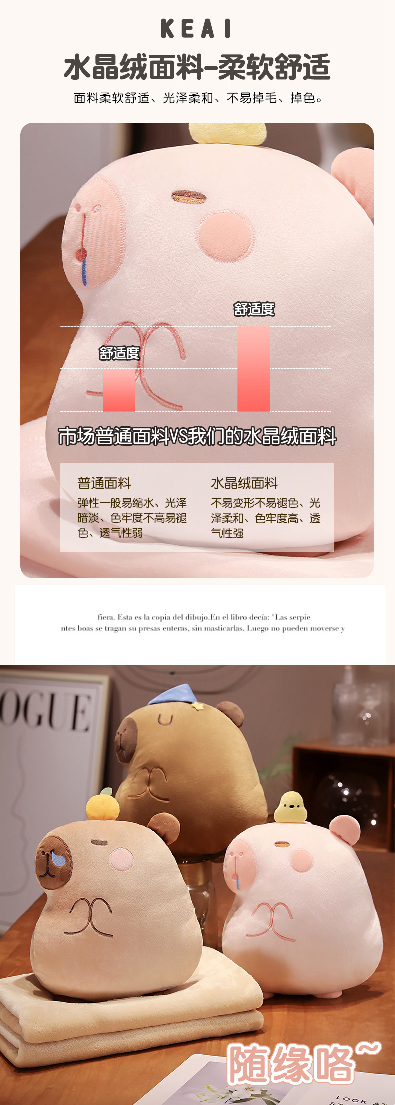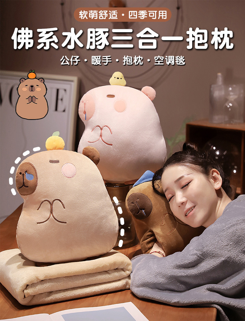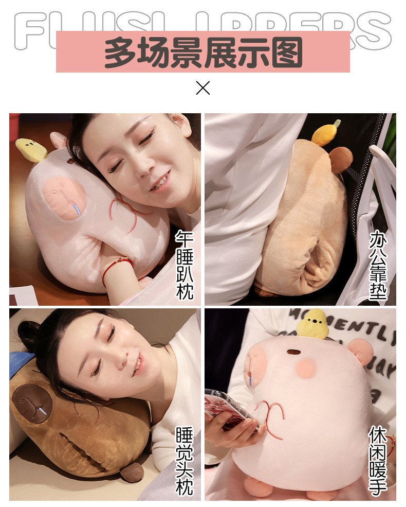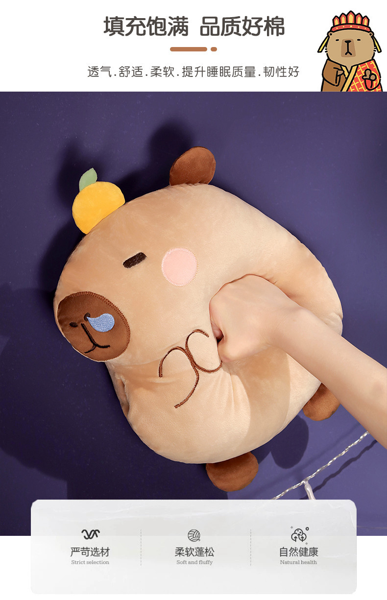 【卡皮巴拉办公室抱枕】水豚造型,轻松午睡;柔软舒适,车上取暖;四季可用,方便实用。办公室、学生和车主的必备利器!
