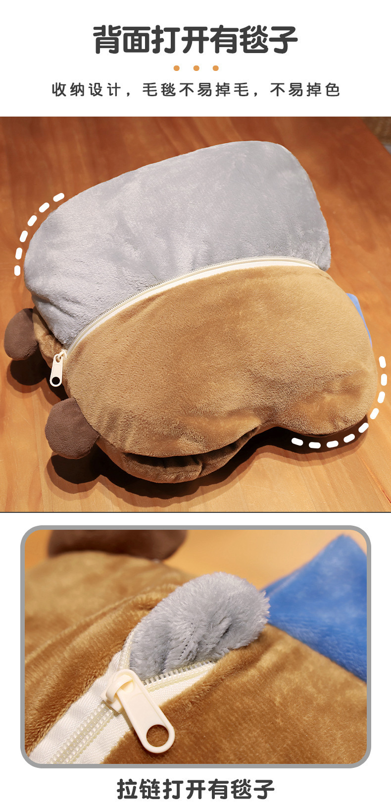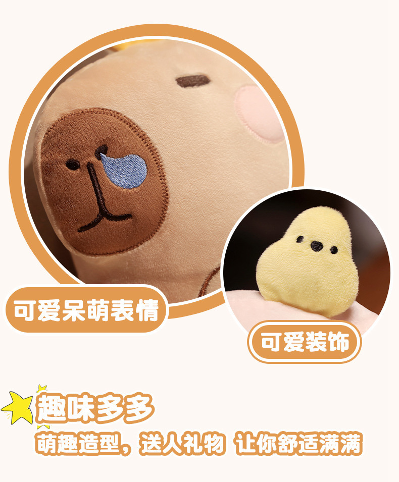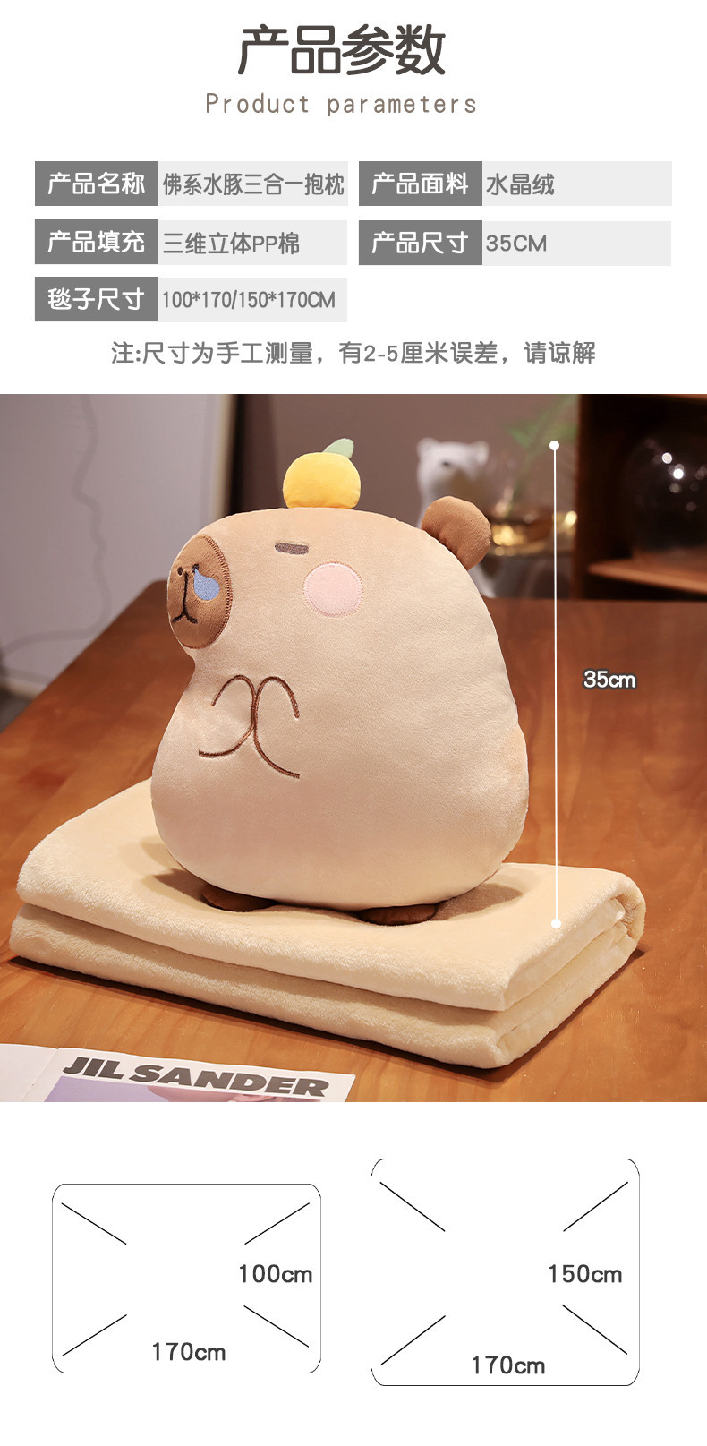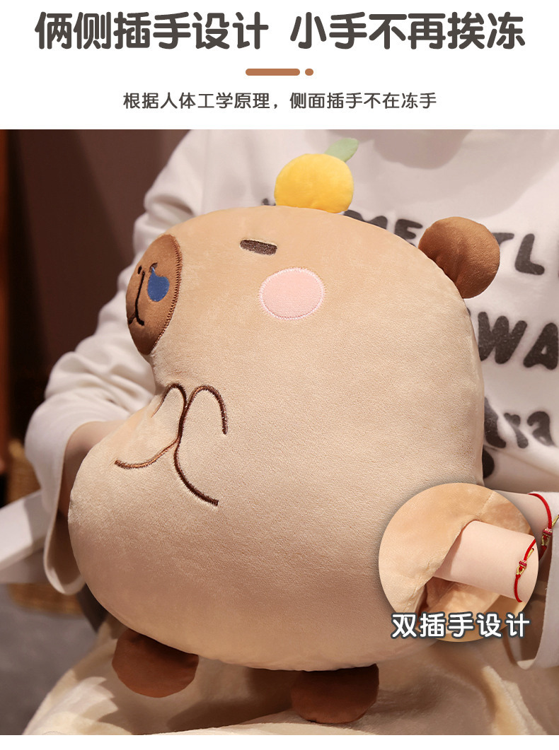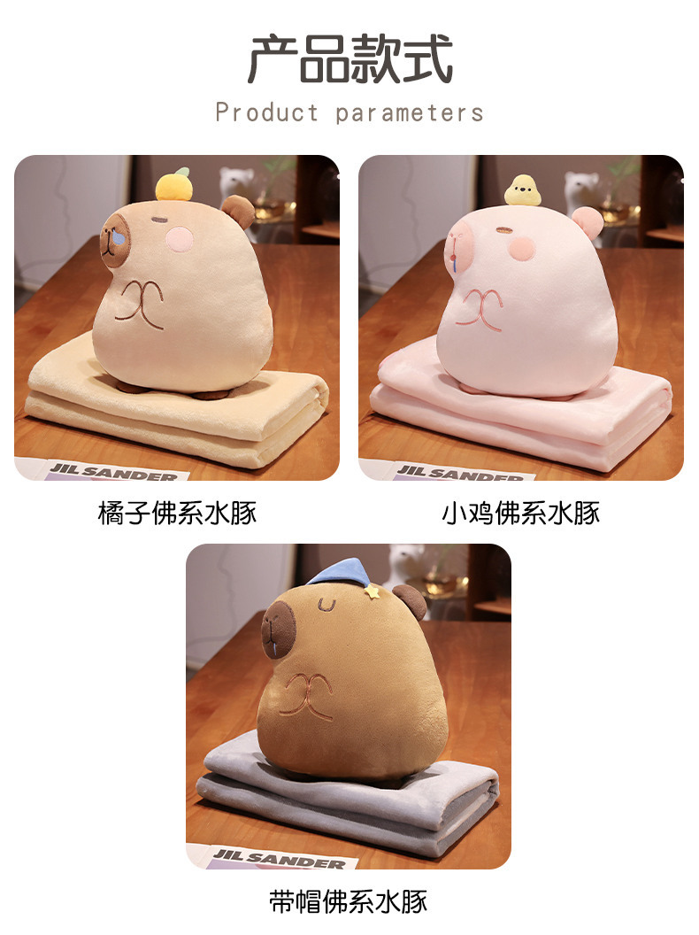 【卡皮巴拉办公室抱枕】水豚造型,轻松午睡;柔软舒适,车上取暖;四季可用,方便实用。办公室、学生和车主的必备利器!