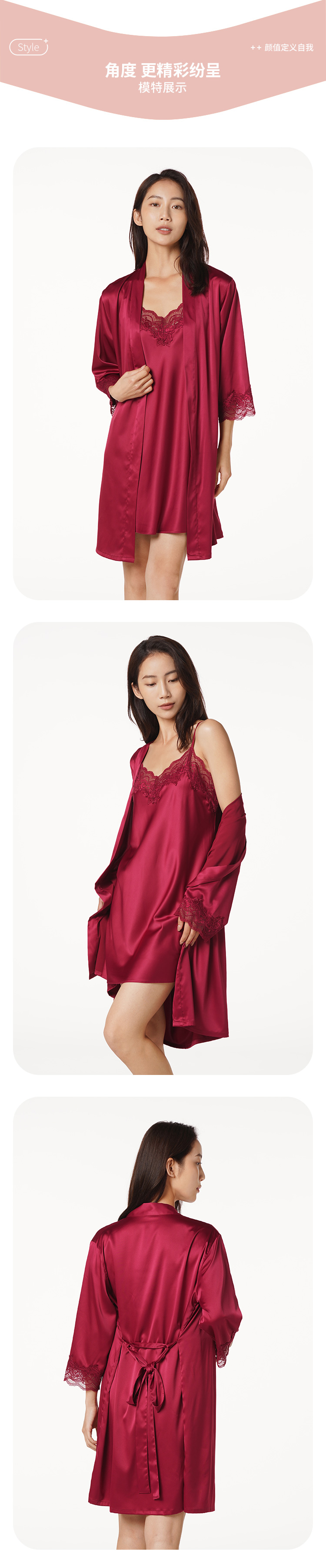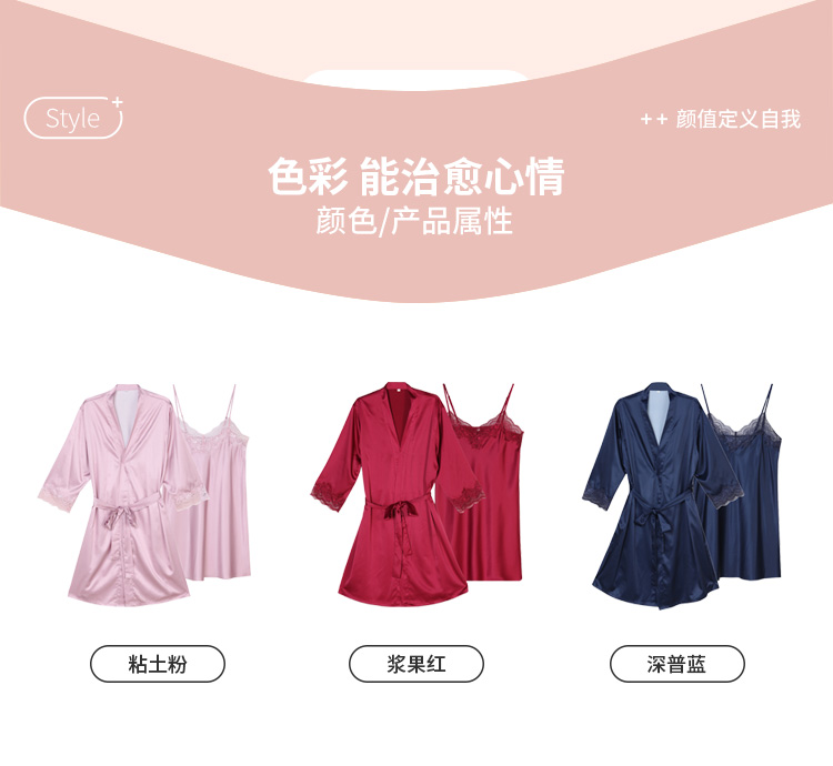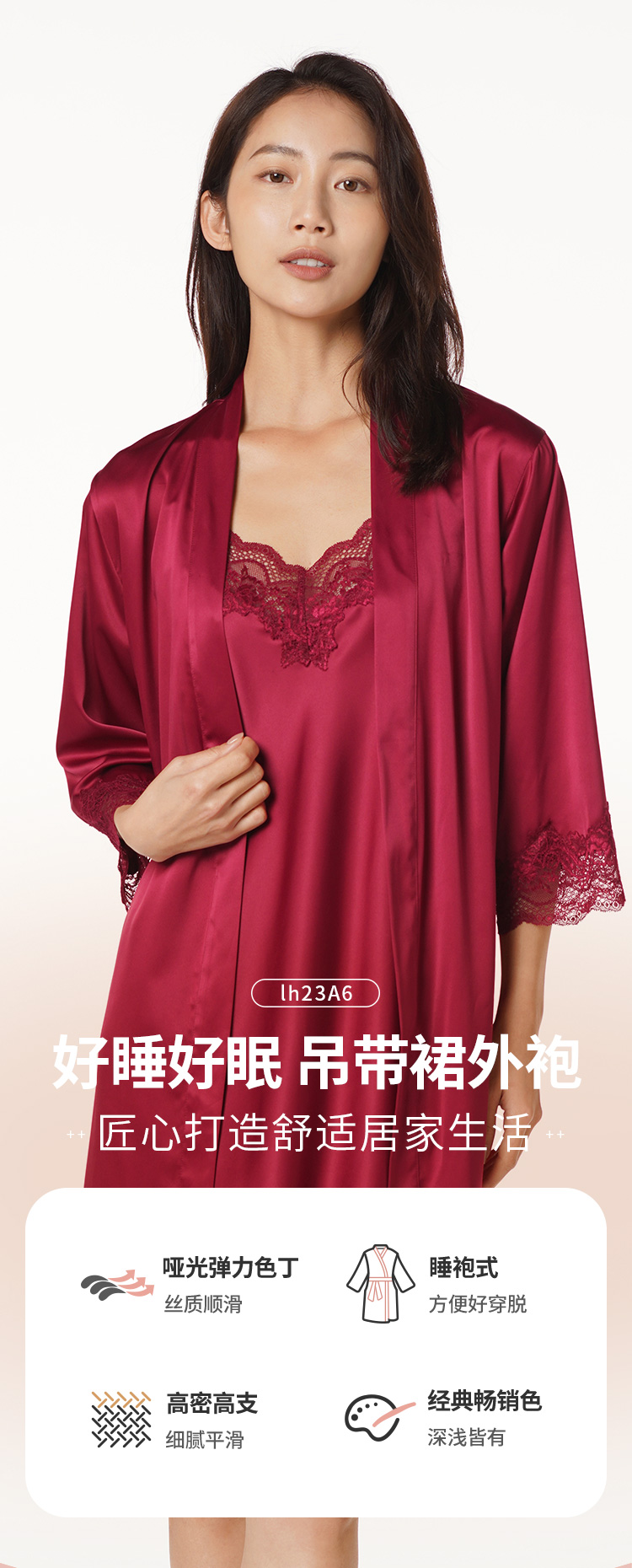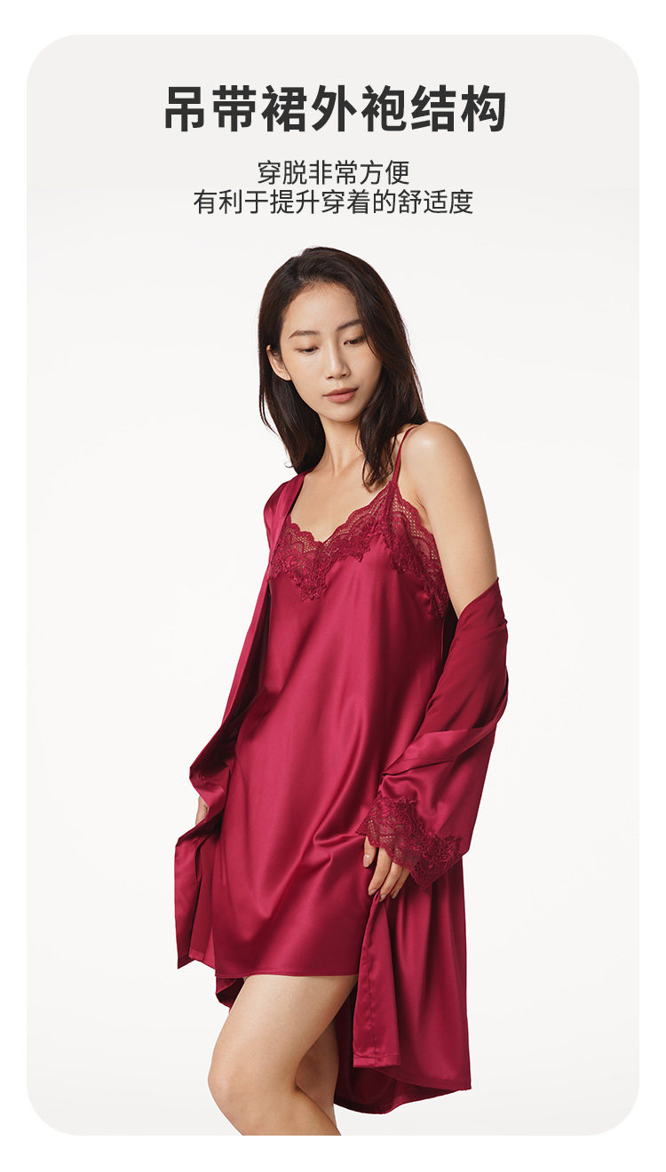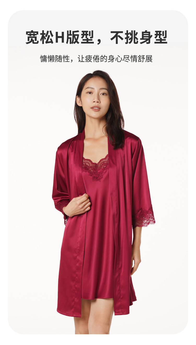 都市丽人好睡好眠女士丝质两件袍哑光弹力色丁薄家居服两件套睡衣LH23A6