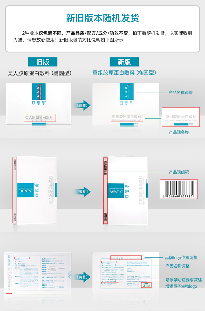 【防伪可验】可复美重组胶原蛋白敷料敏感性肌肤修复医 用敷料敷贴非面膜5片/盒