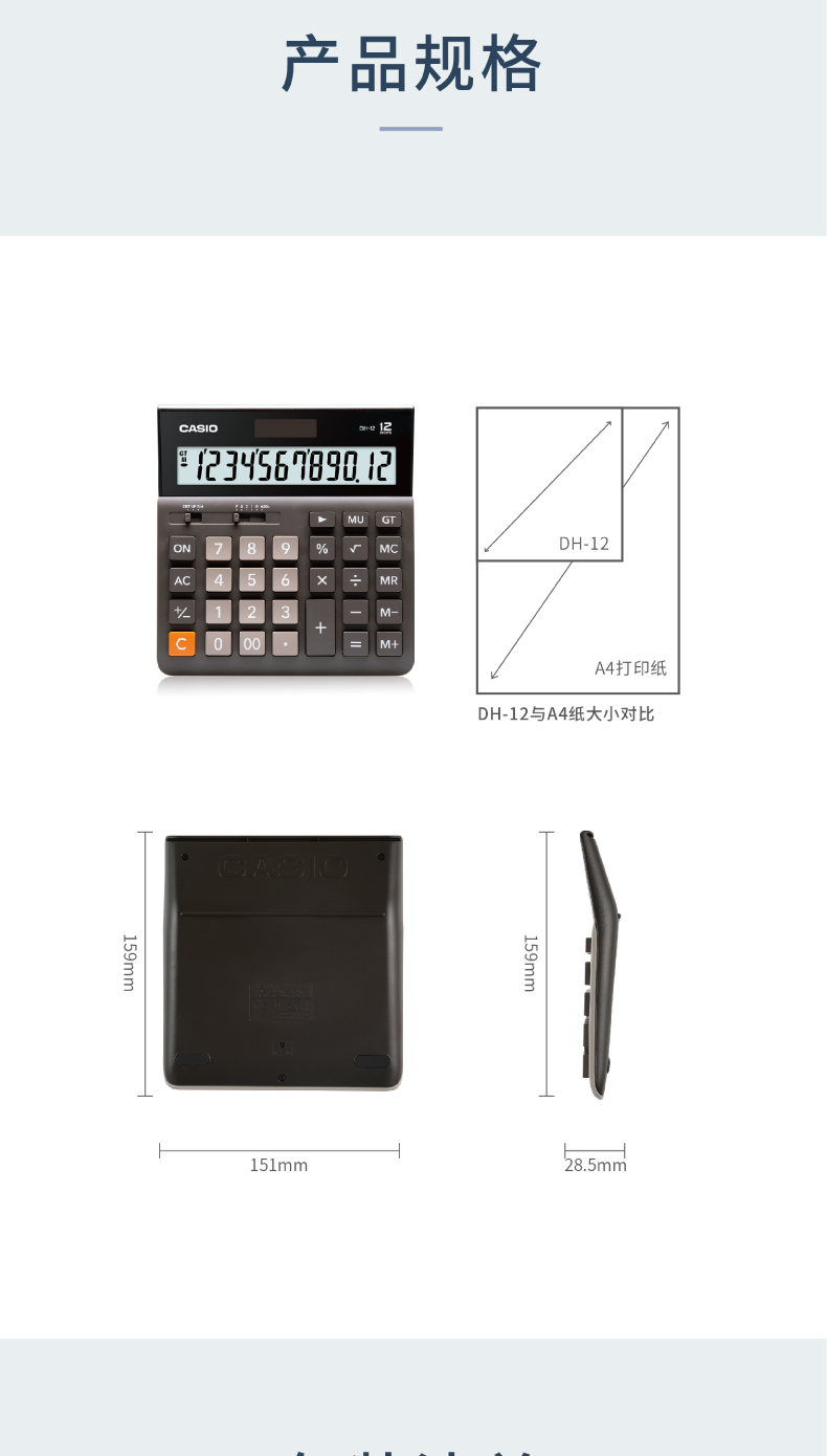 卡西欧计算器 日常商务 宽大系列计算器DH-12