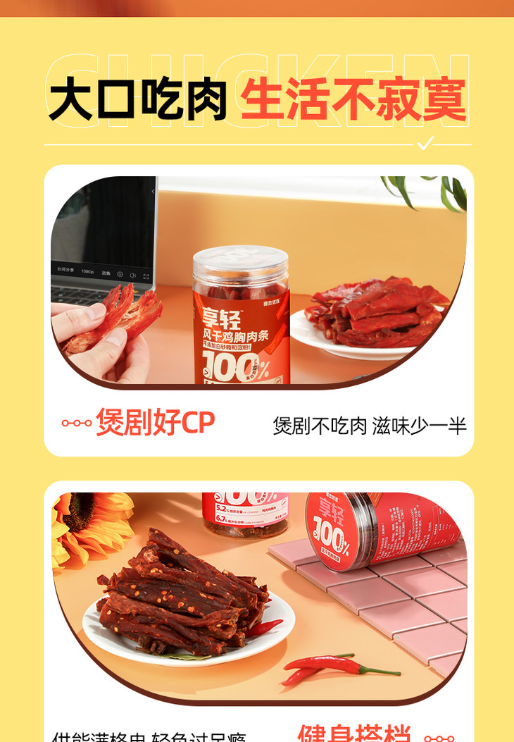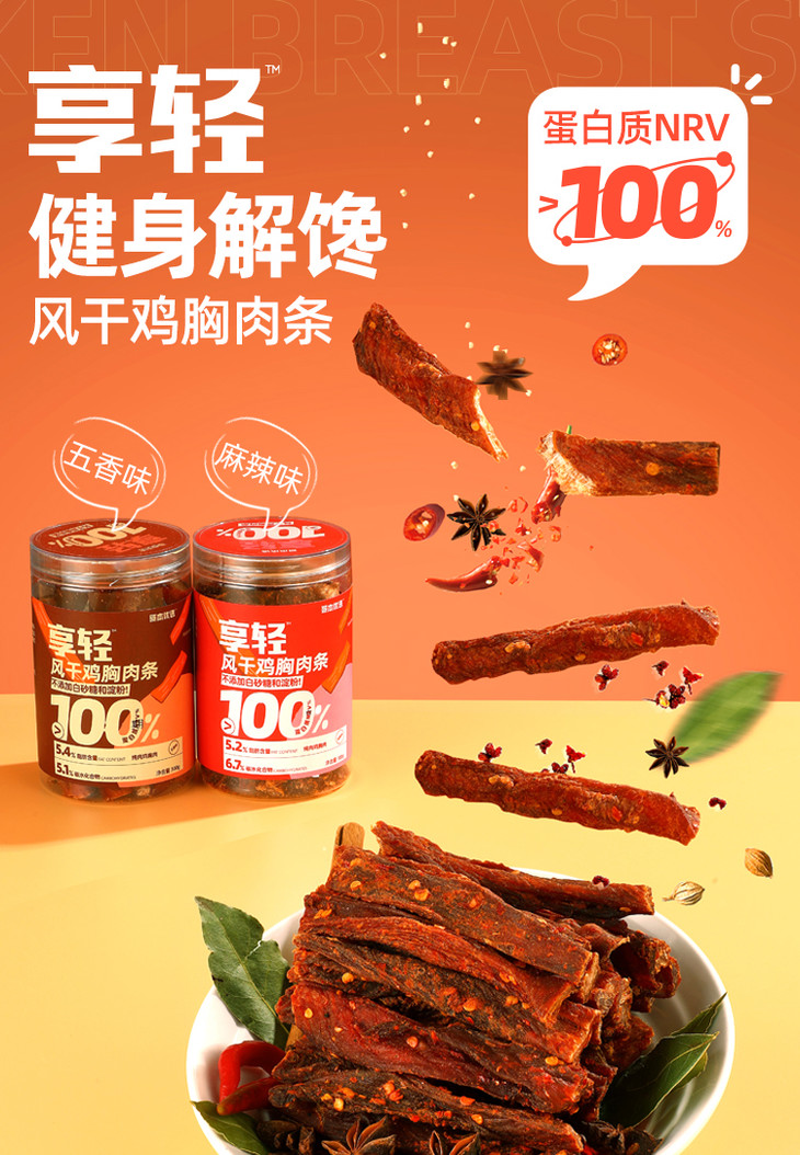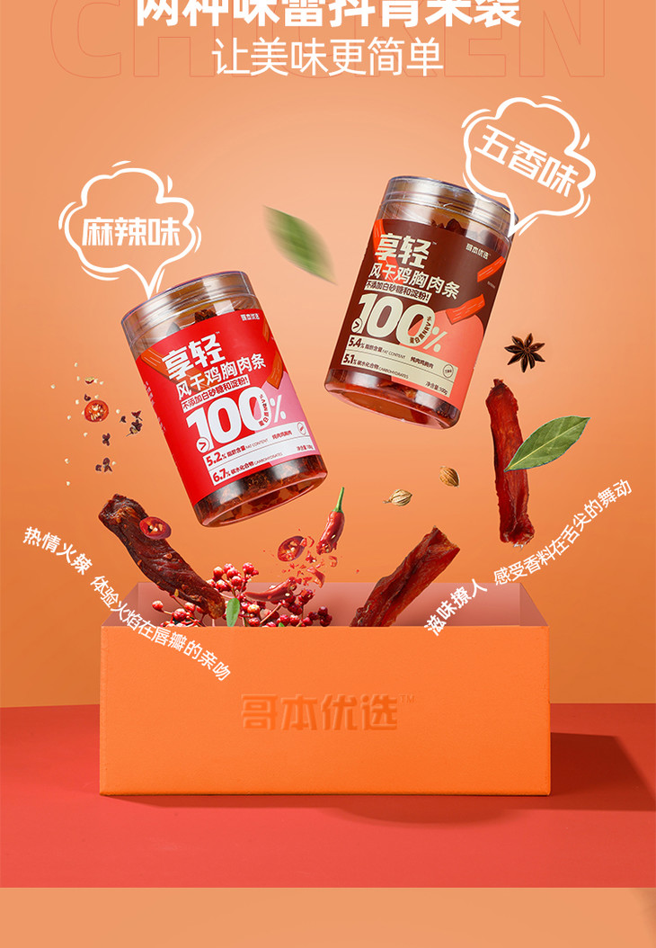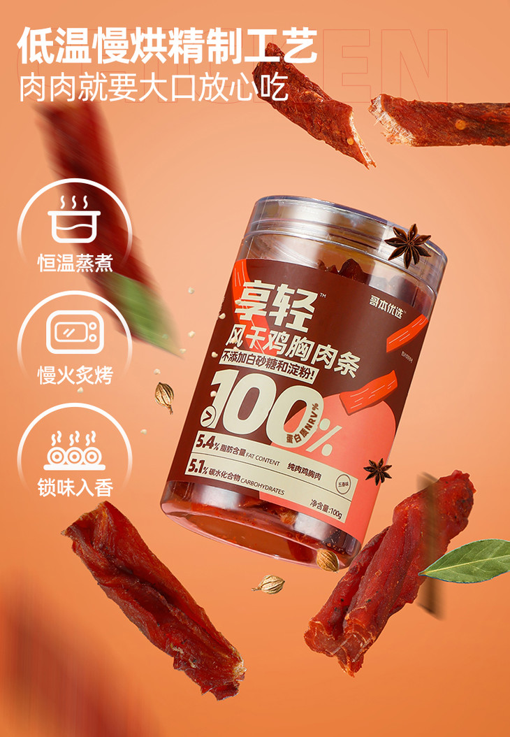 【🍜8.18-8.20健康低卡好味专场】哥本优选享轻风干鸡胸肉条 高蛋白控碳水 0蔗糖添加 0反式脂肪酸 每罐100g 怪兽商城专属