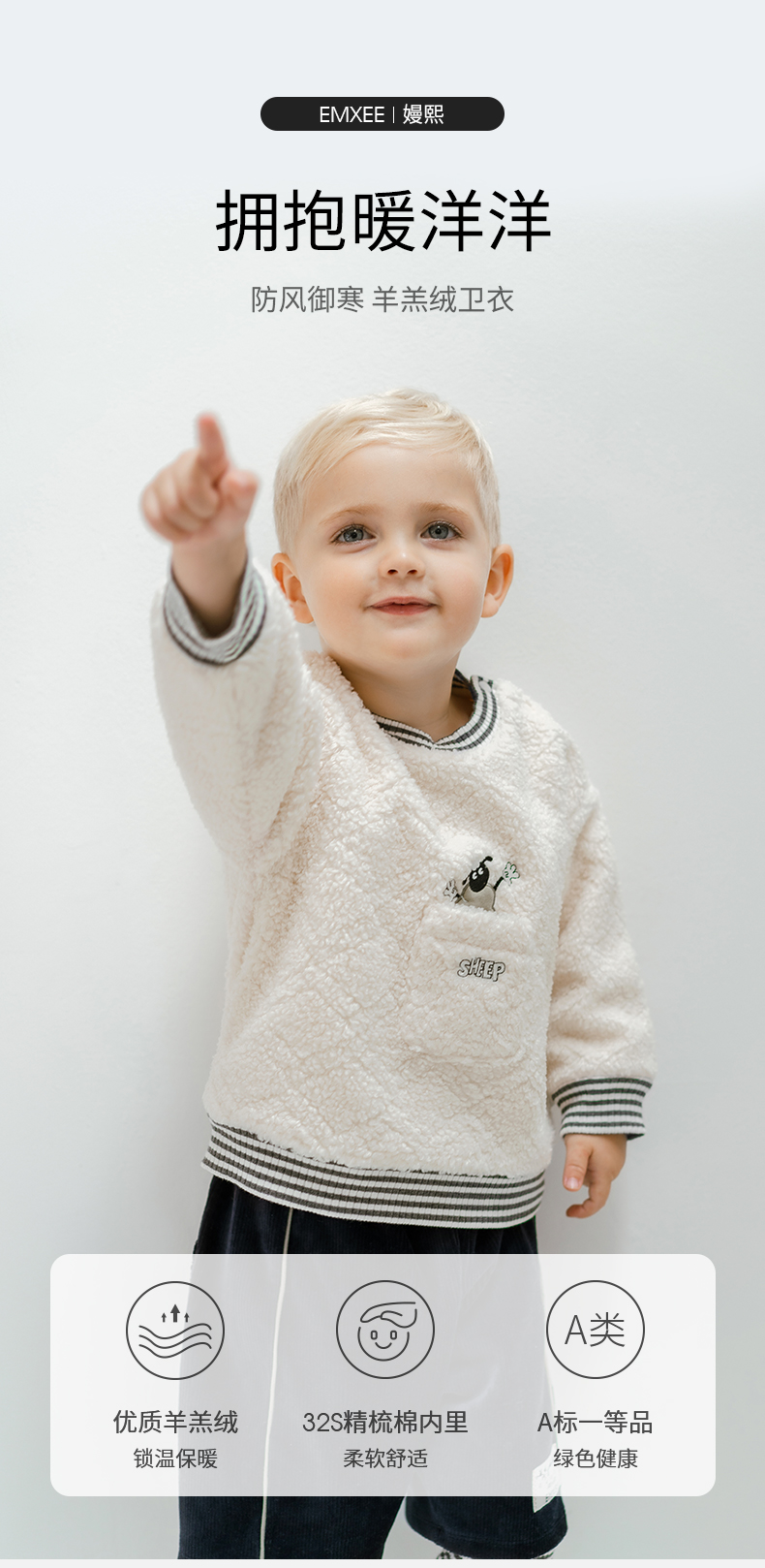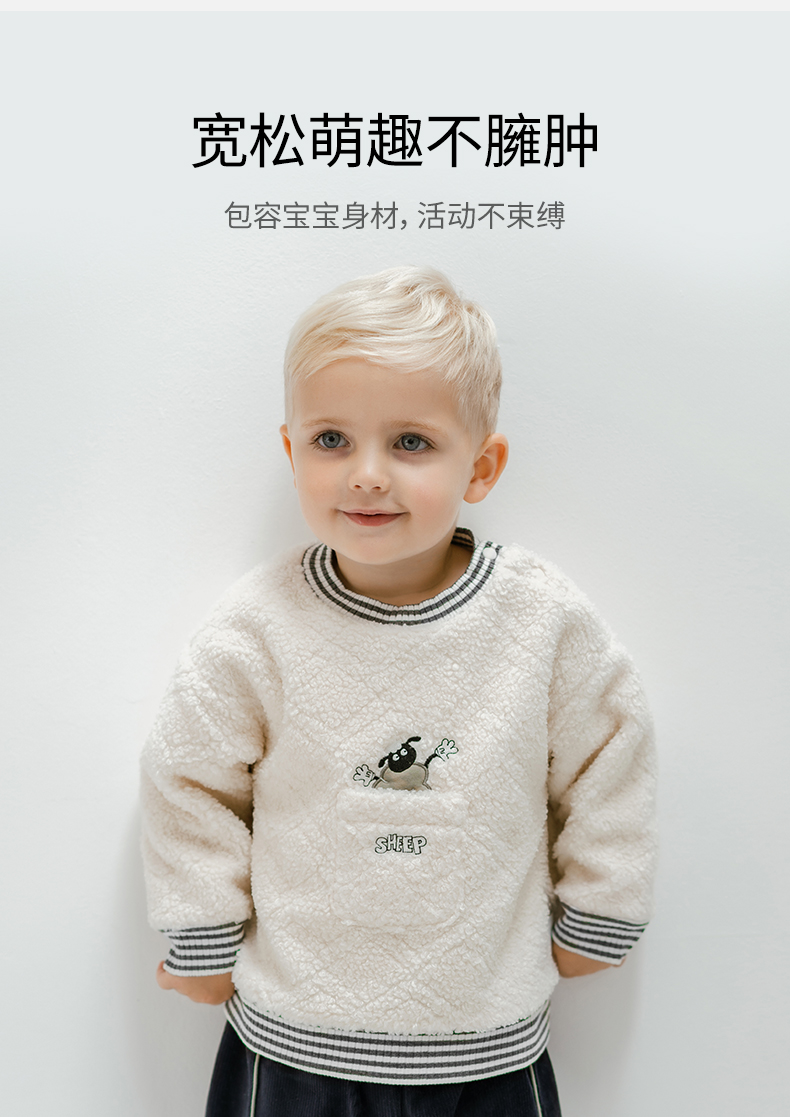 【宝宝服饰】嫚熙童装2023秋冬季新款男童女童可爱小绵羊打底衫休闲百搭套头衫
