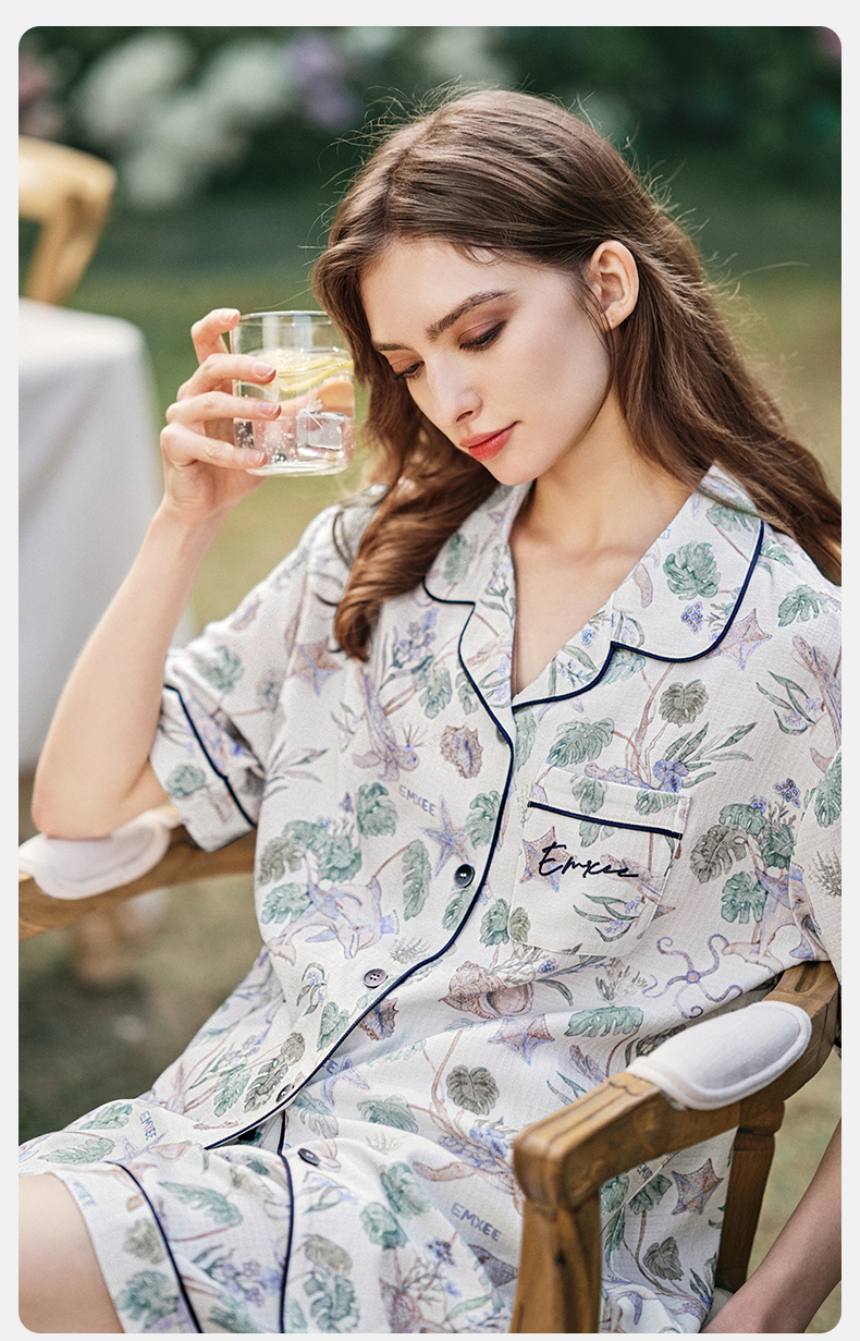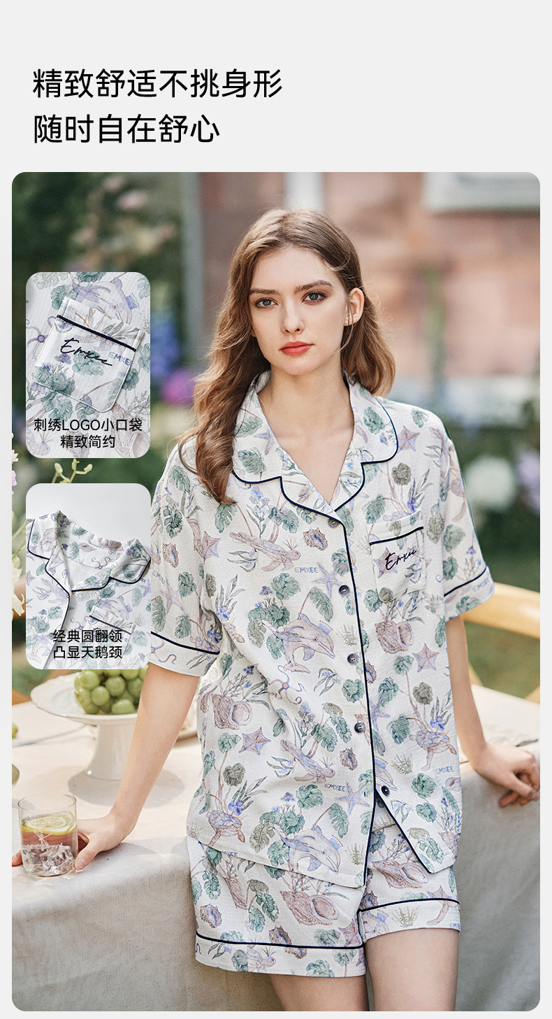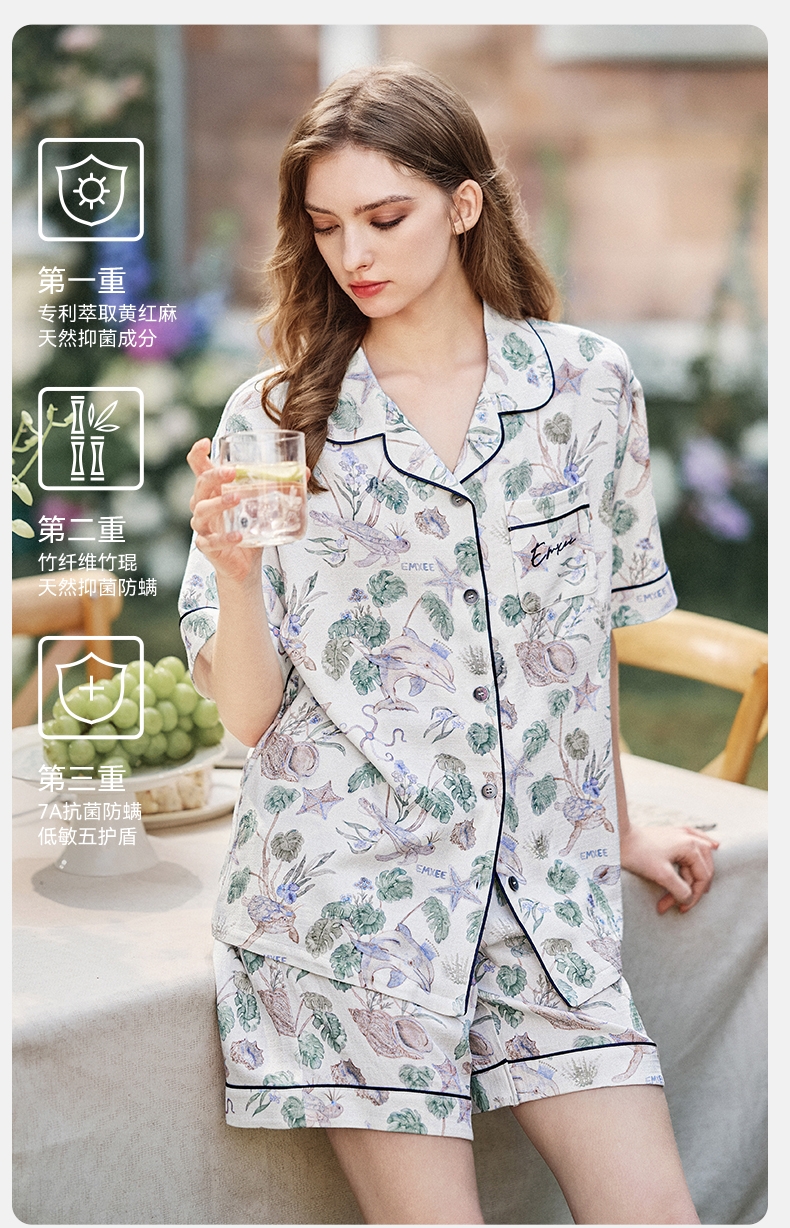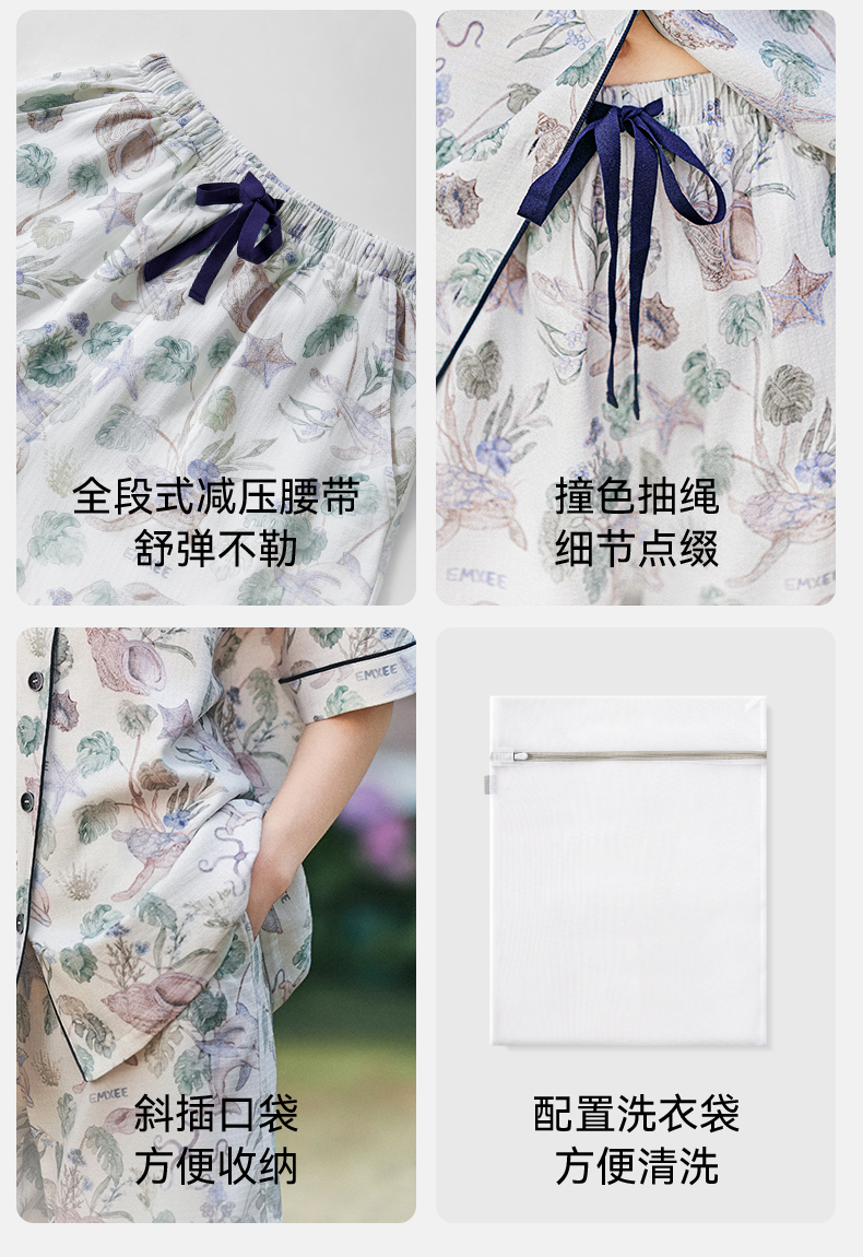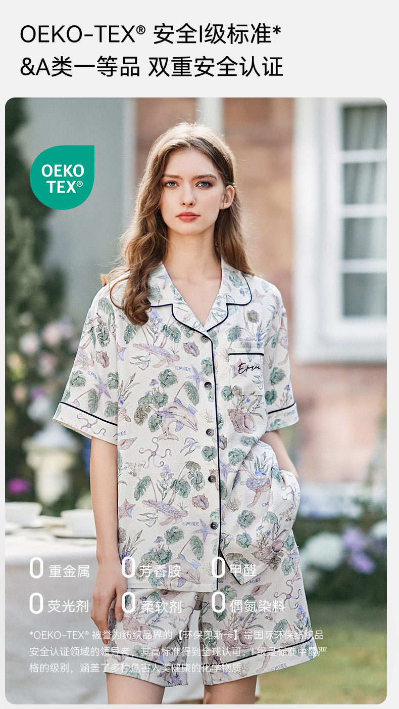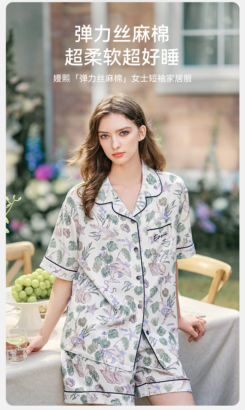 【家居服专场】嫚熙夏季弹力丝麻棉女士睡衣亲子情侣胸垫款家居服套装2025新款