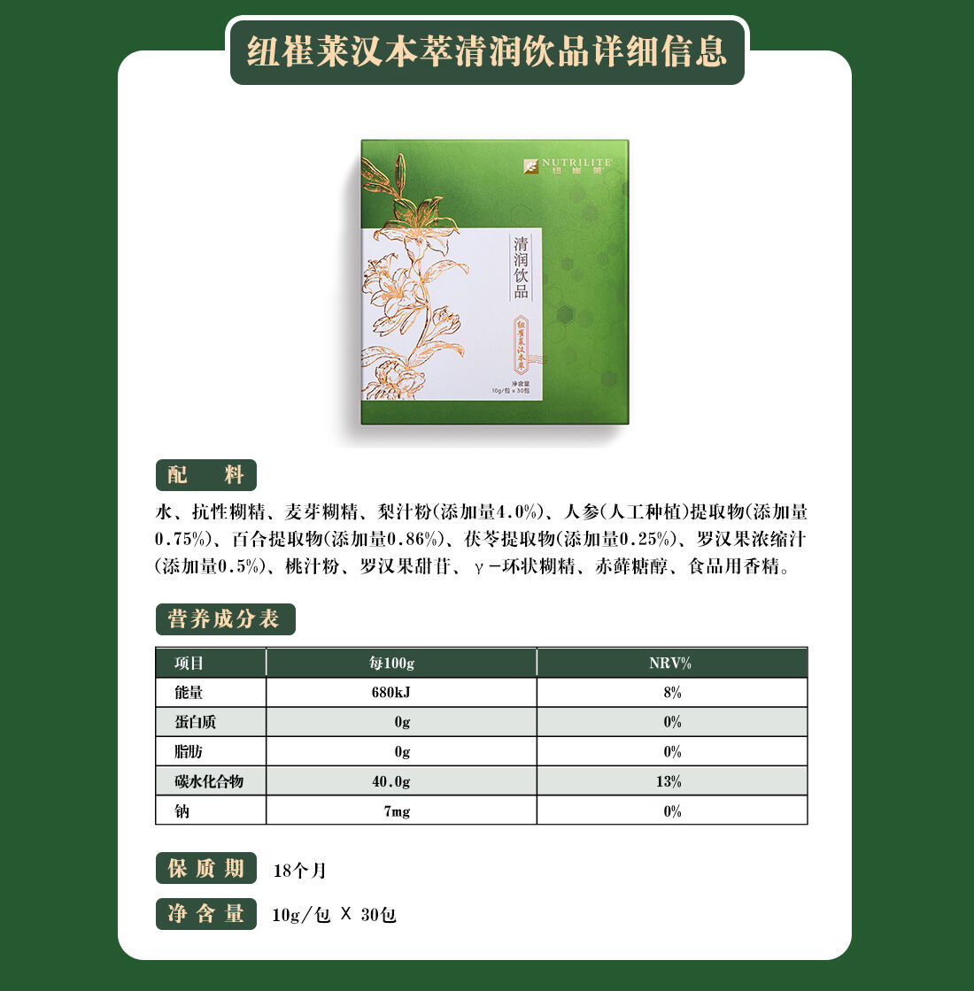 NCL汉本萃清润饮品30条装