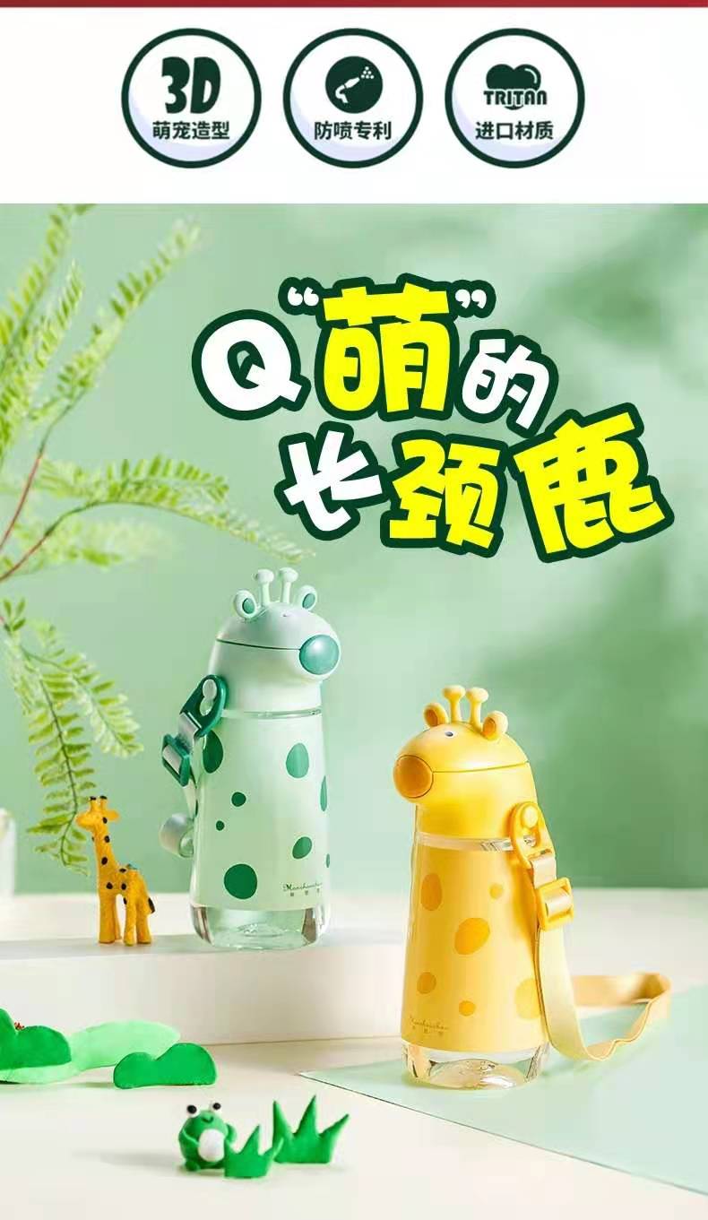 儿童吸管杯【可积分兑换】小学生便携防摔长颈鹿男女背带水壶宝宝夏季杯子【MON-84440】
