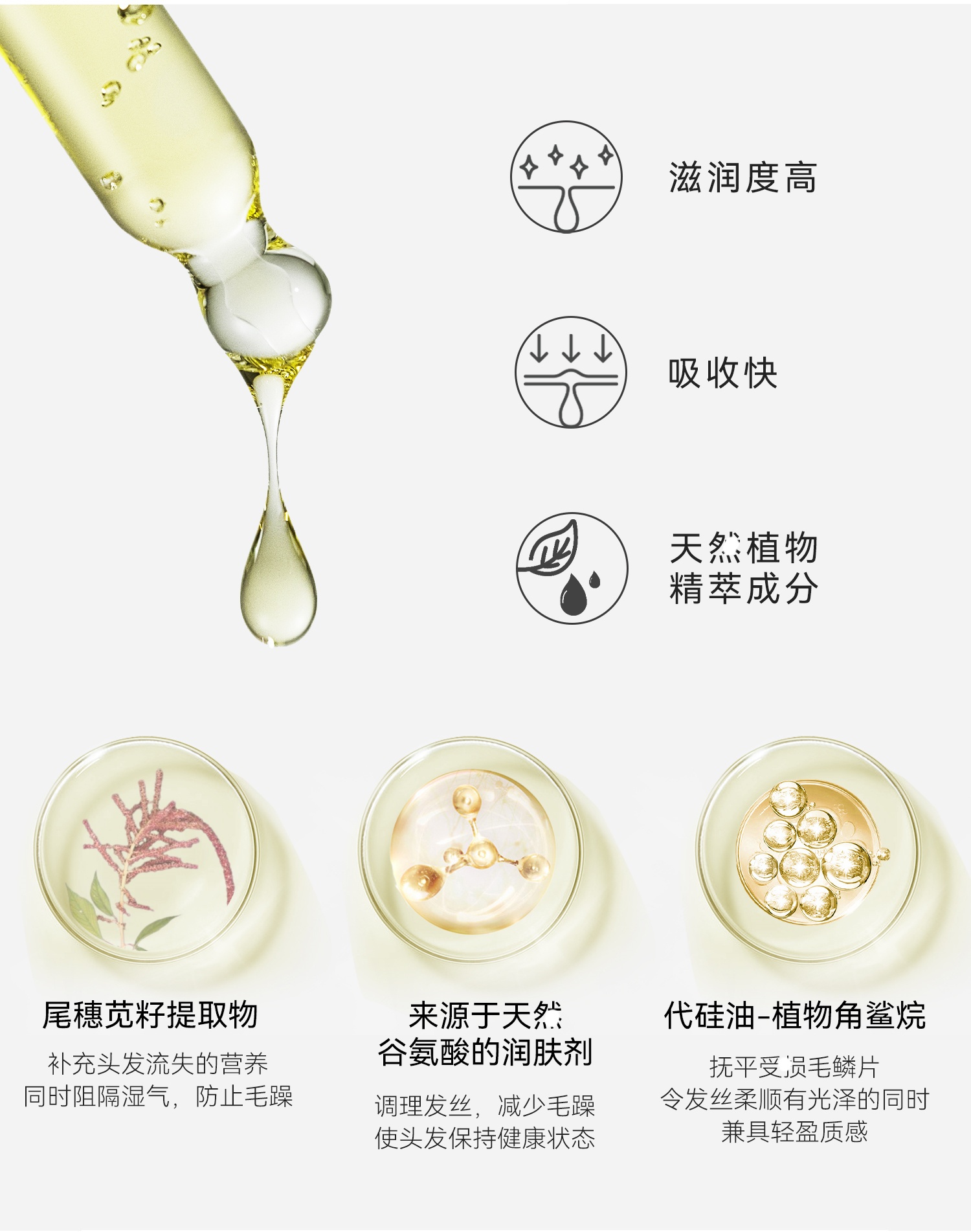 打破了传统护发精油油腻不吸收、厚重易扁塌等局限性