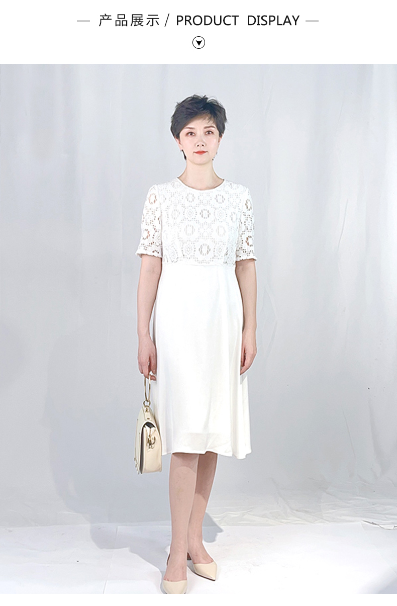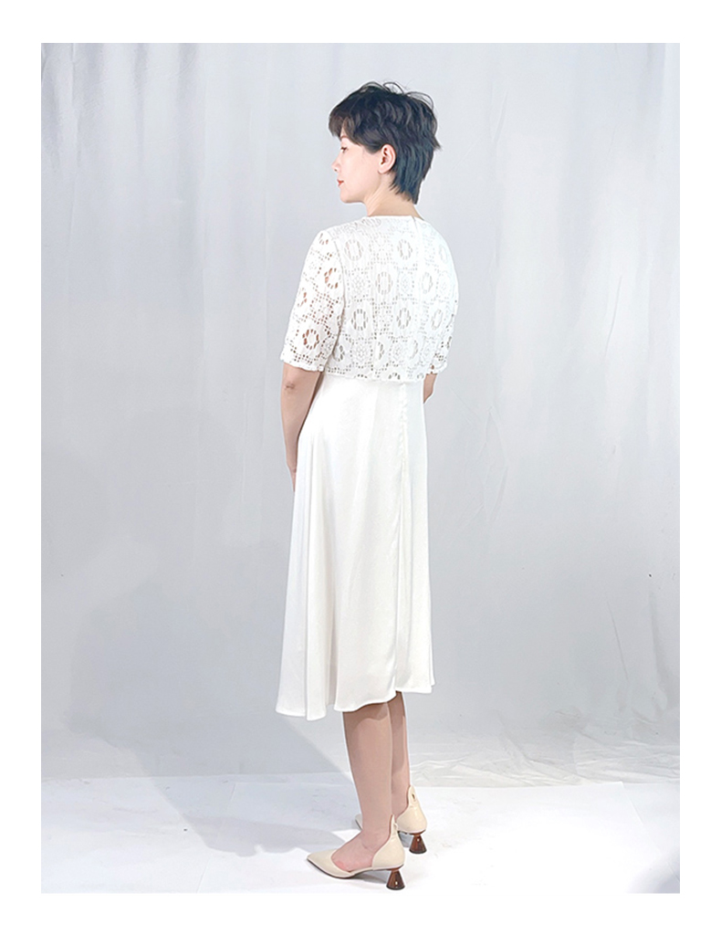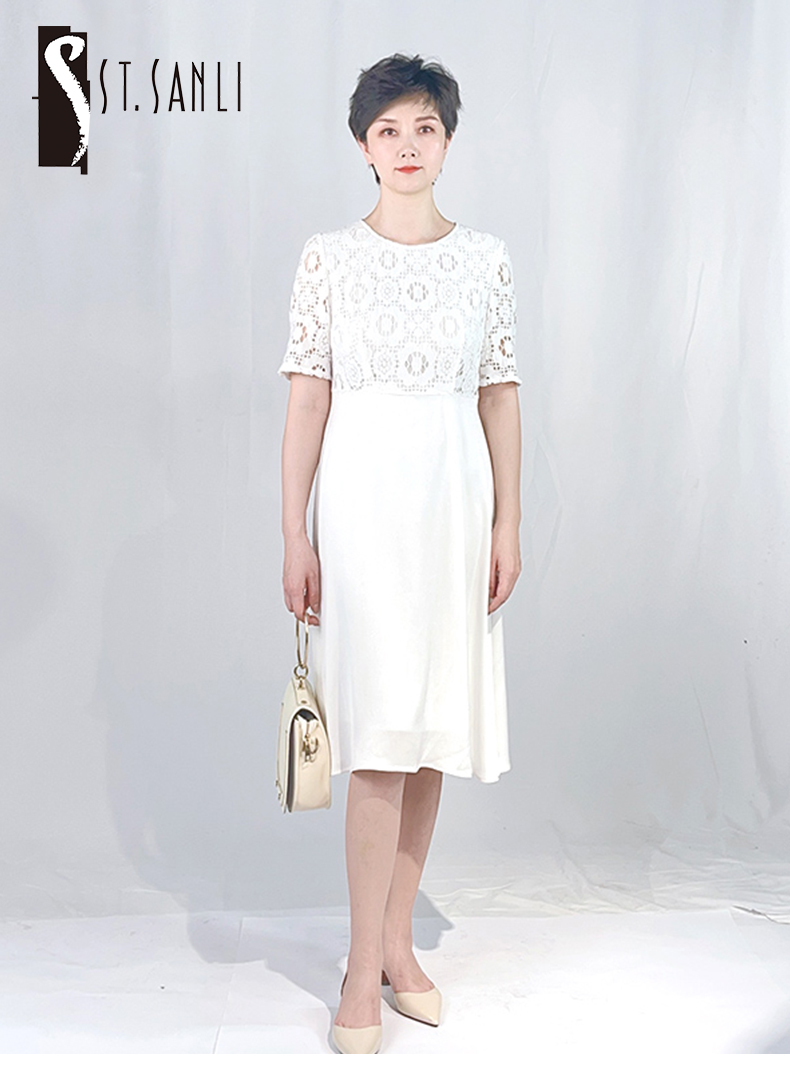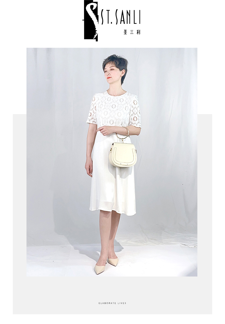 圣三利女装 仙女风花朵蕾丝中长拼接款连衣裙SL2017134