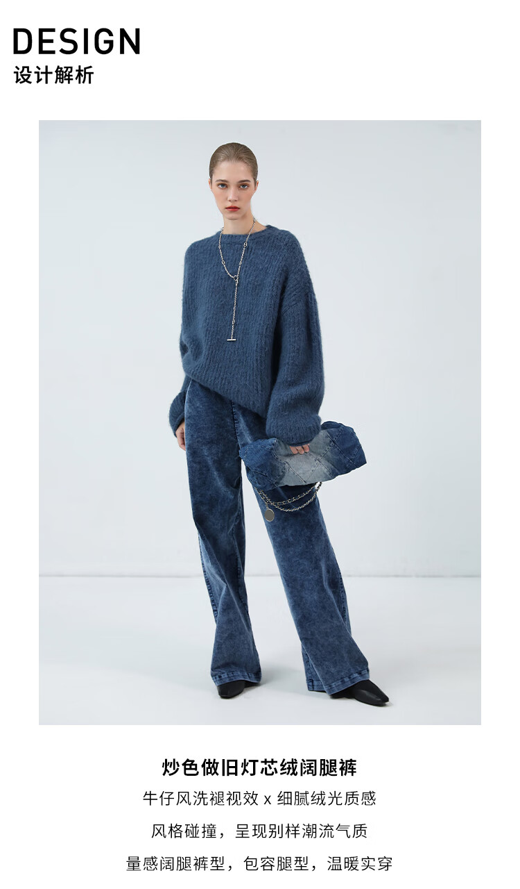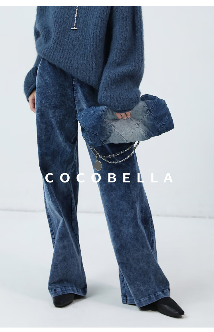 COCOBELLA[MIU系穿搭]重工水洗做旧牛仔裤灯芯绒休闲裤DN0011
