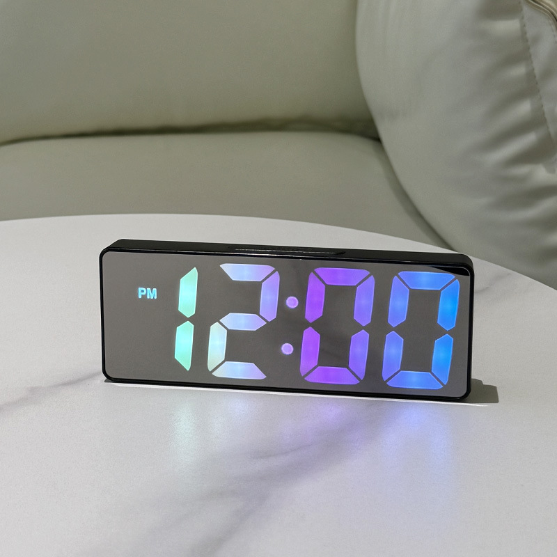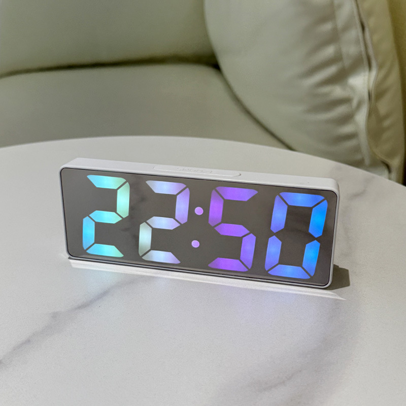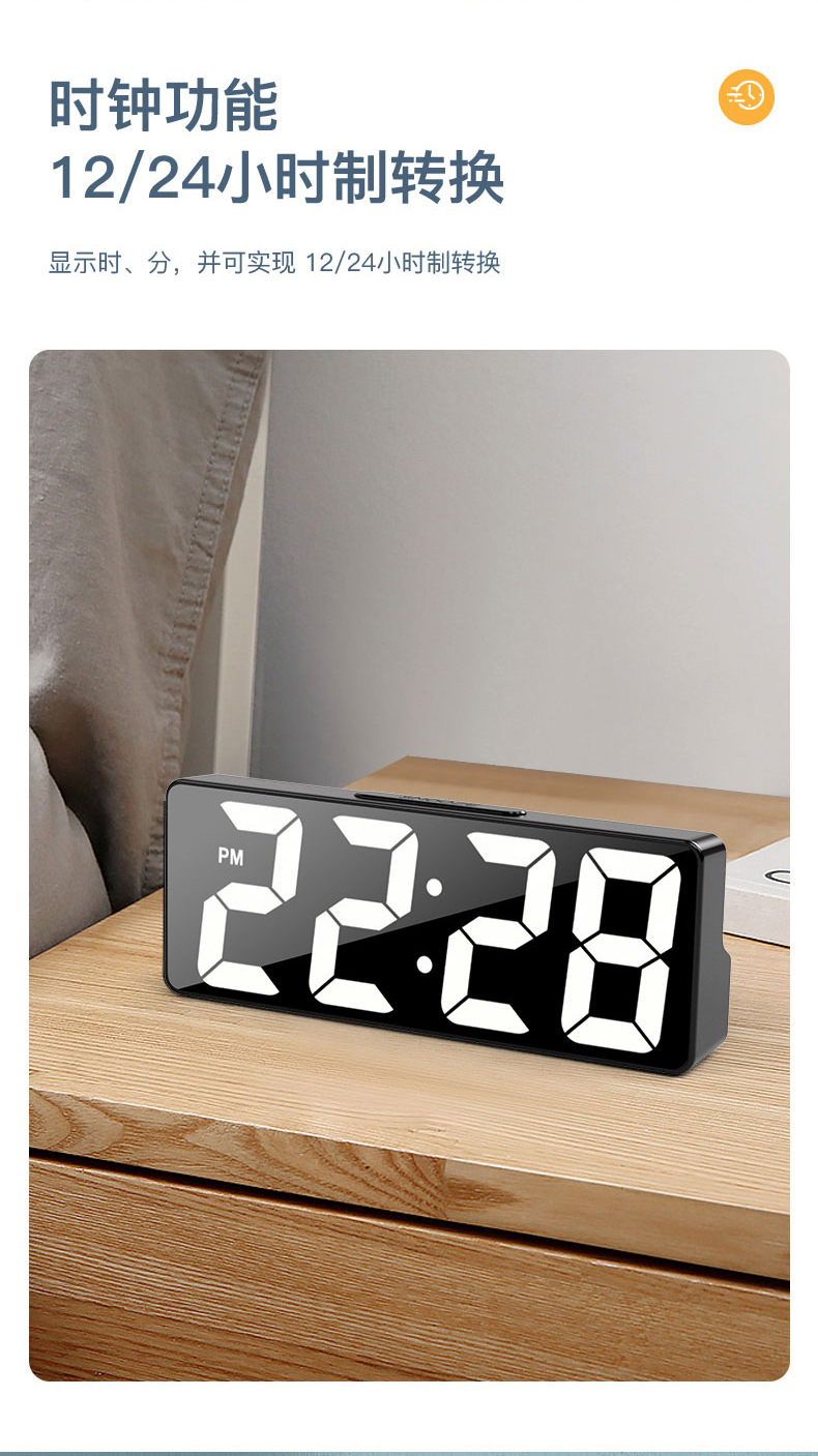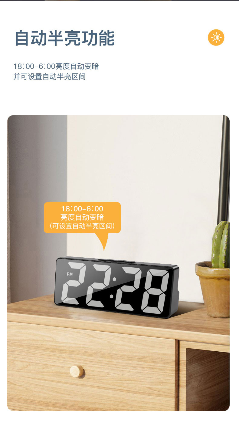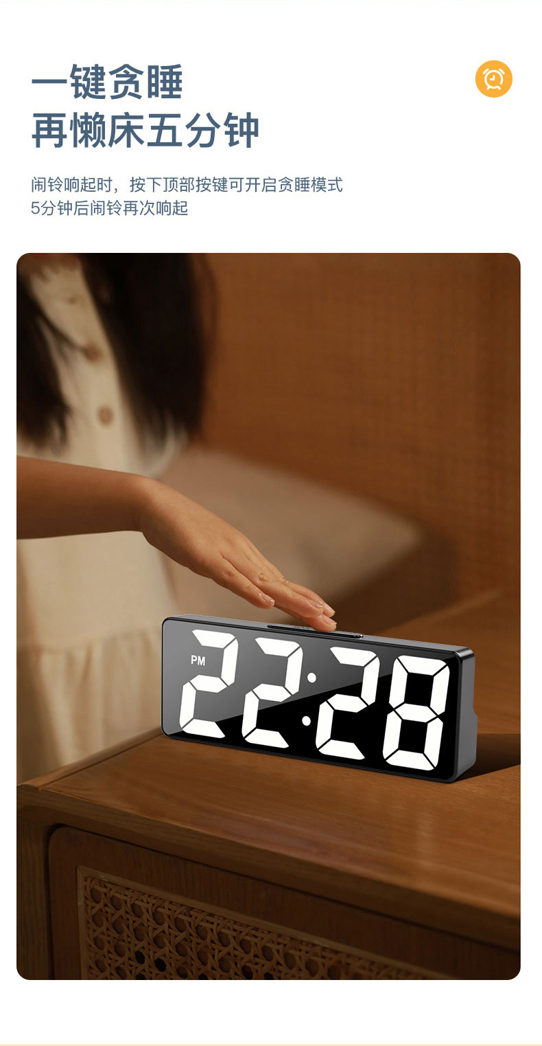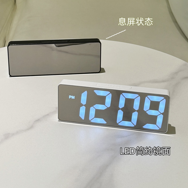 【灯光柔和 时尚实用!】镜里穿越时空,梦中与自己相遇。温度提醒,声控触发。LED简约镜面电子闹钟化妆镜,学生上班族必备,USB电池两用,让懒惰的你方便起床,告别贪睡!