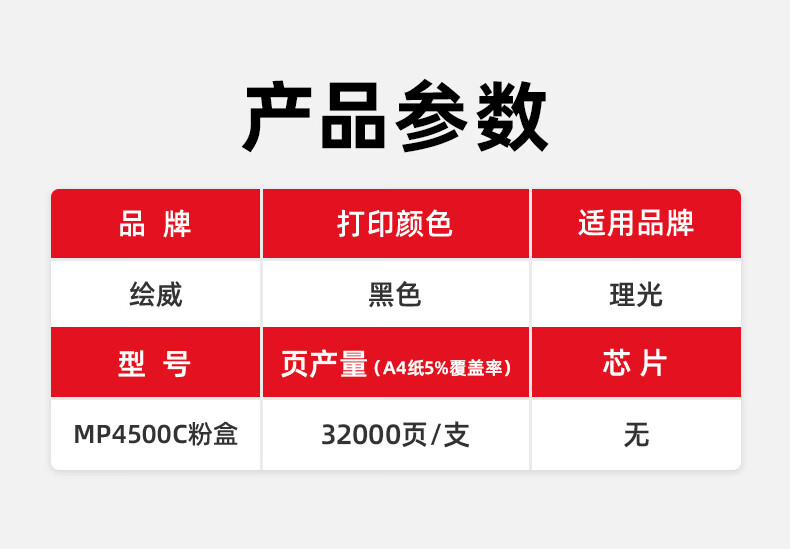 绘威MP4500C粉盒 适用理光RICOH MP 4000B 4000BSP 5000B 5000BSP 4001 5001 4002 4002SP 5002 5002SP墨粉盒