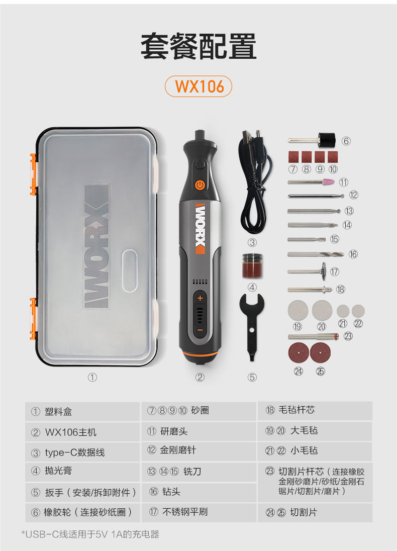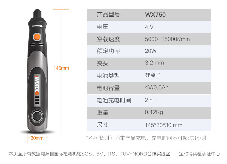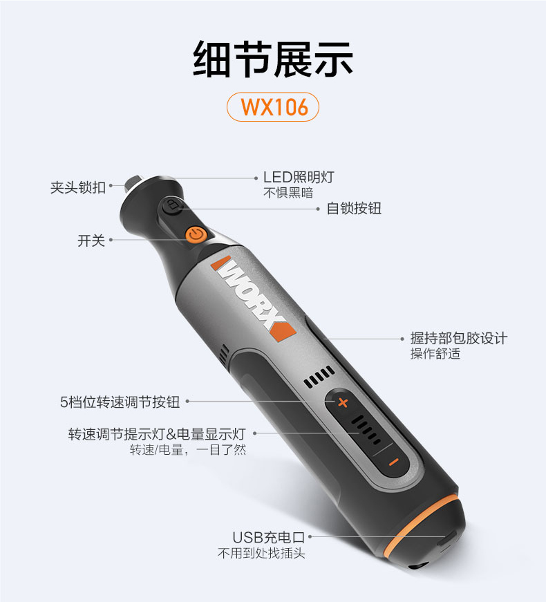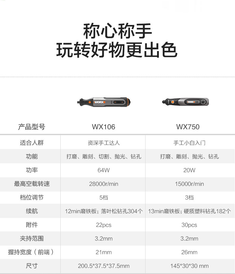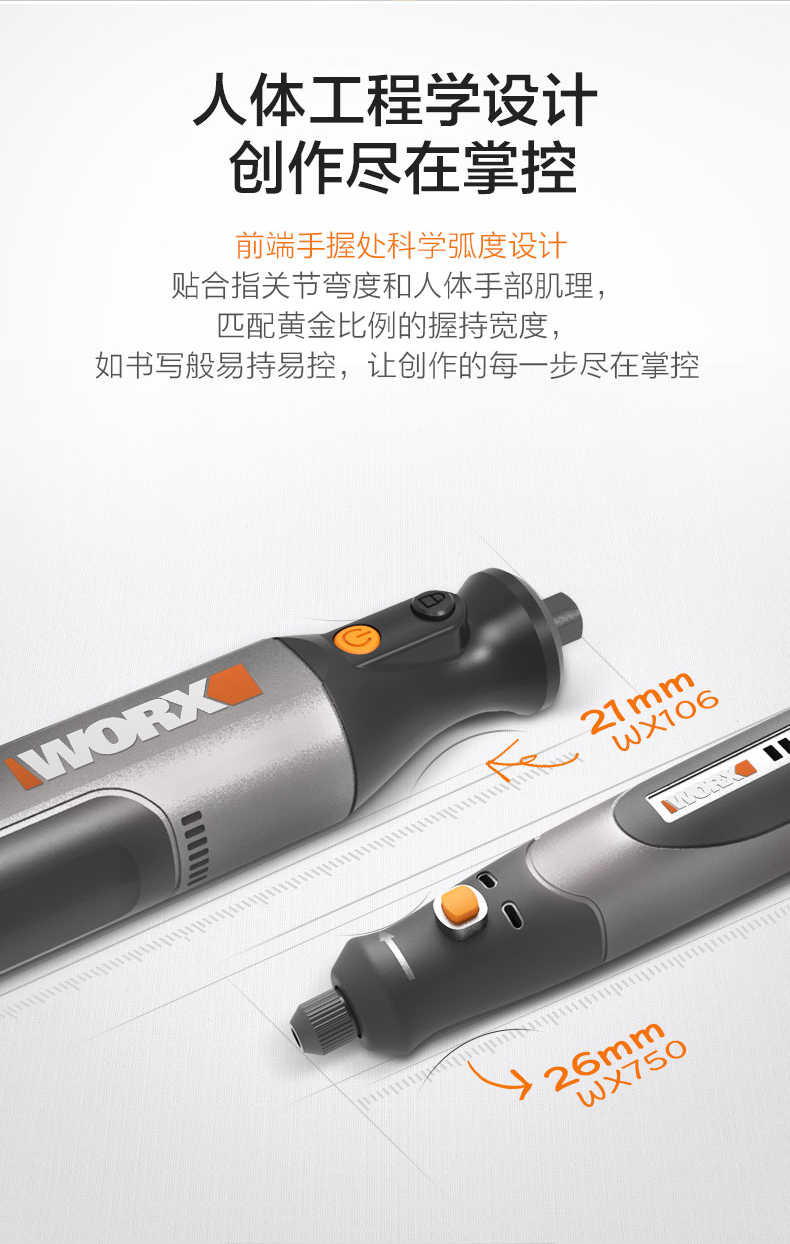WORX威克士WX750电磨机4V/8V小型电动打磨抛光切割机玉石雕刻工具WX106