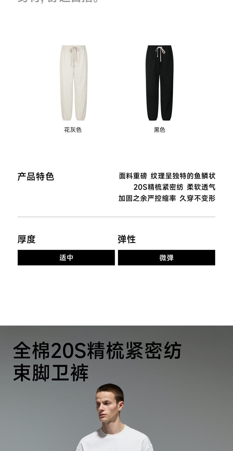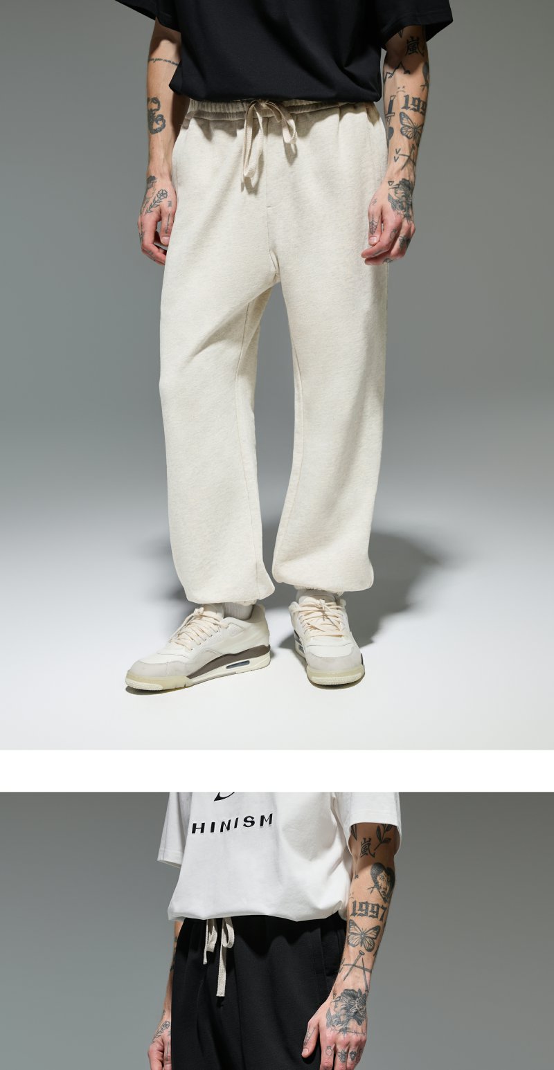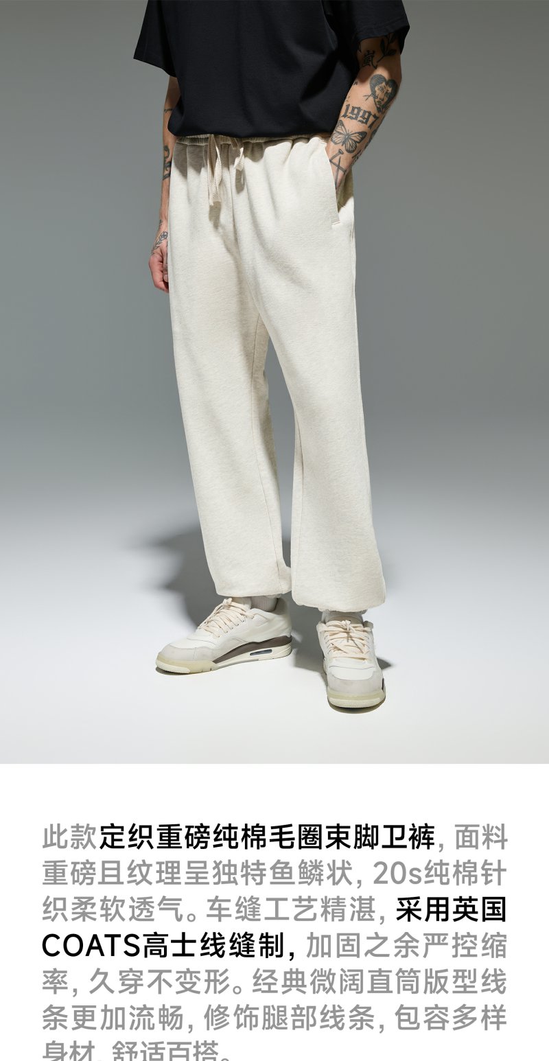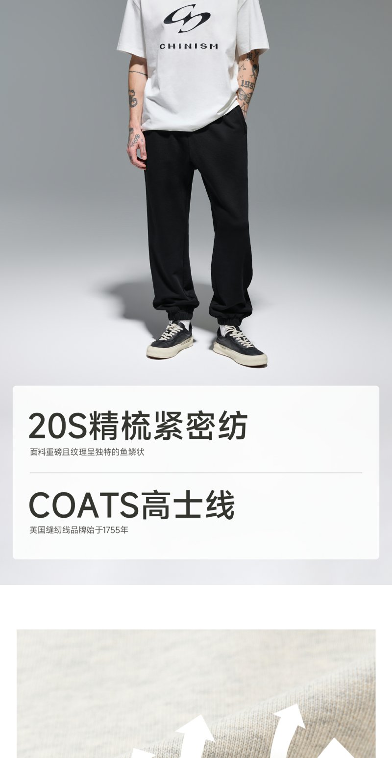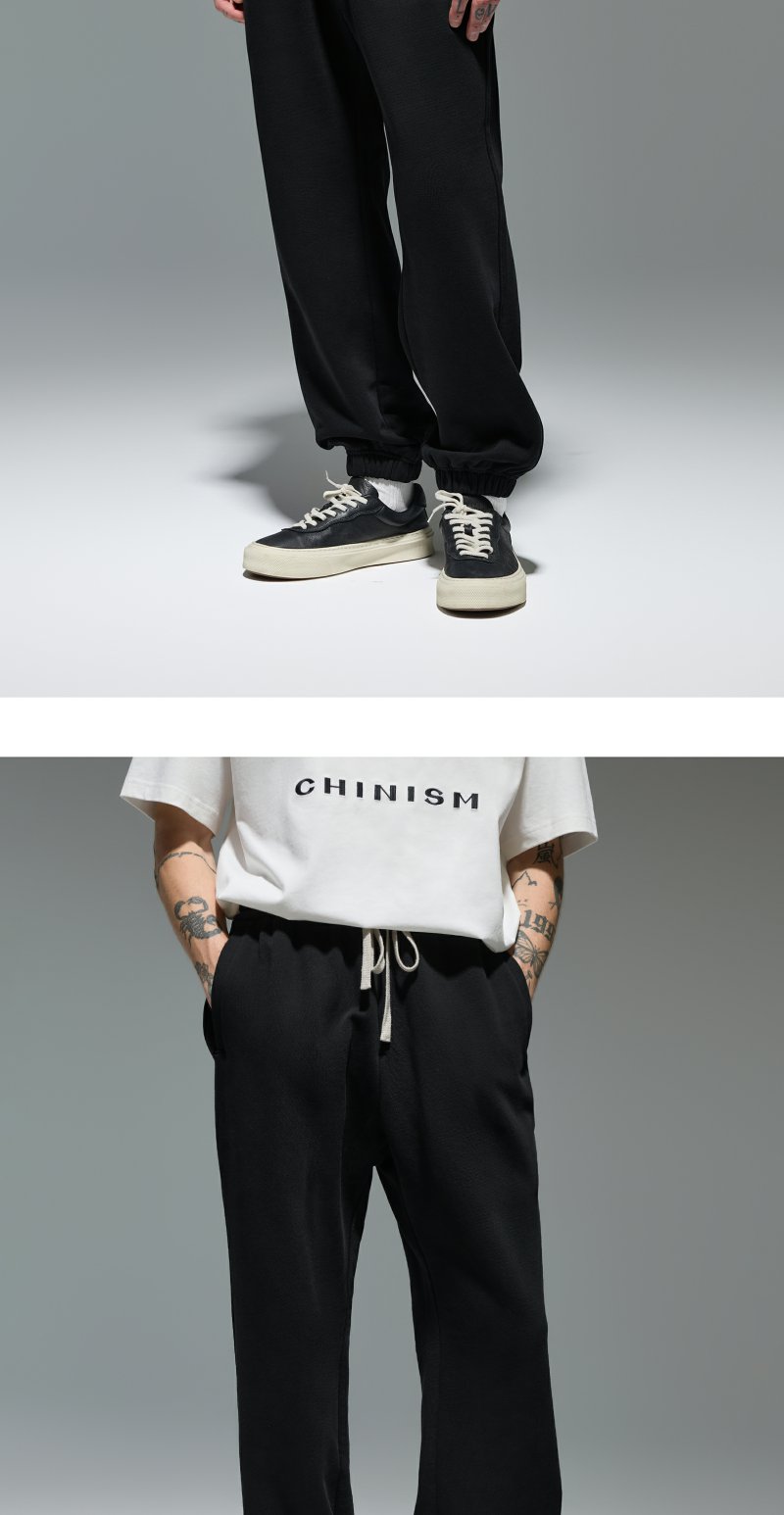 CHINISM赤尘 花灰色束脚卫裤男秋季美式重磅直筒运动纯棉休闲裤