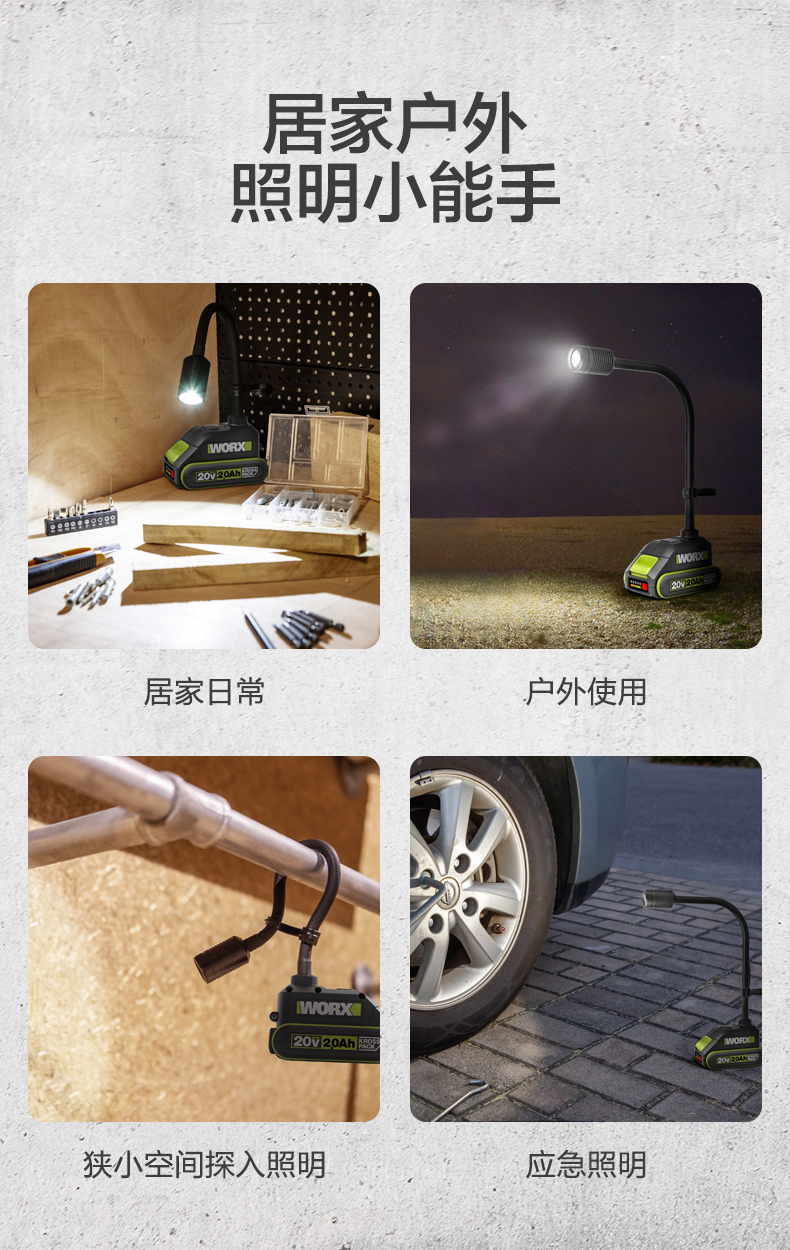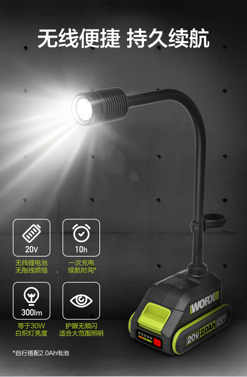 威克士WU026手提20伏锂电LED强光投光灯充电型户外露营照明灯射灯