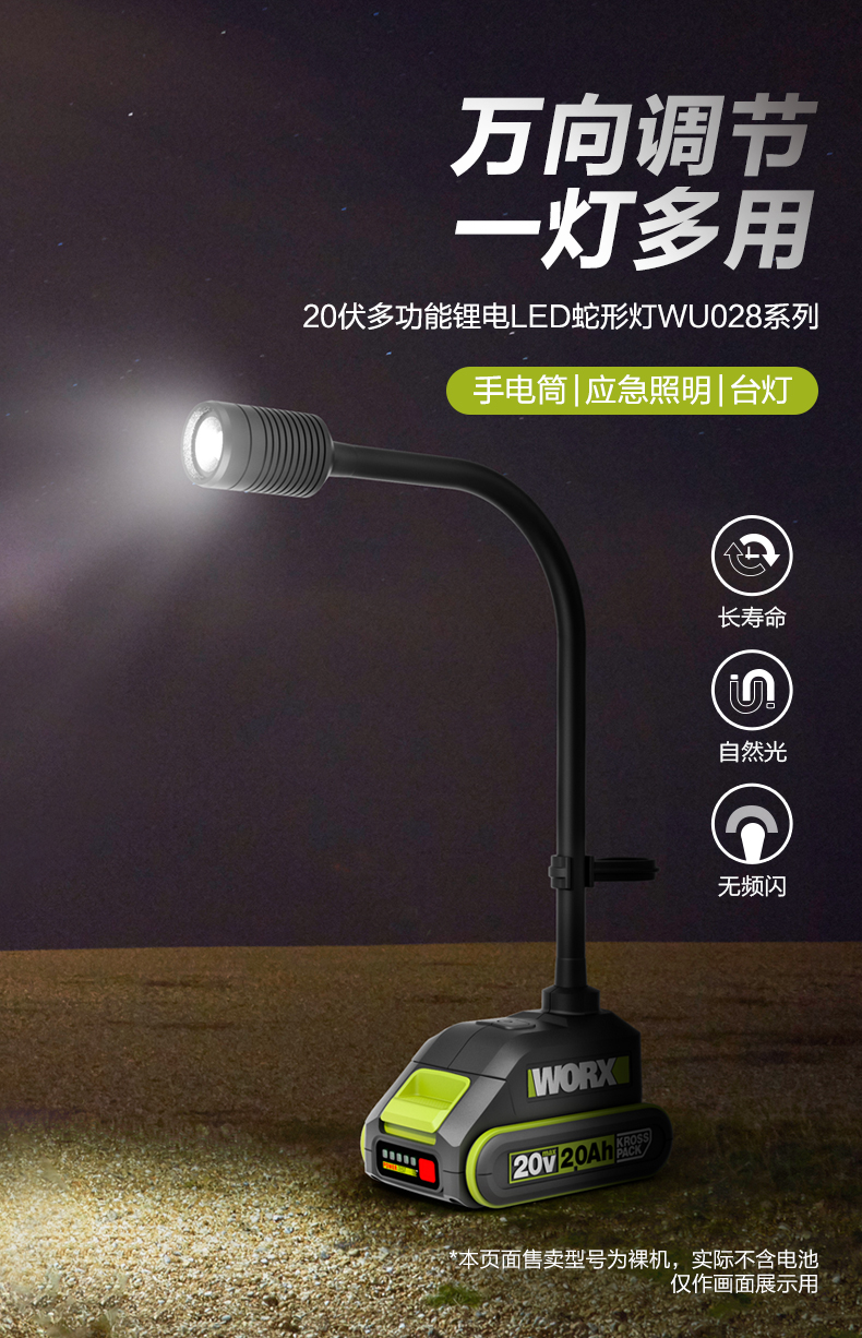 威克士锂电户外照明小台灯WU028多功能无线便携LED万向蛇形灯