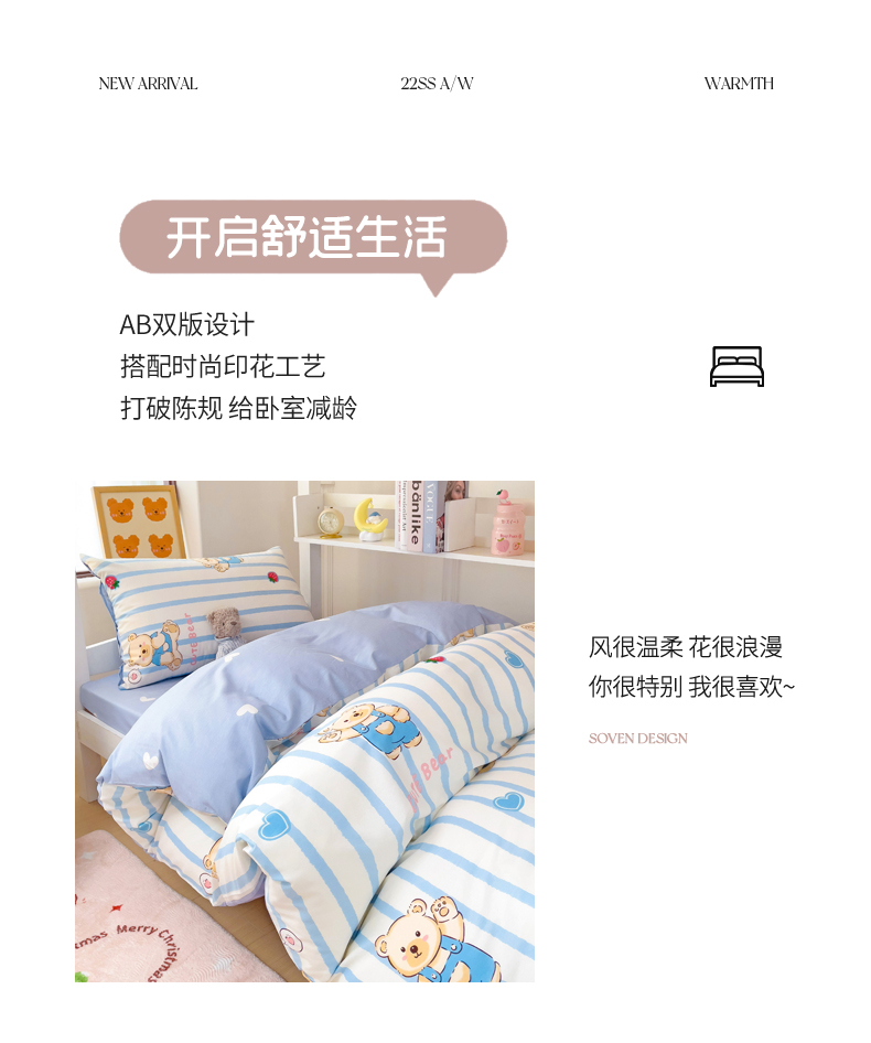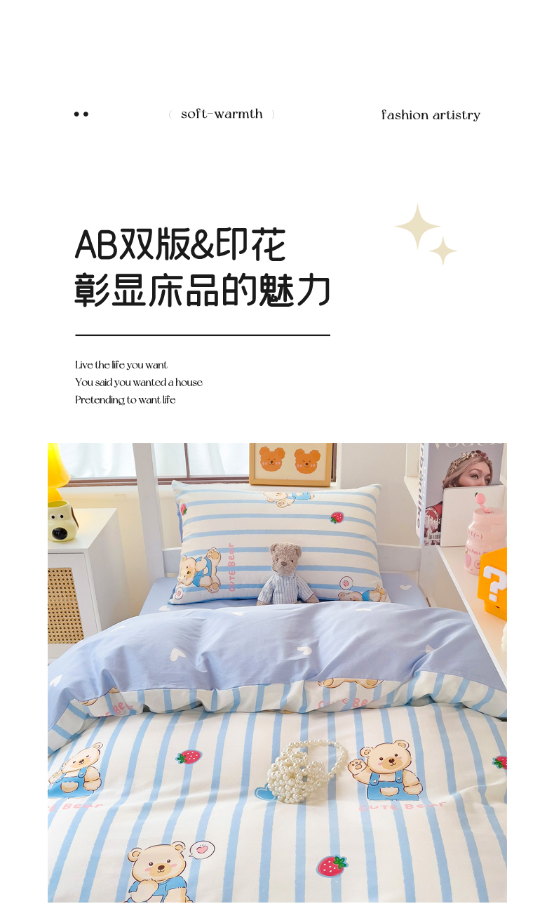 自然醒学生宿舍床上三件套寝室上下铺被罩全棉13070被套床单0.9m床单人套件NH152