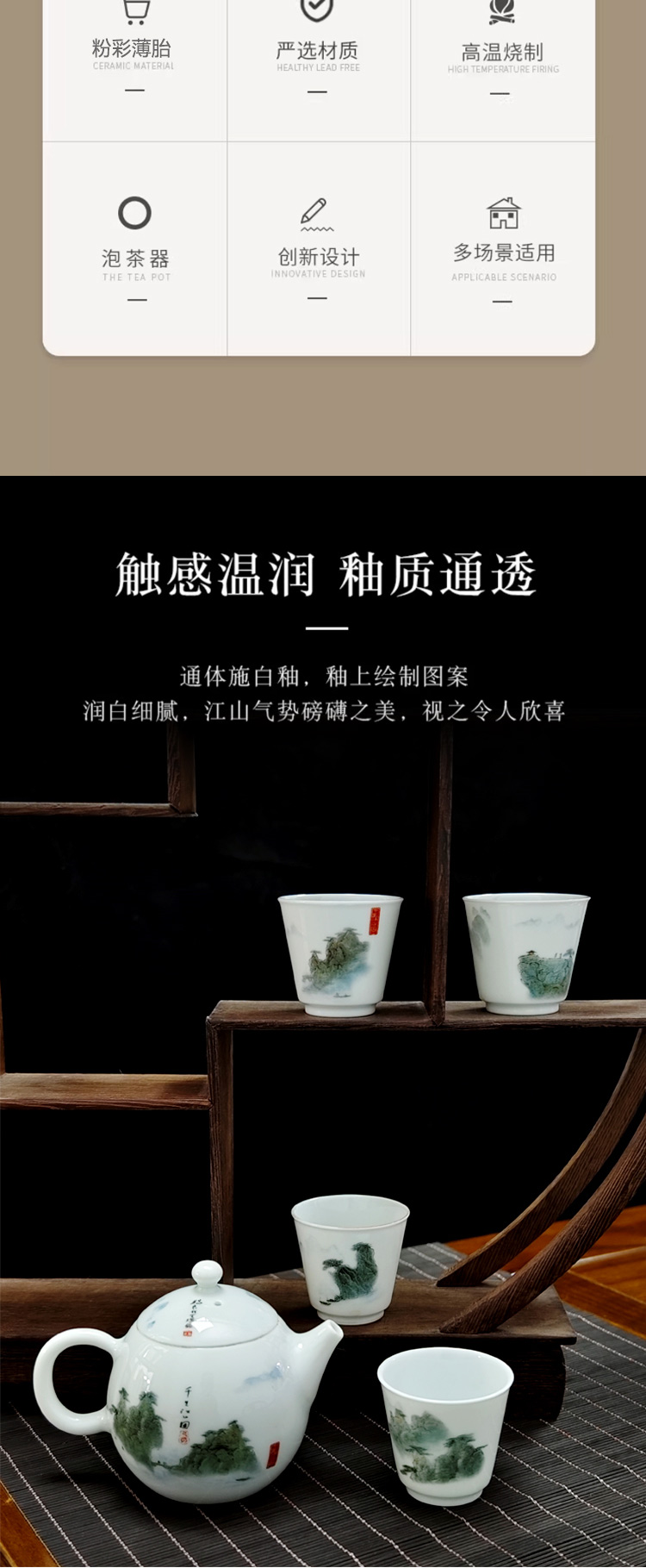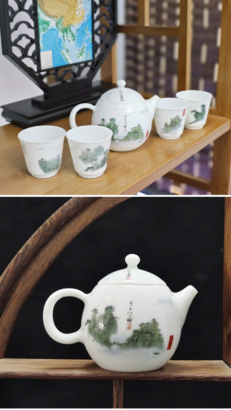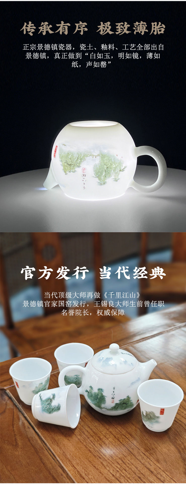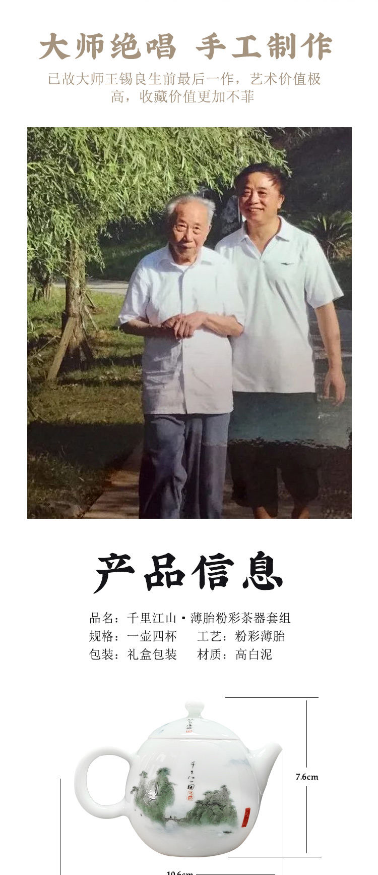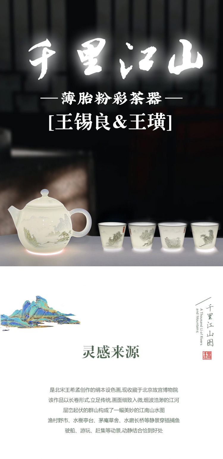 王锡良生前遗作——《千里江山》薄胎粉彩茶器 一壶四杯套组