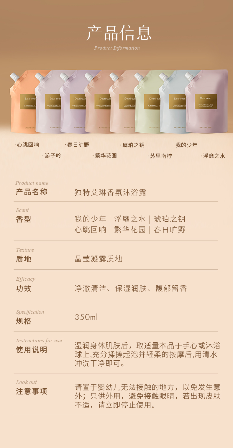 【沐浴露随行套组】独特艾琳香氛沐浴露易清洁不假滑留香全身10ml尝鲜装*5袋