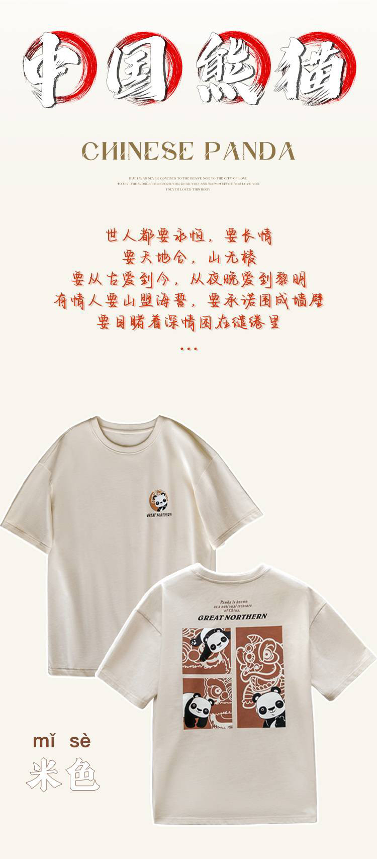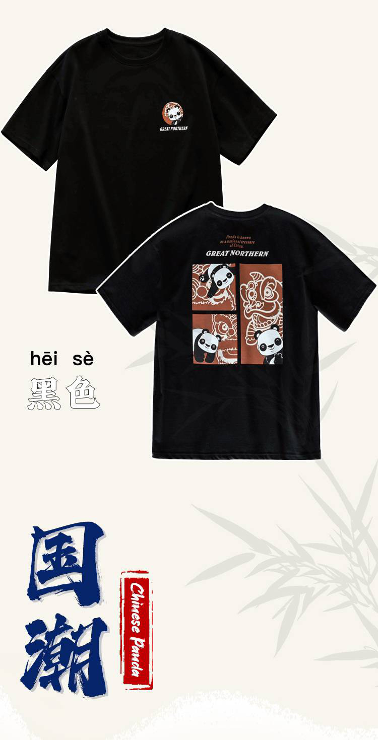 【国际一线代工】国潮新品可爱熊猫纯棉T恤