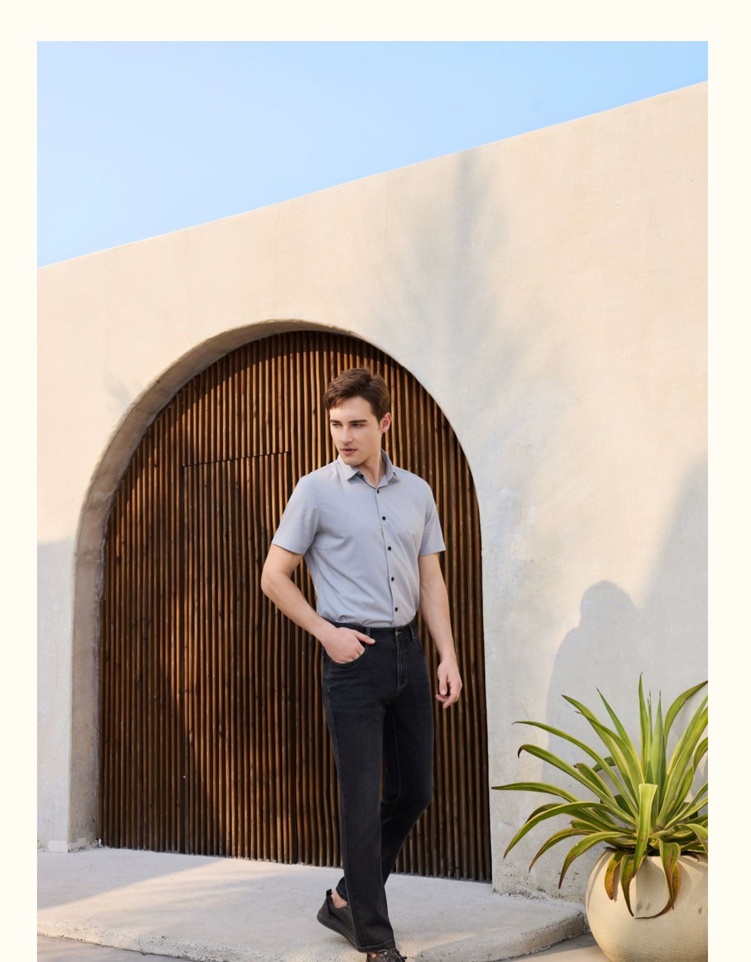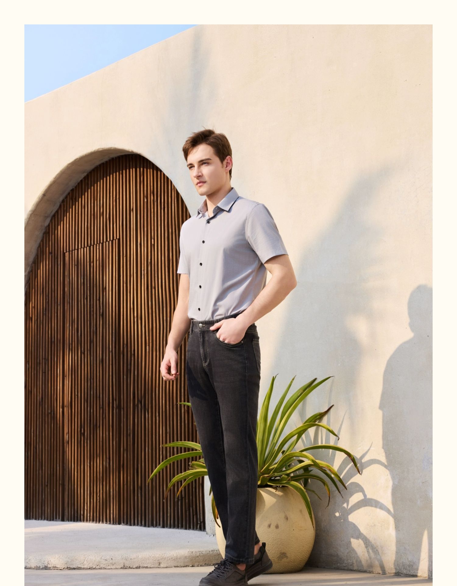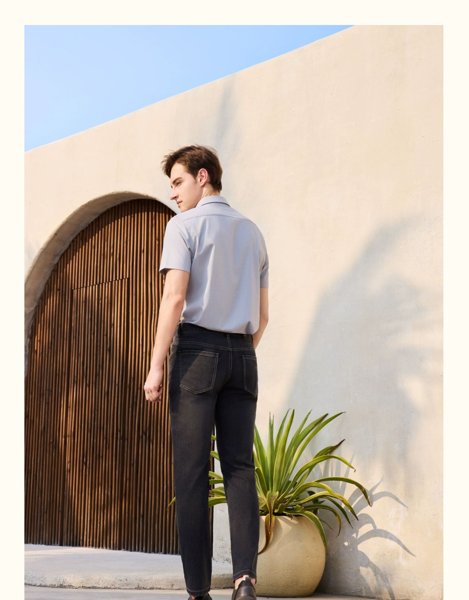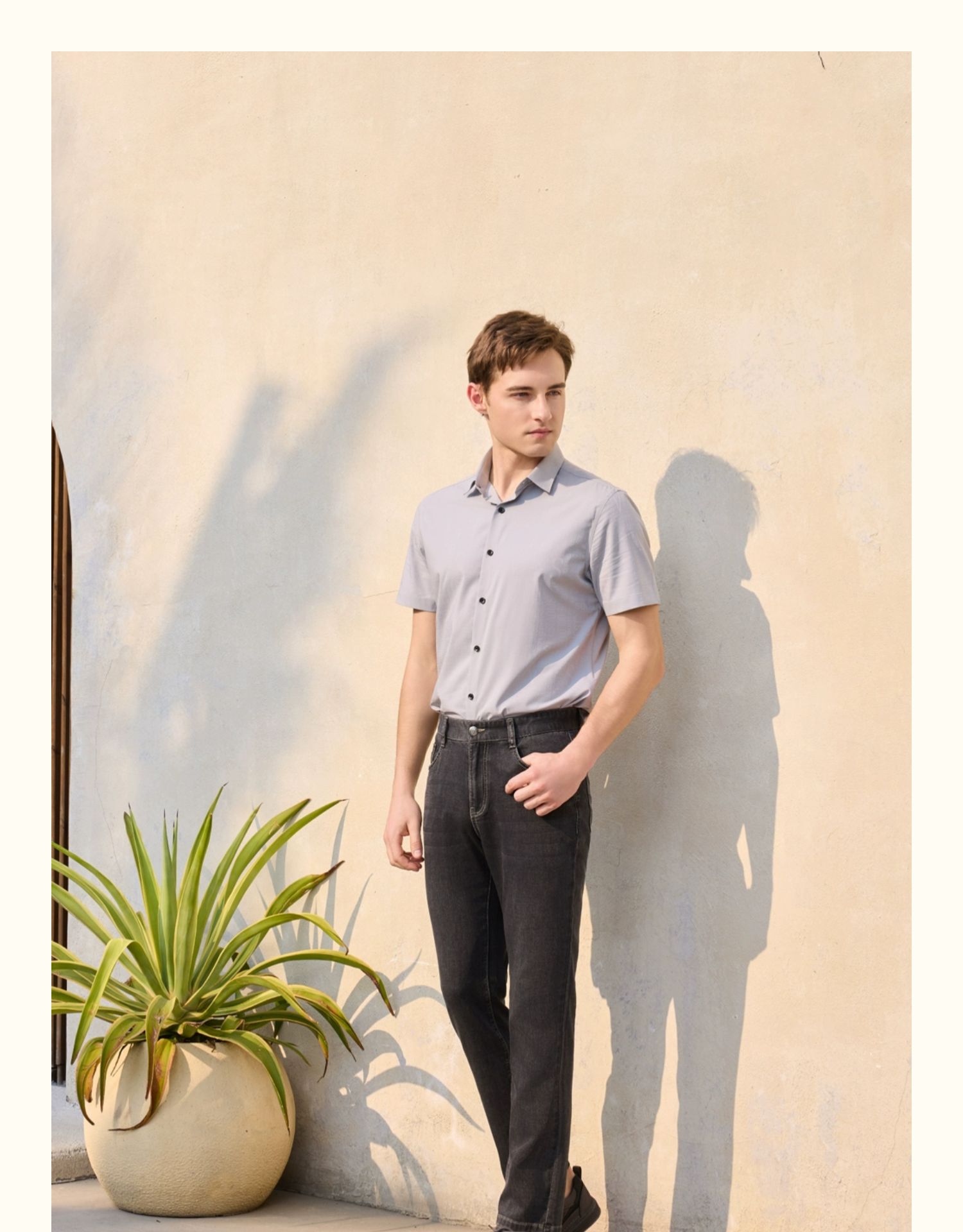 半身缘男装 夏季垂感提花柔软光洁抗皱短袖衬衫252112M01012135