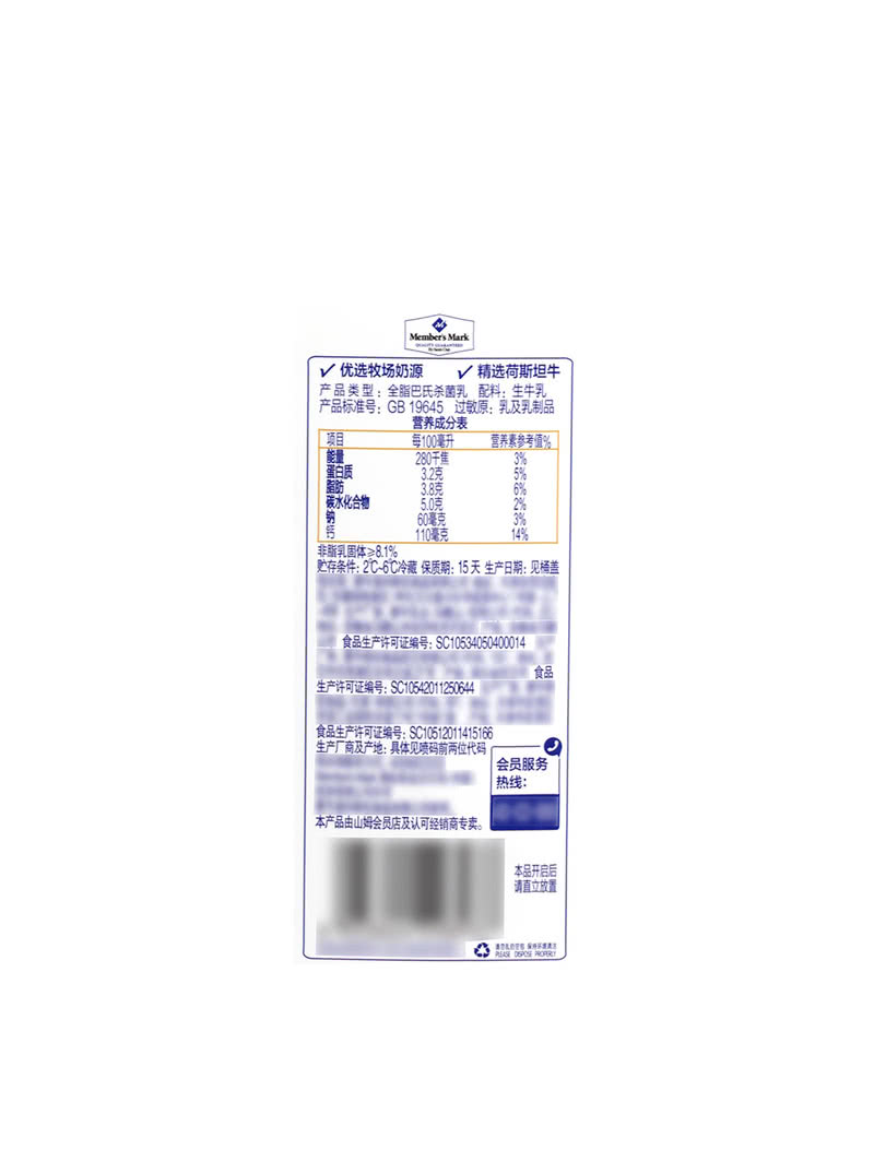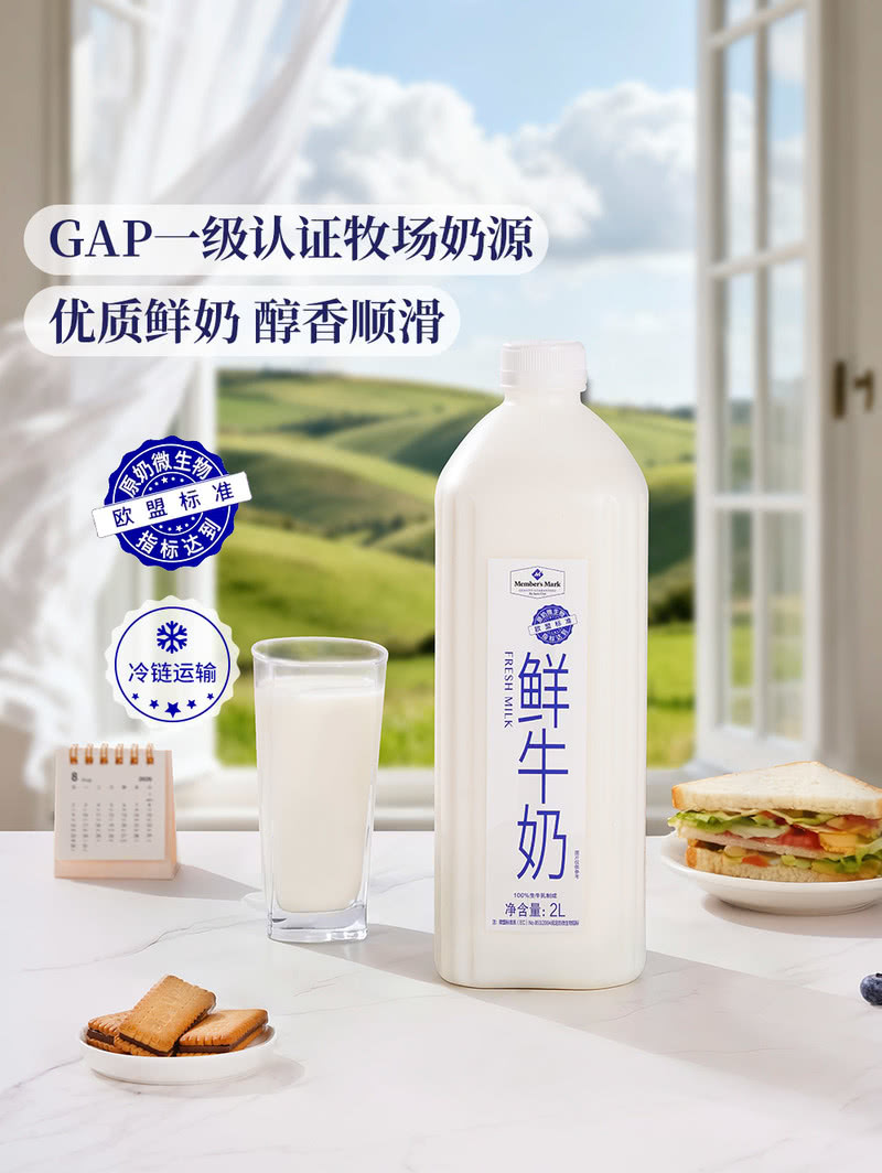 Member's Mark鲜牛奶全脂巴氏杀菌乳2L 山姆会员店商品非商品原因不支持退款