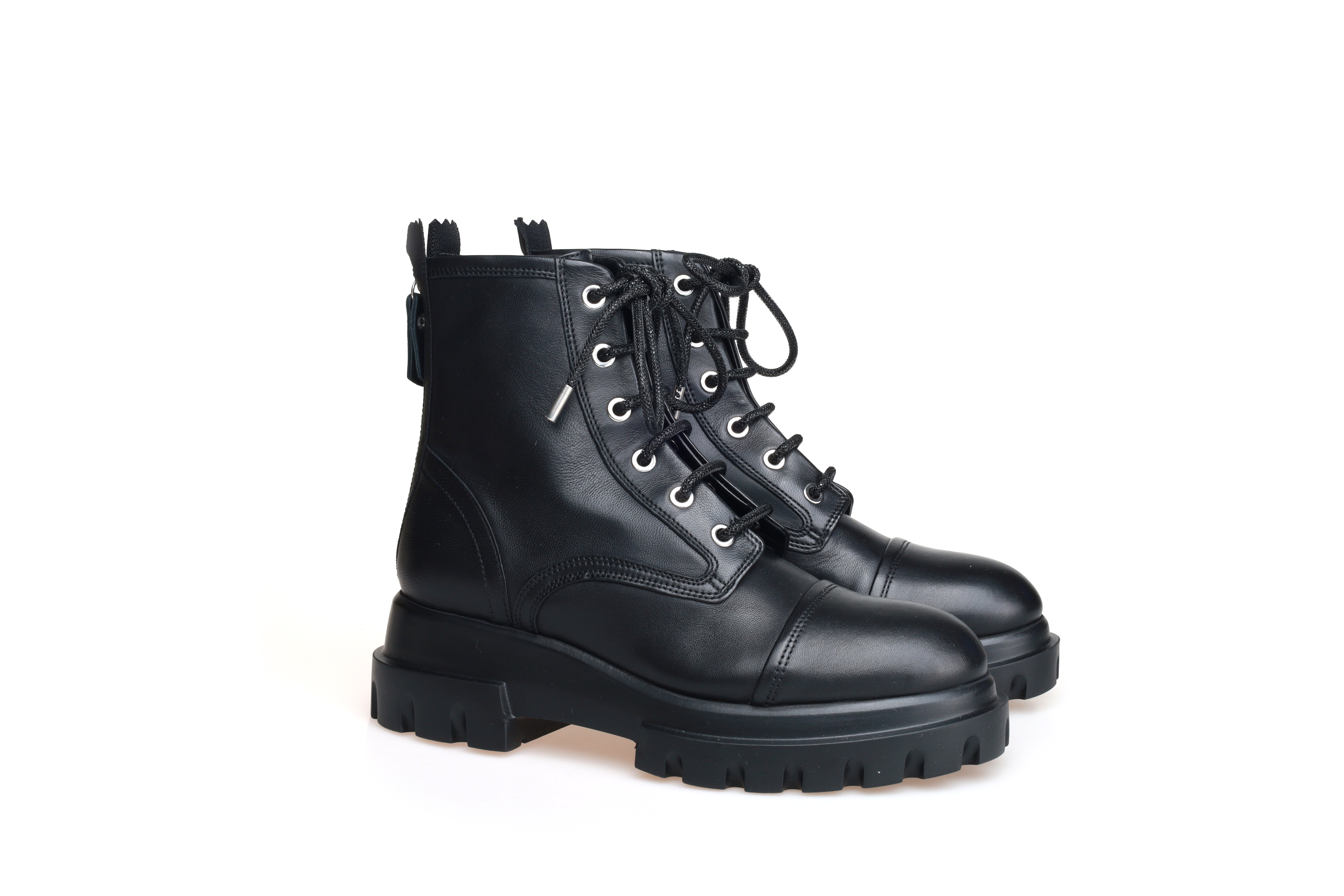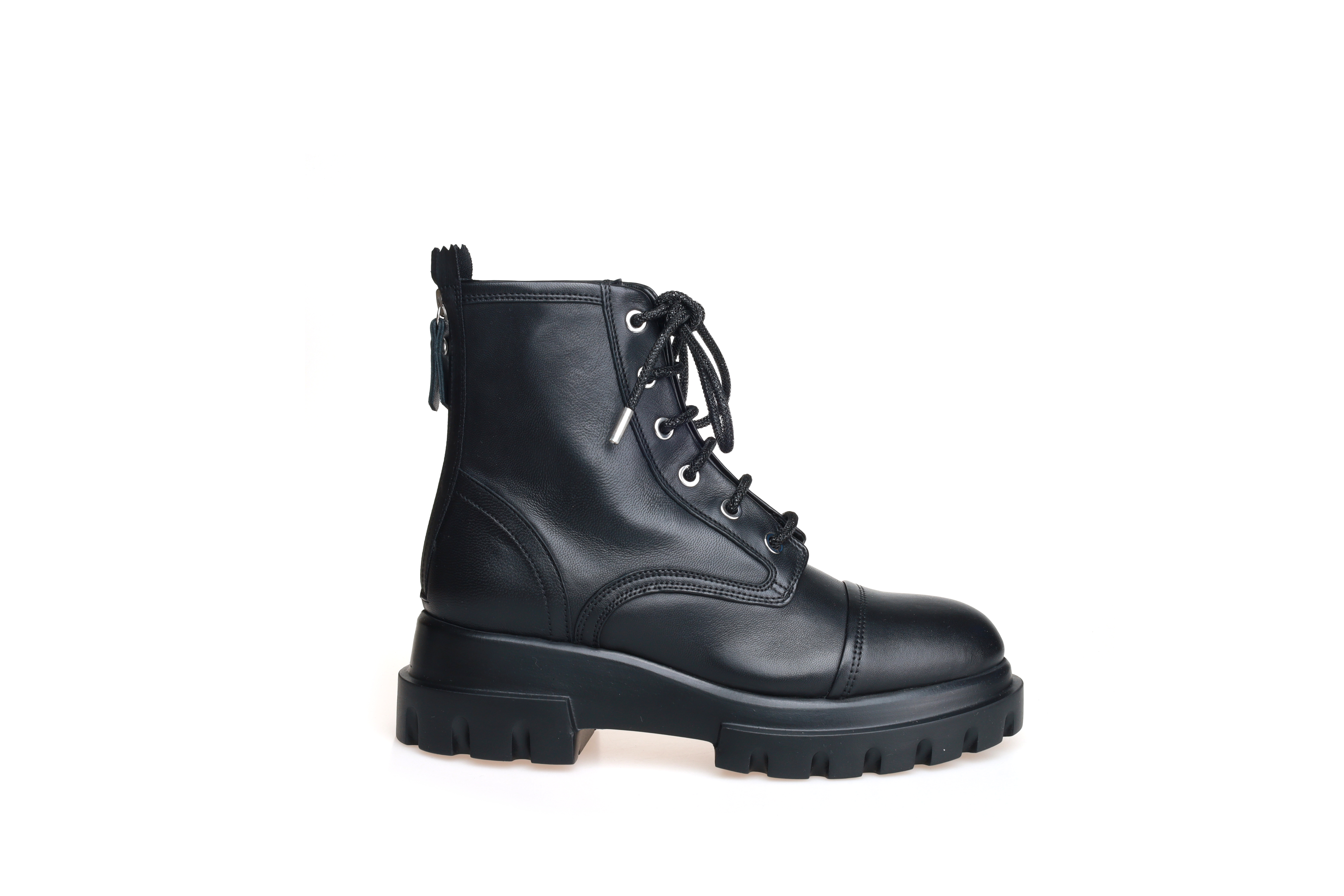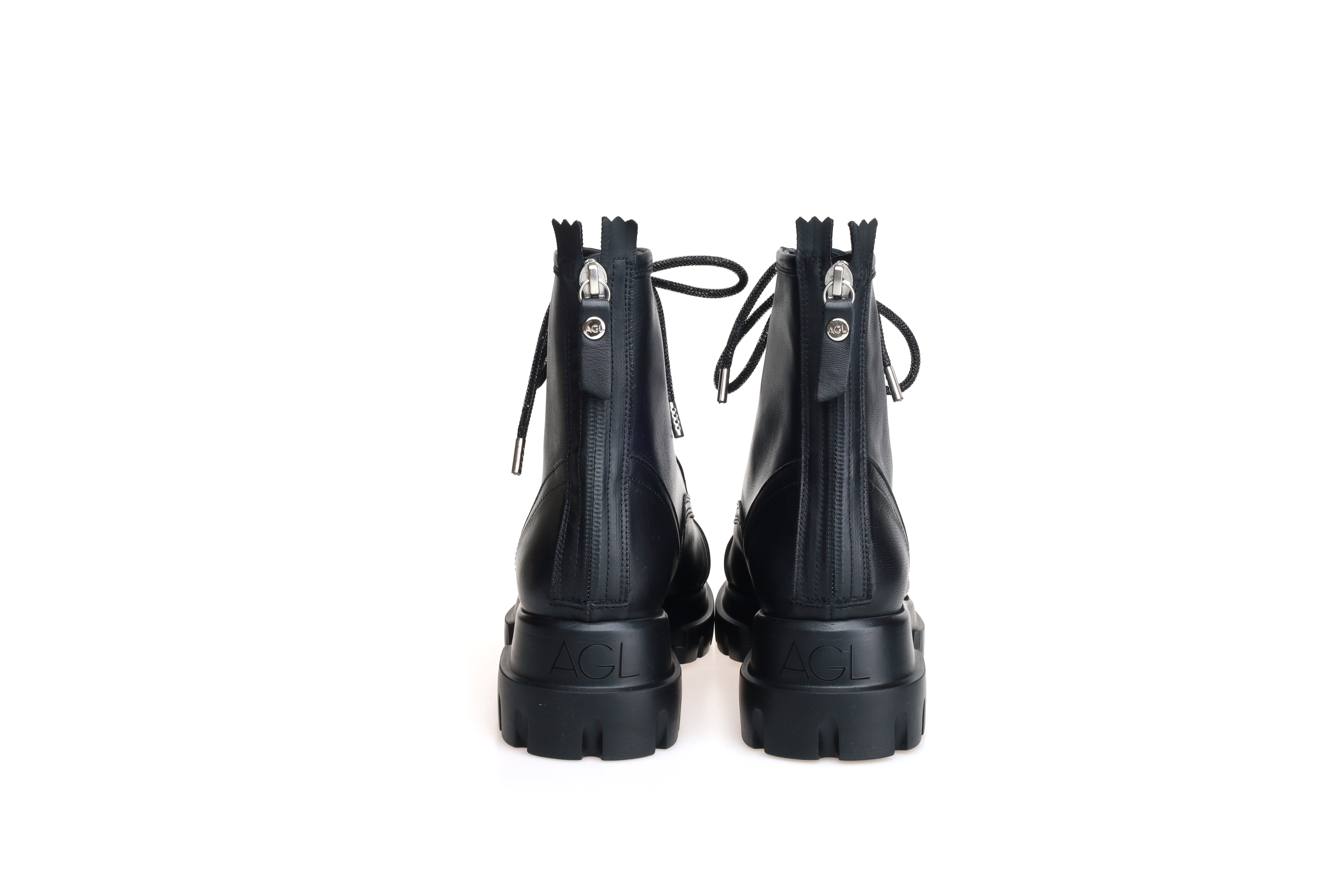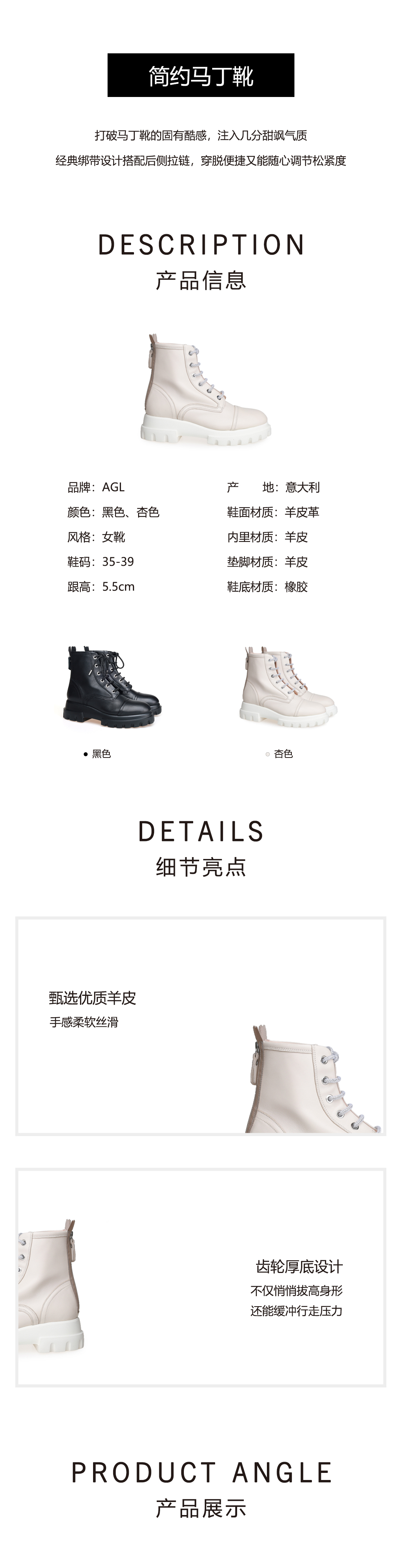 豪麟名鞋AGL女鞋马丁靴羊皮革D756598黑色