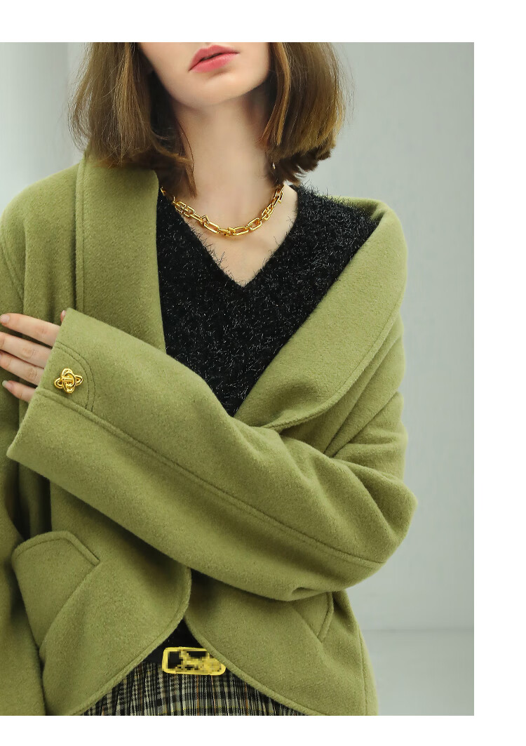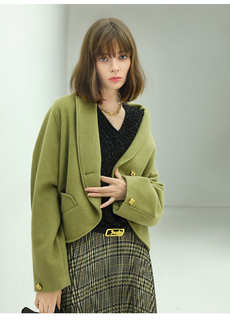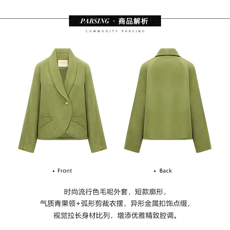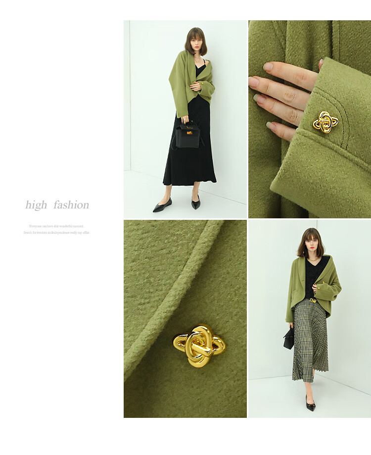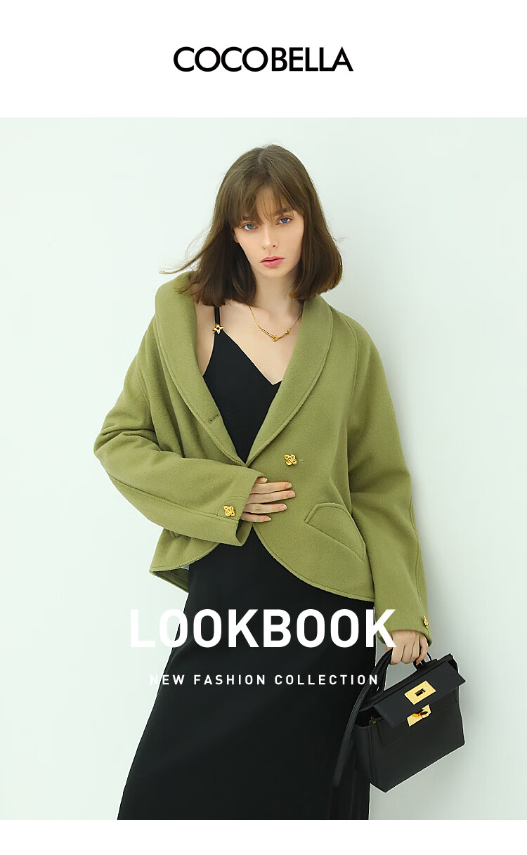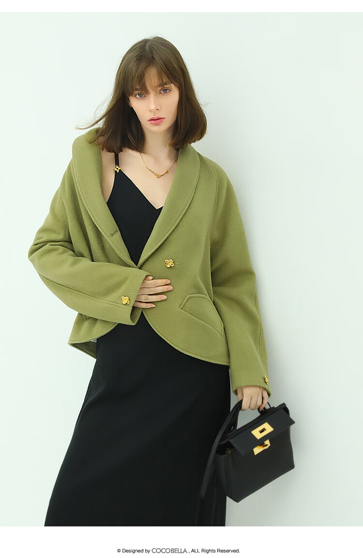 COCOBELLA气质重工金属扣毛呢大衣女气质短款外套WL906