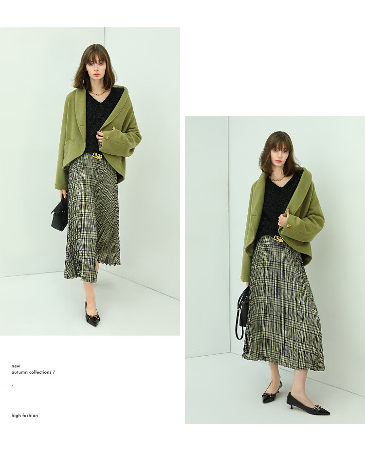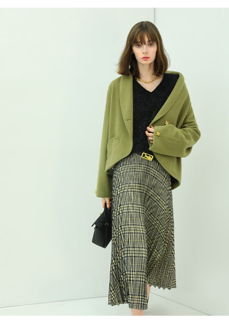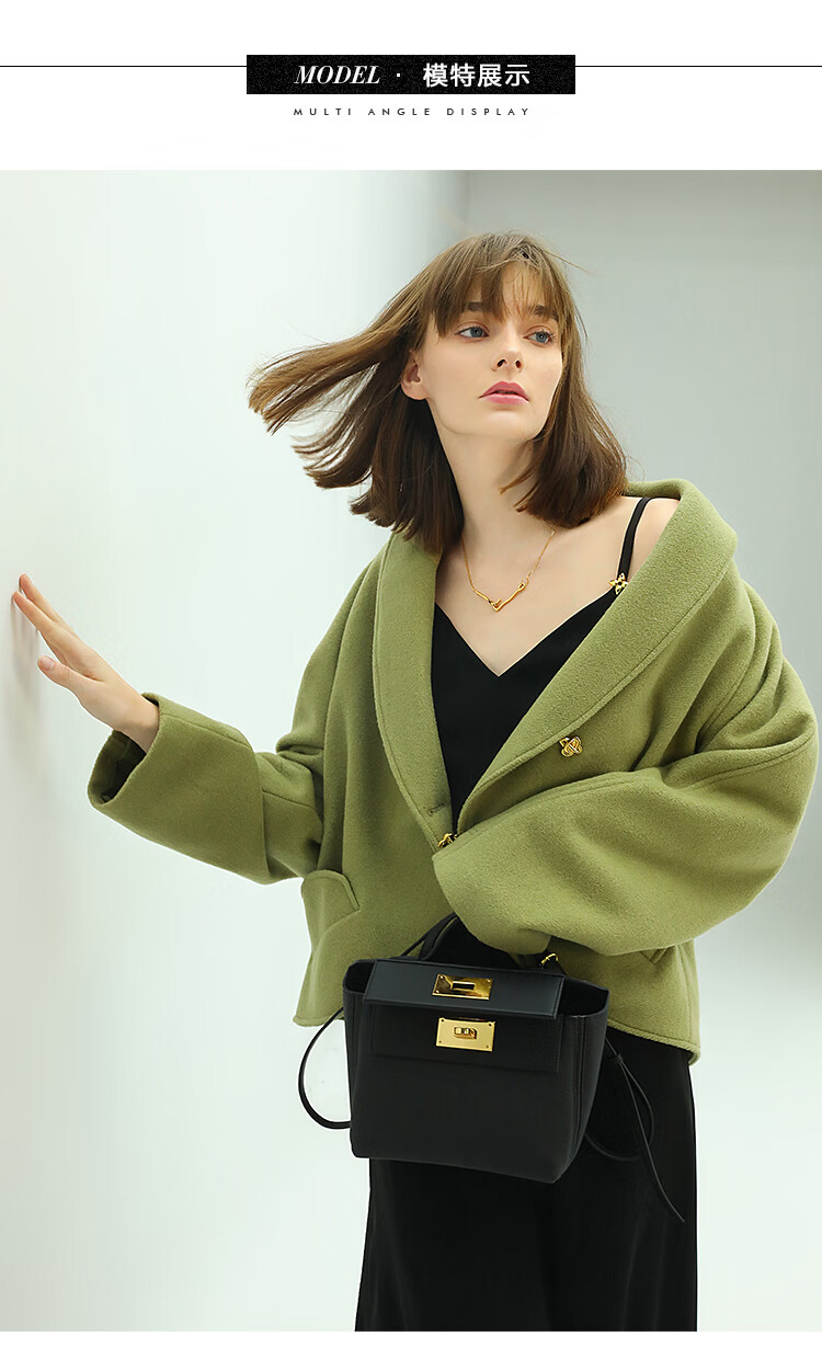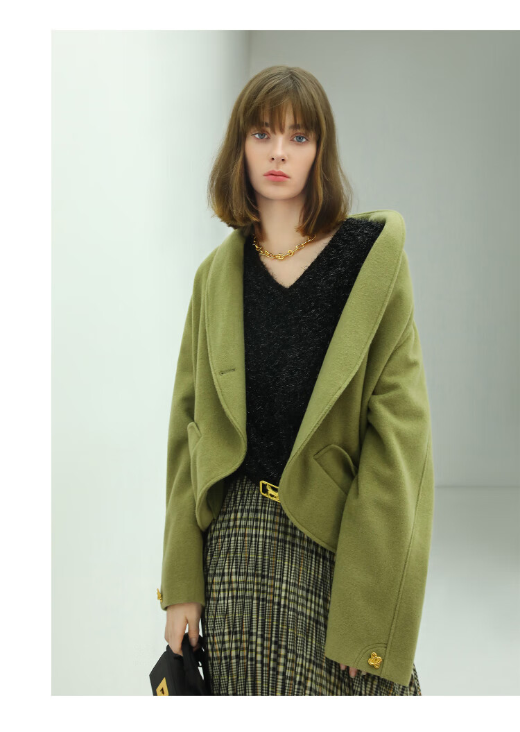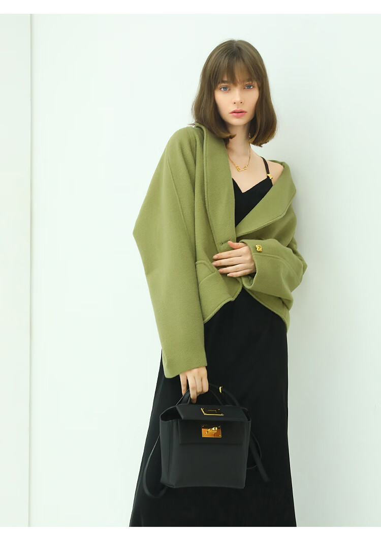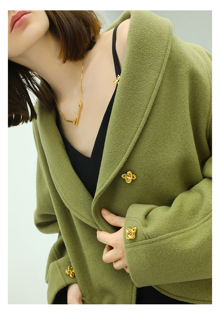 COCOBELLA气质重工金属扣毛呢大衣女气质短款外套WL906