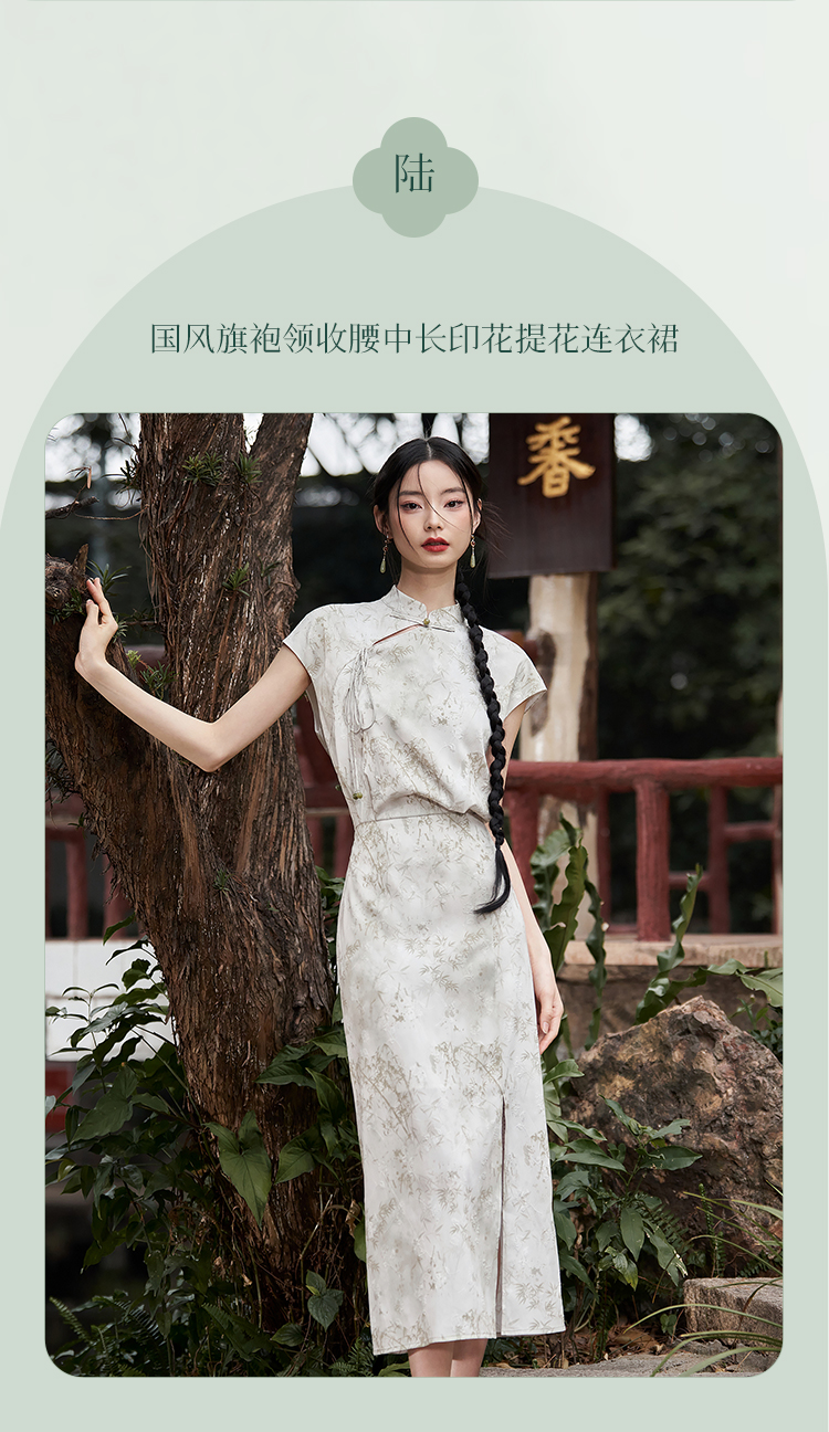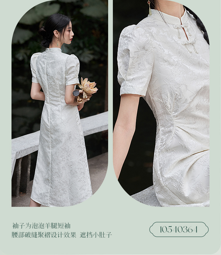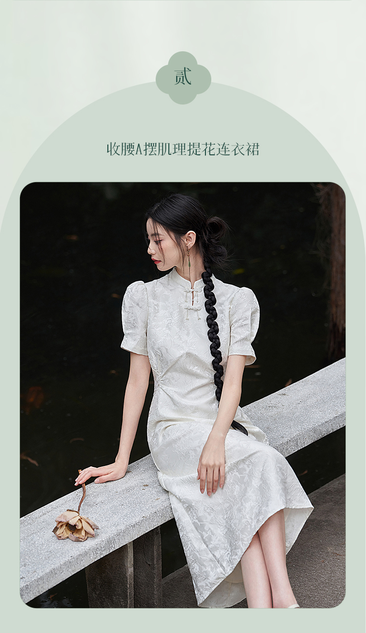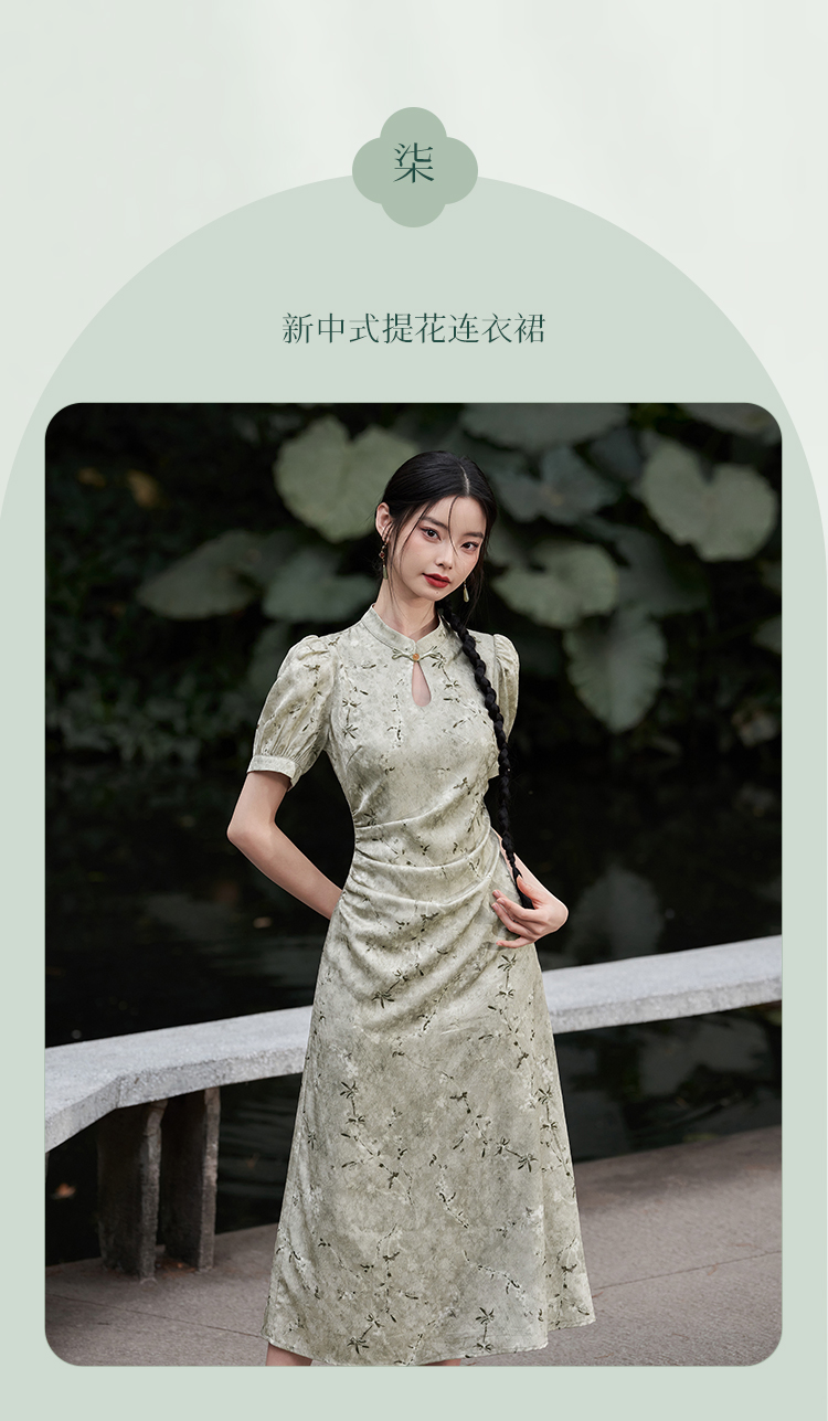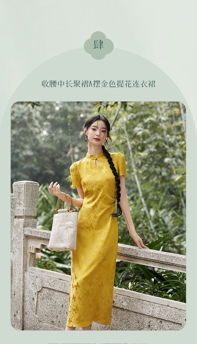 【拼】西遇中式女装中国风连衣裙新款收腰提花泡泡袖改良旗袍10540359/V0050539/D0640372/V0540278