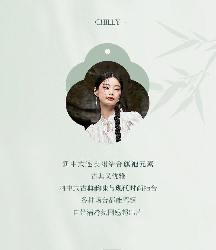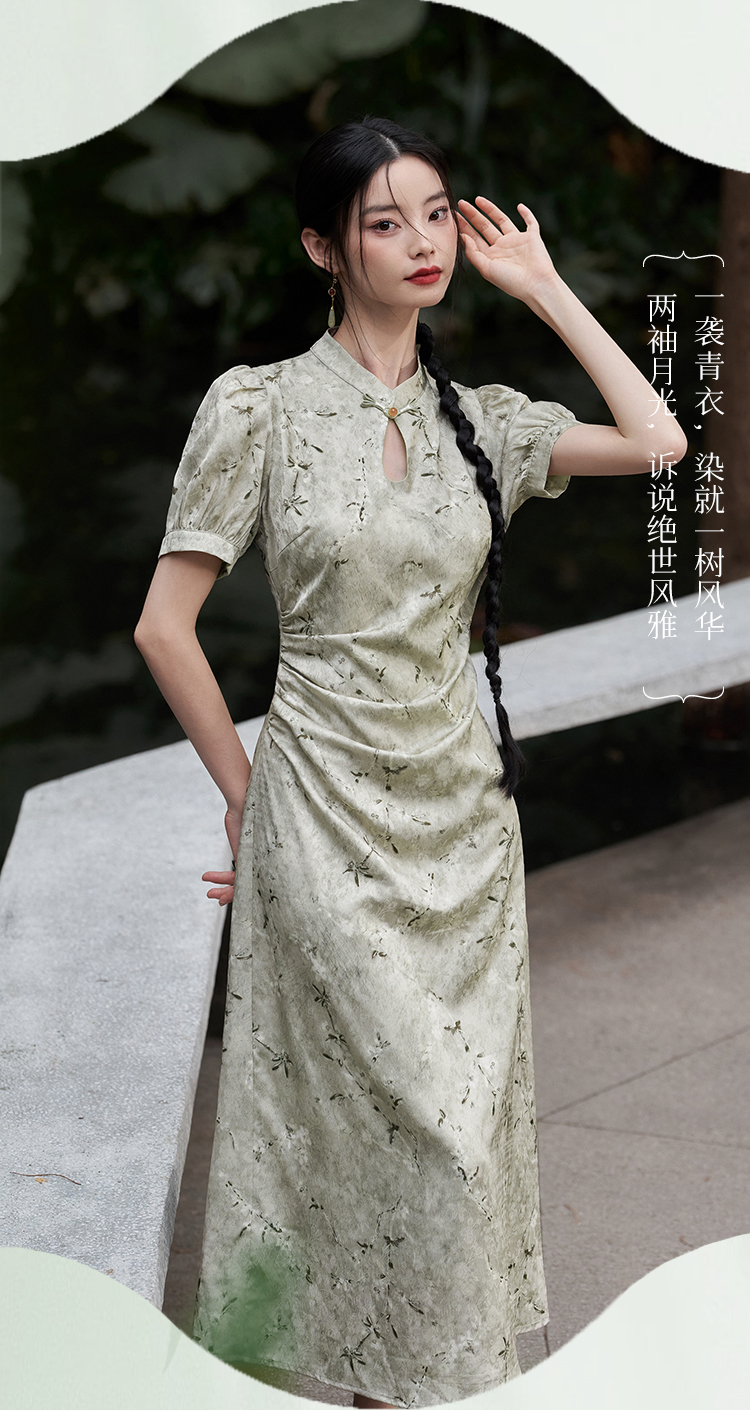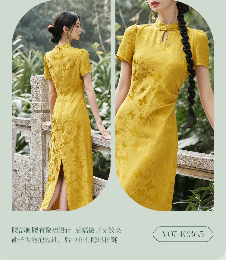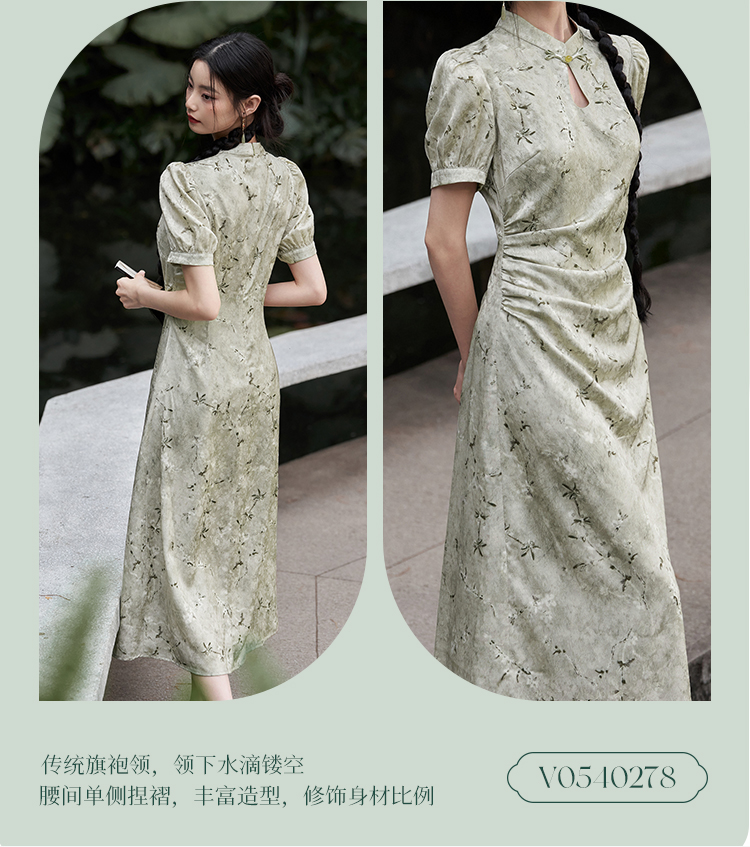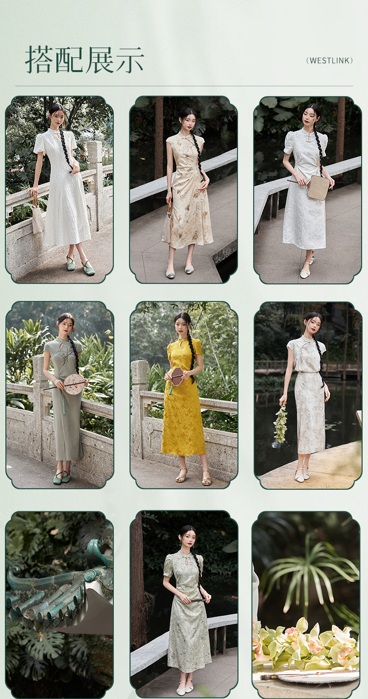 【拼】西遇中式女装中国风连衣裙新款收腰提花泡泡袖改良旗袍10540359/V0050539/D0640372/V0540278