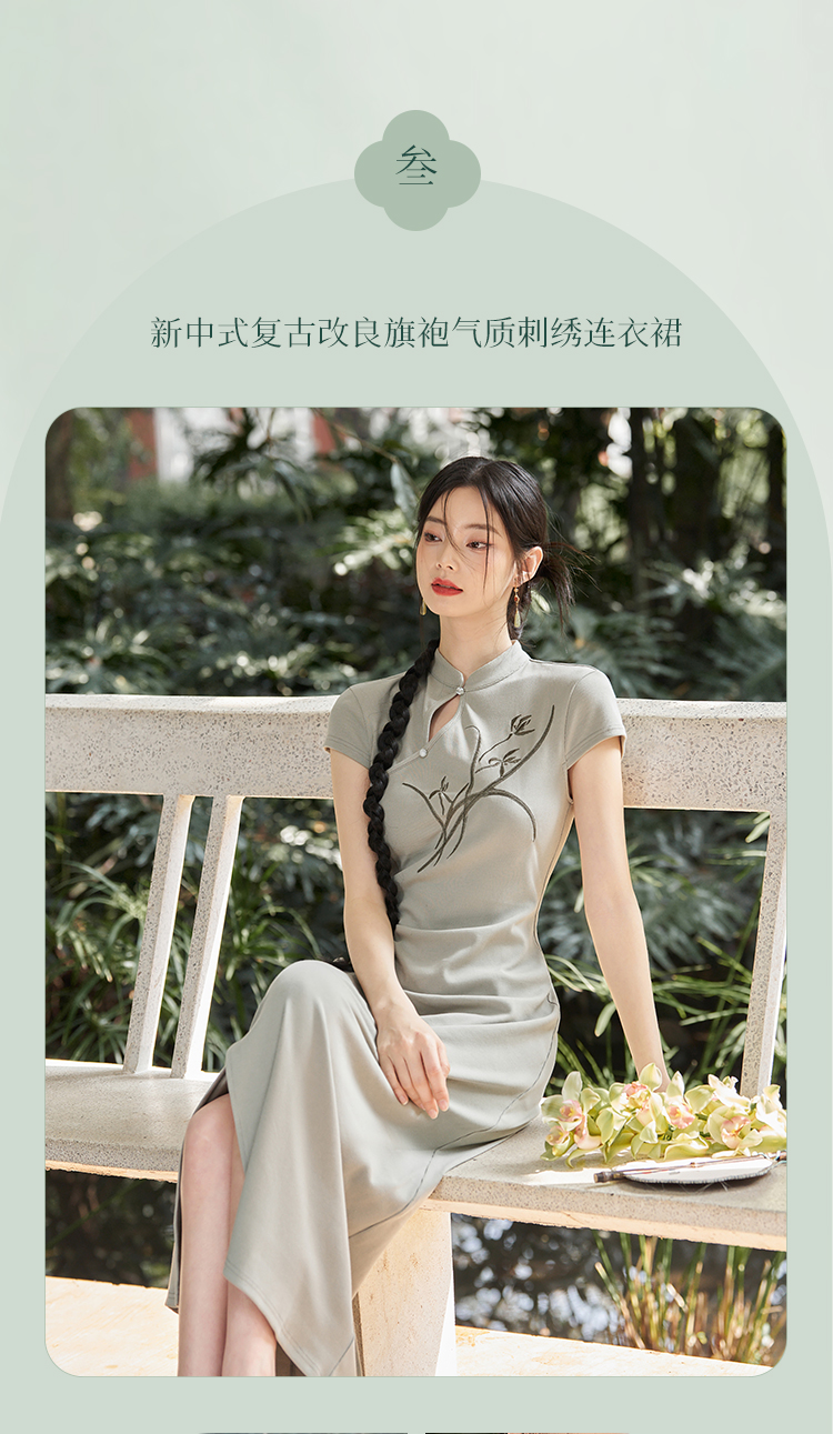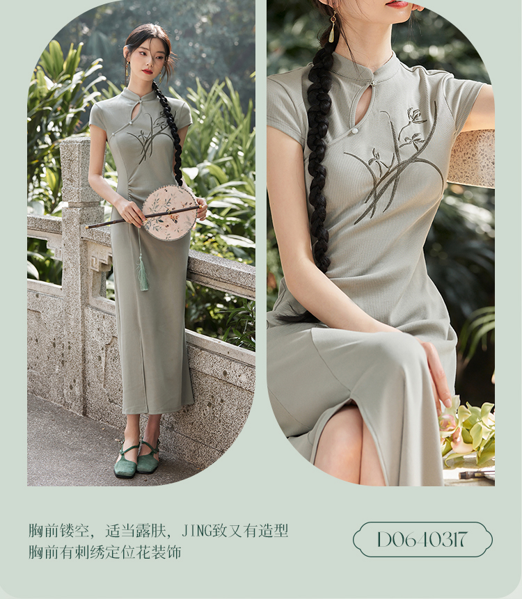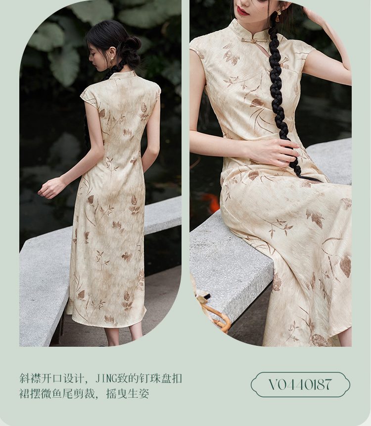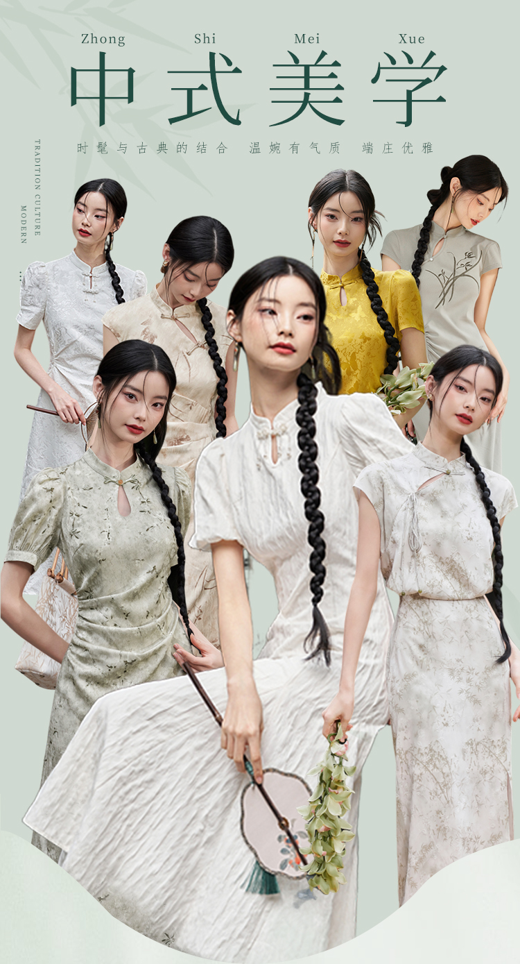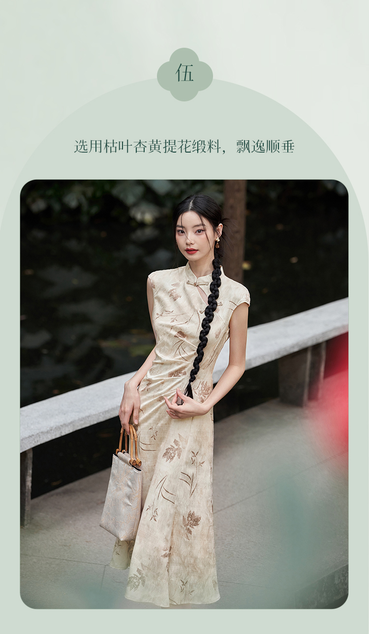 【拼】西遇中式女装中国风连衣裙新款收腰提花泡泡袖改良旗袍10540359/V0050539/D0640372/V0540278