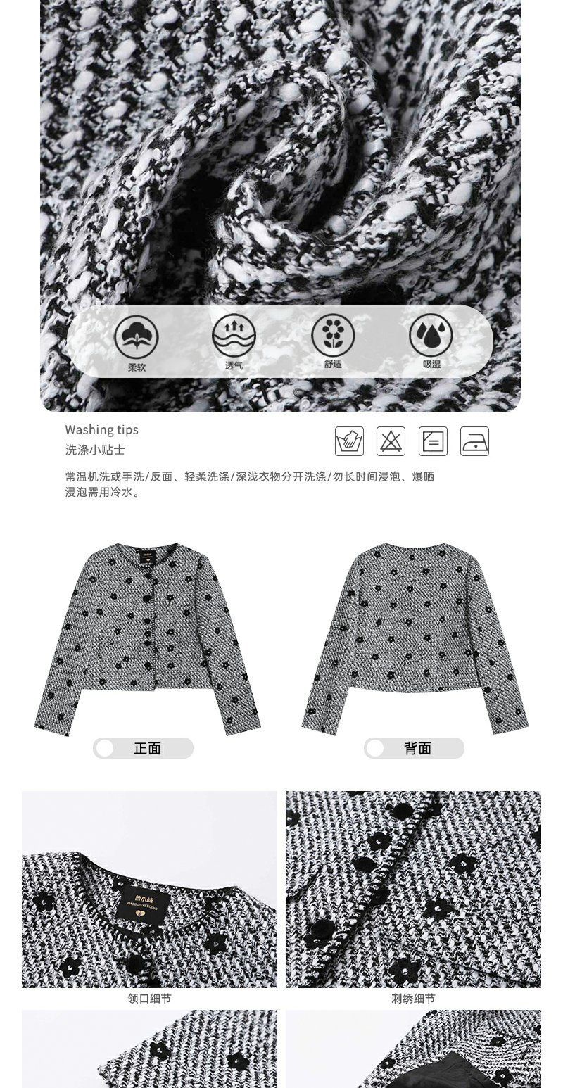 【269元任选2件】现货!成本巨贵,拍下包赚!黑色绣花小香风外套