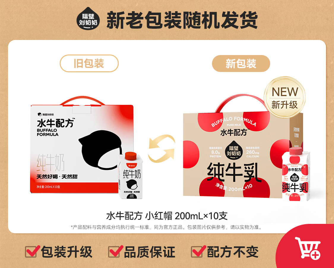 【自营】隔壁刘奶奶水牛配方小红帽200ml*10支