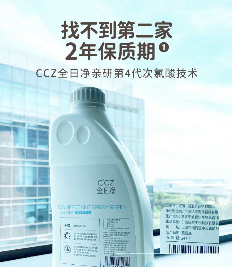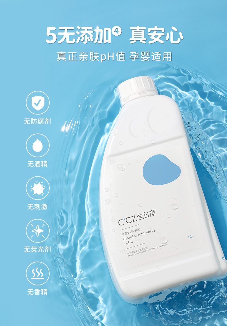 CCZ全日净新生儿婴儿儿童免洗洗手玩具奶瓶入口安全消毒液补充装