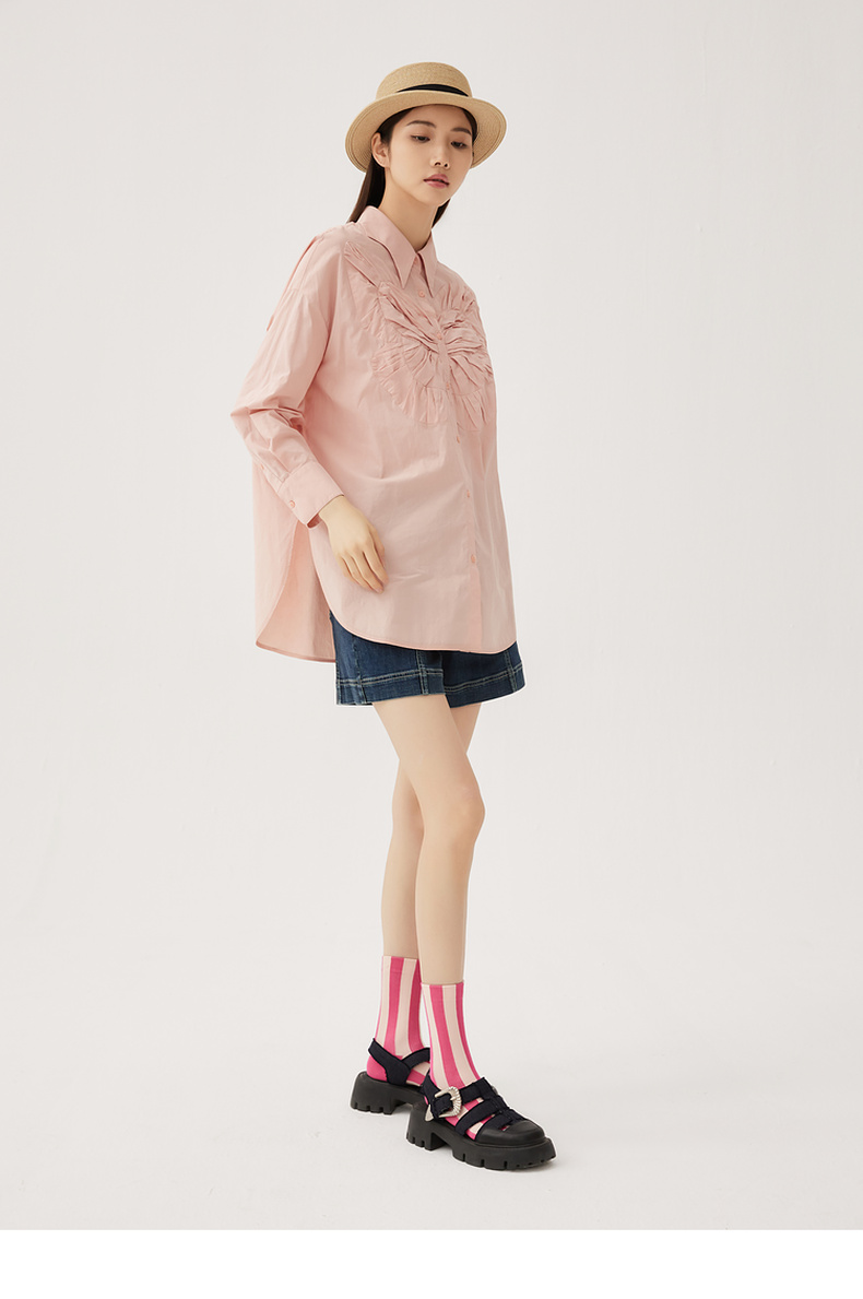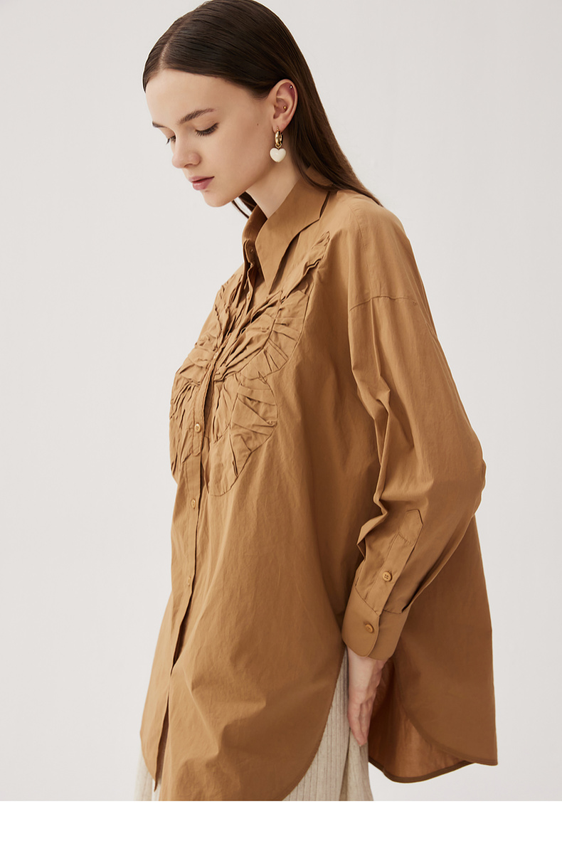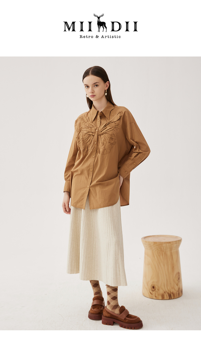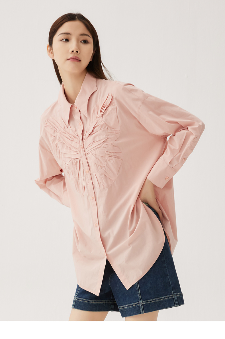 谜底大廓形立体绣花衬衣2024秋季新品慵懒风衬衫女长袖243MC1170