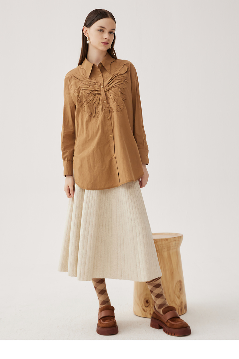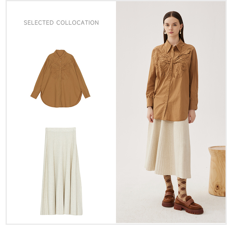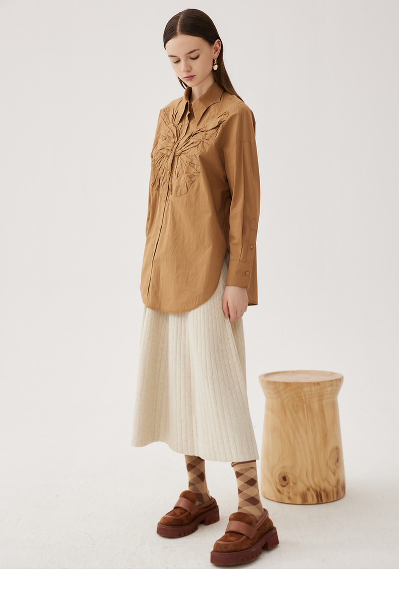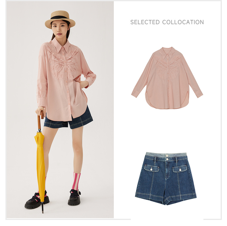 谜底大廓形立体绣花衬衣2024秋季新品慵懒风衬衫女长袖243MC1170