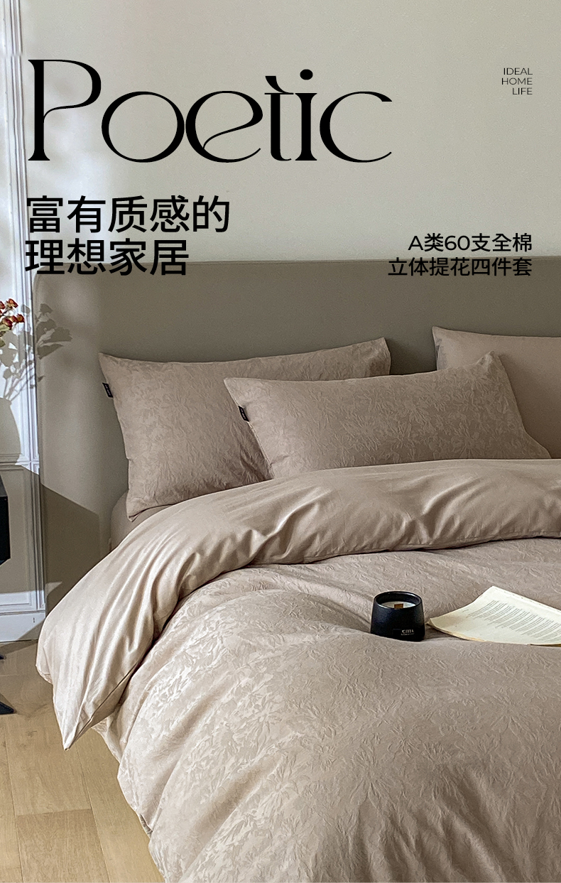 【热卖推荐】自然醒A类60支加厚长绒棉全棉立体提花轻奢四件套HS