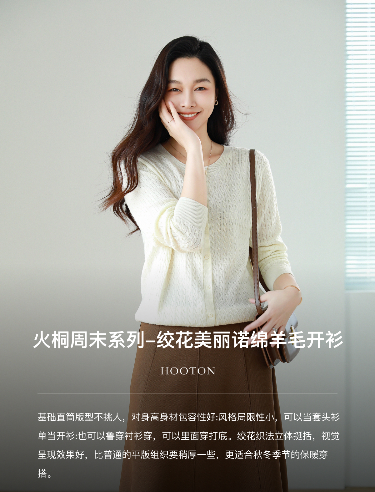 火桐hooton 周末系列 绞花美丽诺绵羊毛开衫YT218