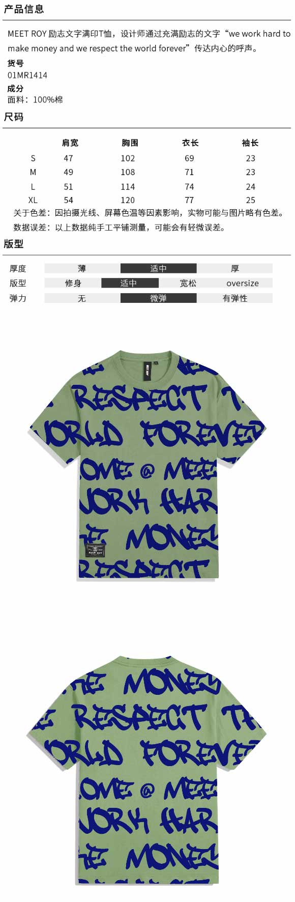 MEET ROY满印励志文字印花T恤01MR1414