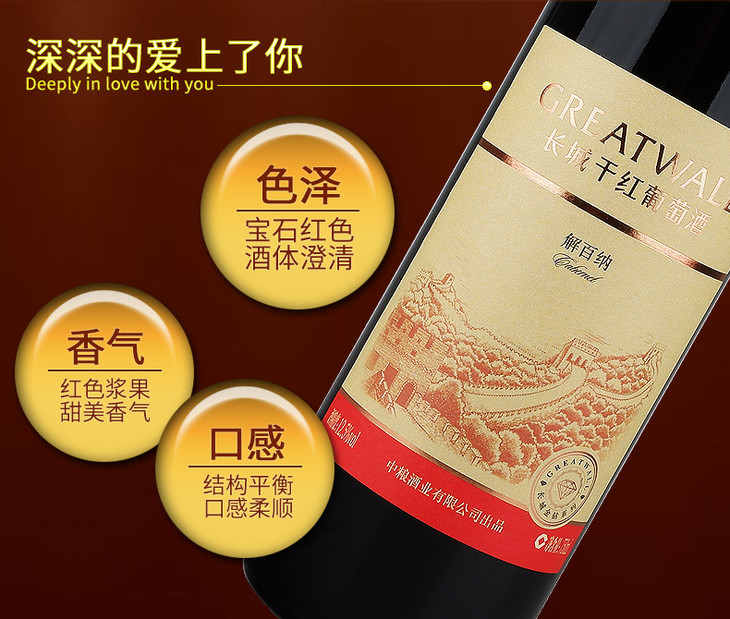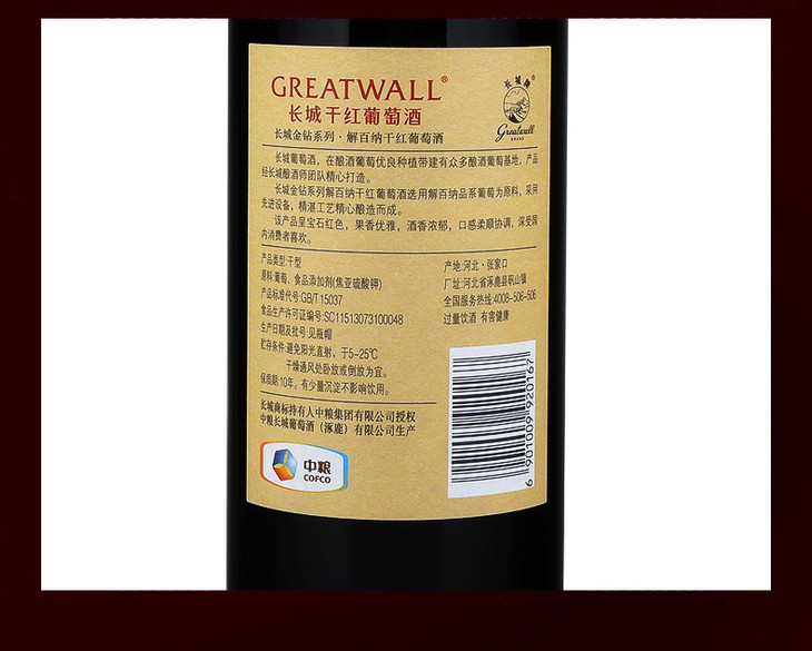 中粮出品长城金钻系列解百纳干红葡萄酒 整箱6瓶*750ml包邮