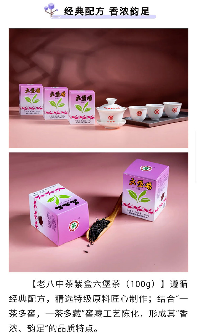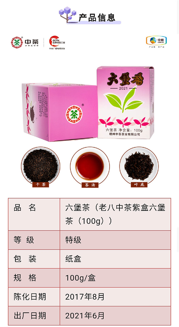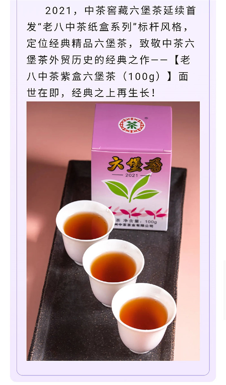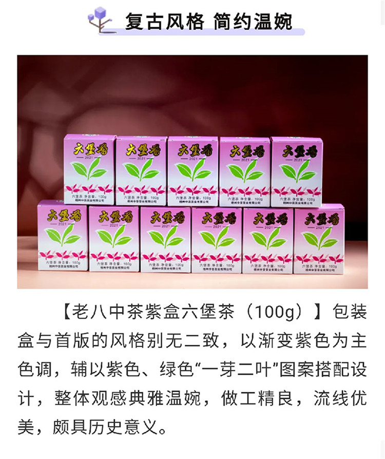 中茶牌茶叶梧州窖藏六堡茶黑茶2021年老八中紫盒四年陈化散茶100g/盒/原产地直发