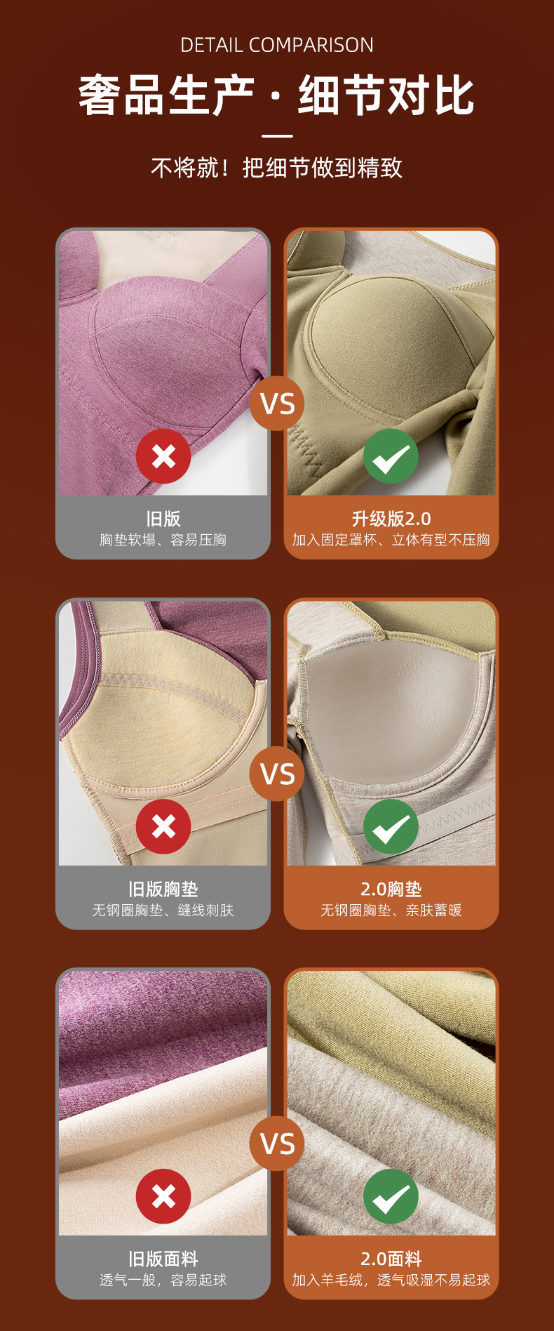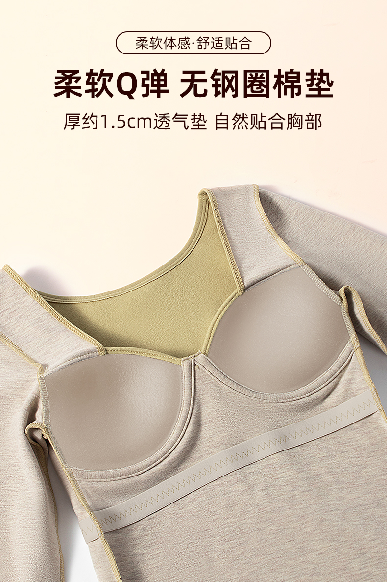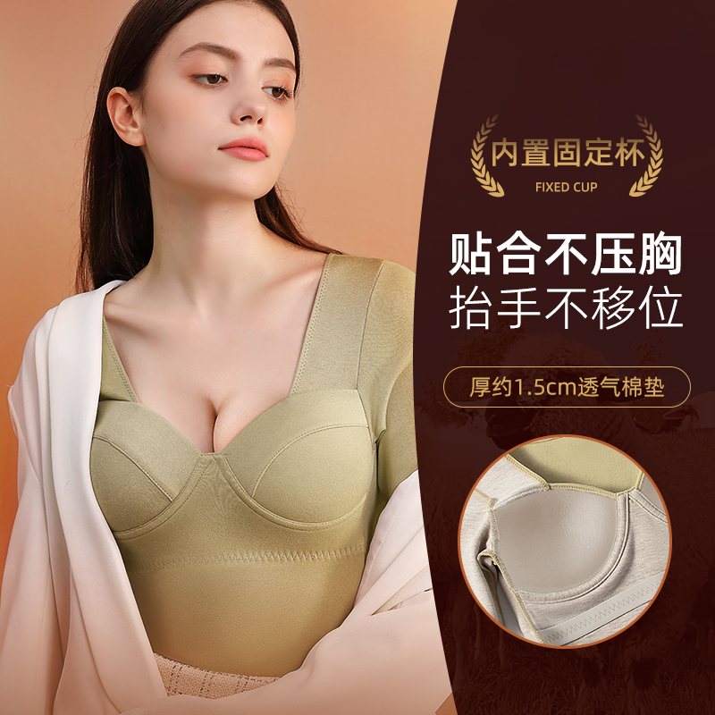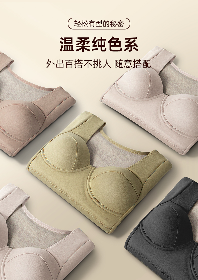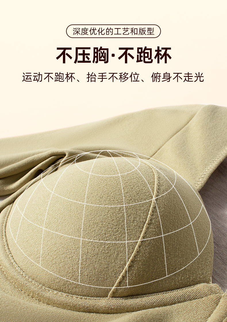 ③羊毛蚕丝绒养护杯垫舒适不压胸,升级版固定罩杯设计,聚拢轻盈托胸不跑杯。