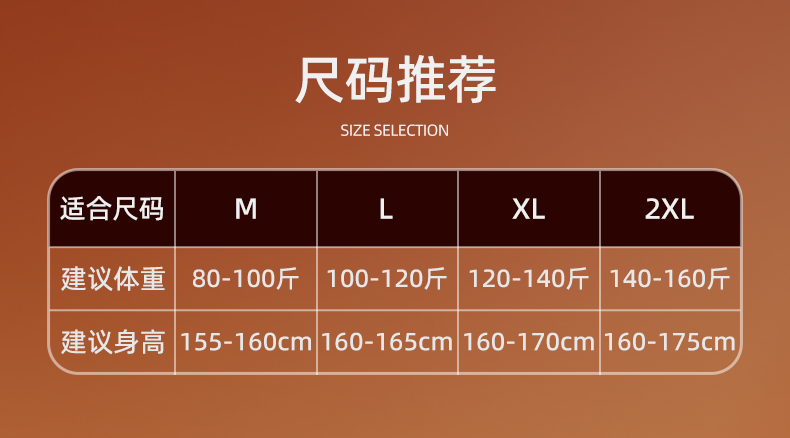 尺码:M(80-100斤)/L(100-120斤)/XL(120-140斤)/XXL(140-160斤)/