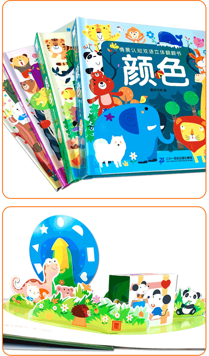 情景认知双语立体翻翻书(共4册)数字/对比/形状/颜色