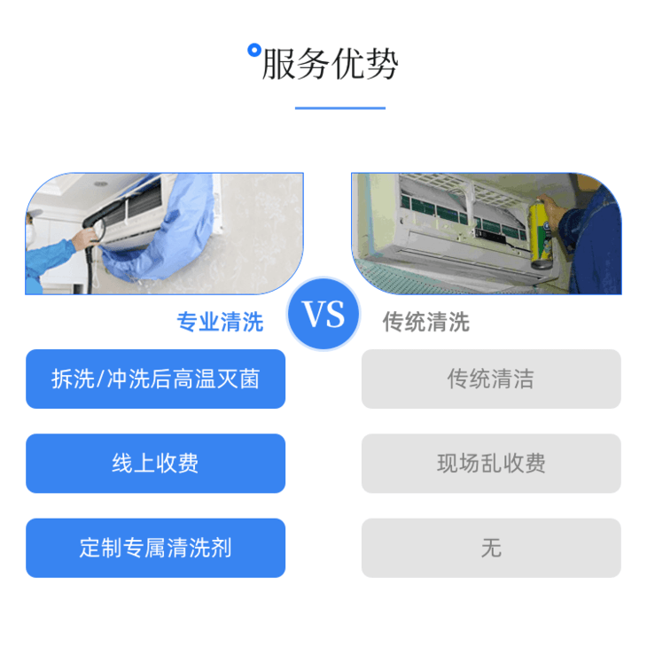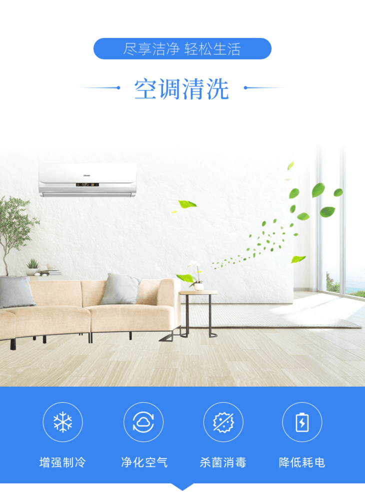 空调外壳,风板,过滤网,风轮,顶部,接水槽,翅片干净,工作区域干净,出风口出风清新无异味。